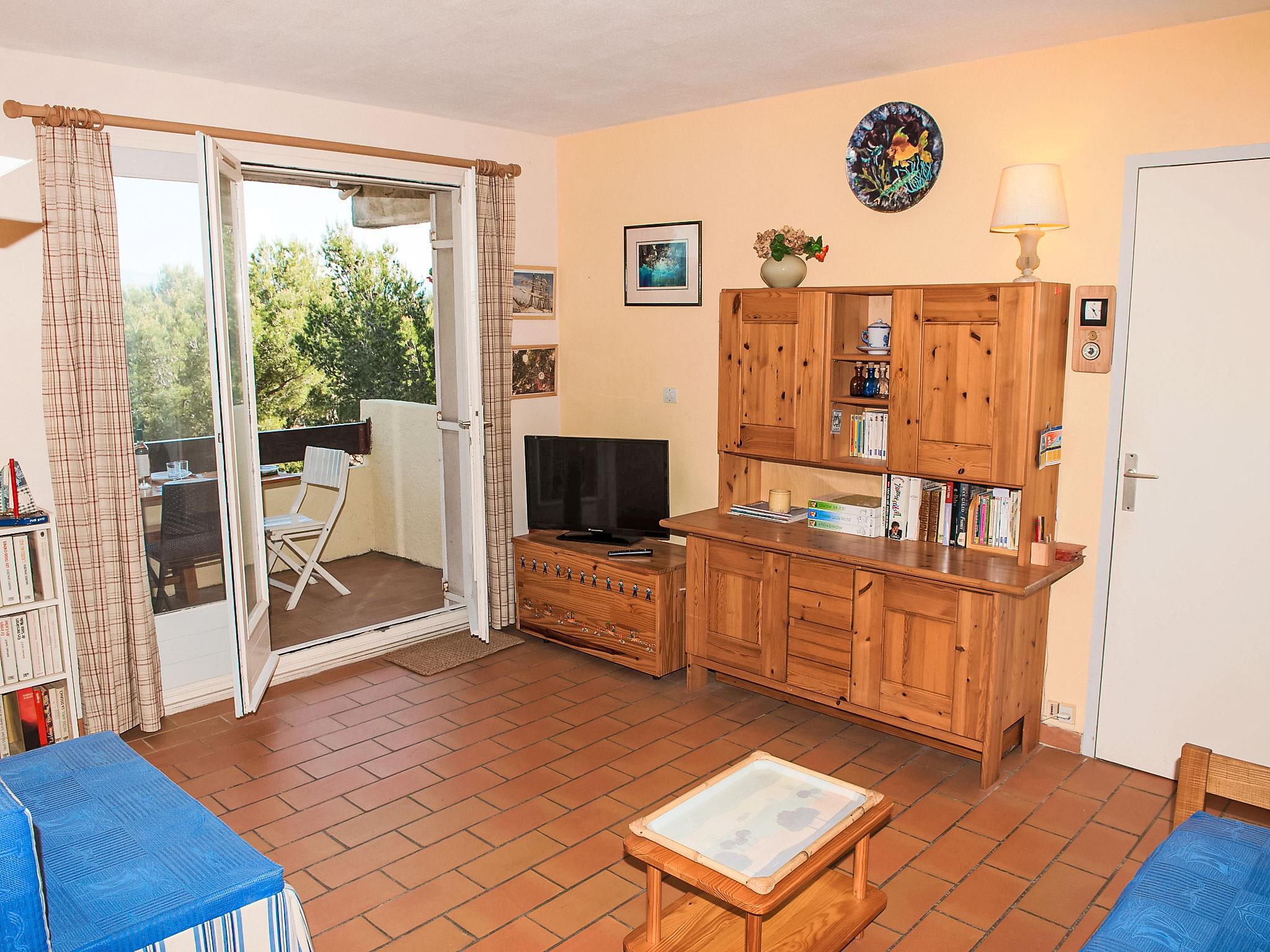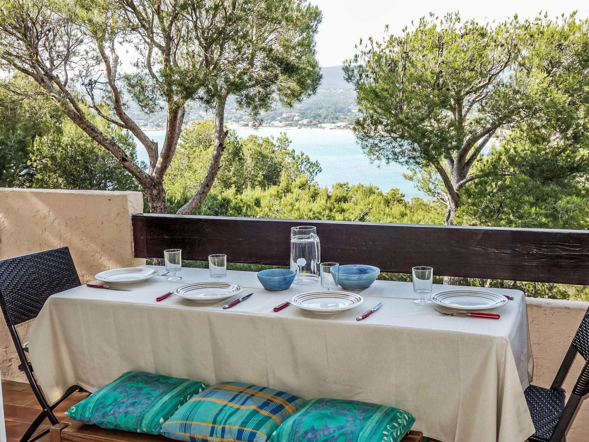 2-room apartment 31 m2 on 1st floor. Bright, comfortable furnishings: living/dining room with 1 pull-out bed (2 pers. 2 x 80 cm, length 190 cm), TV (flat screen). Exit to the terrace. 1 room with 2 beds (80 cm, length 190 cm). Kitchen (mini-oven, 2 ceramic glass hob hotplates, toaster, kettle, microwave, freezer, electric coffee machine). Exit to the terrace. Shower/WC. Electric heating. Terrace 12 m2, roofed, north facing position. Terrace furniture. View of the sea. Facilities: Internet (WiFi, extra). Please note: maximum 1 pet/ dog allowed. TV only FR. Smoke alarm. Residence is located on a hillside. Access to the property is via 43 steps. 83112 000260 0Q