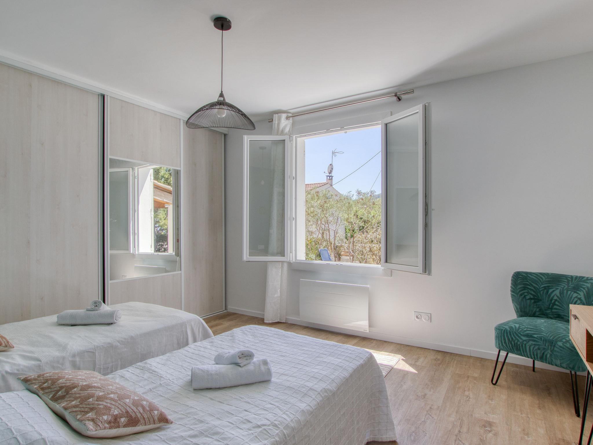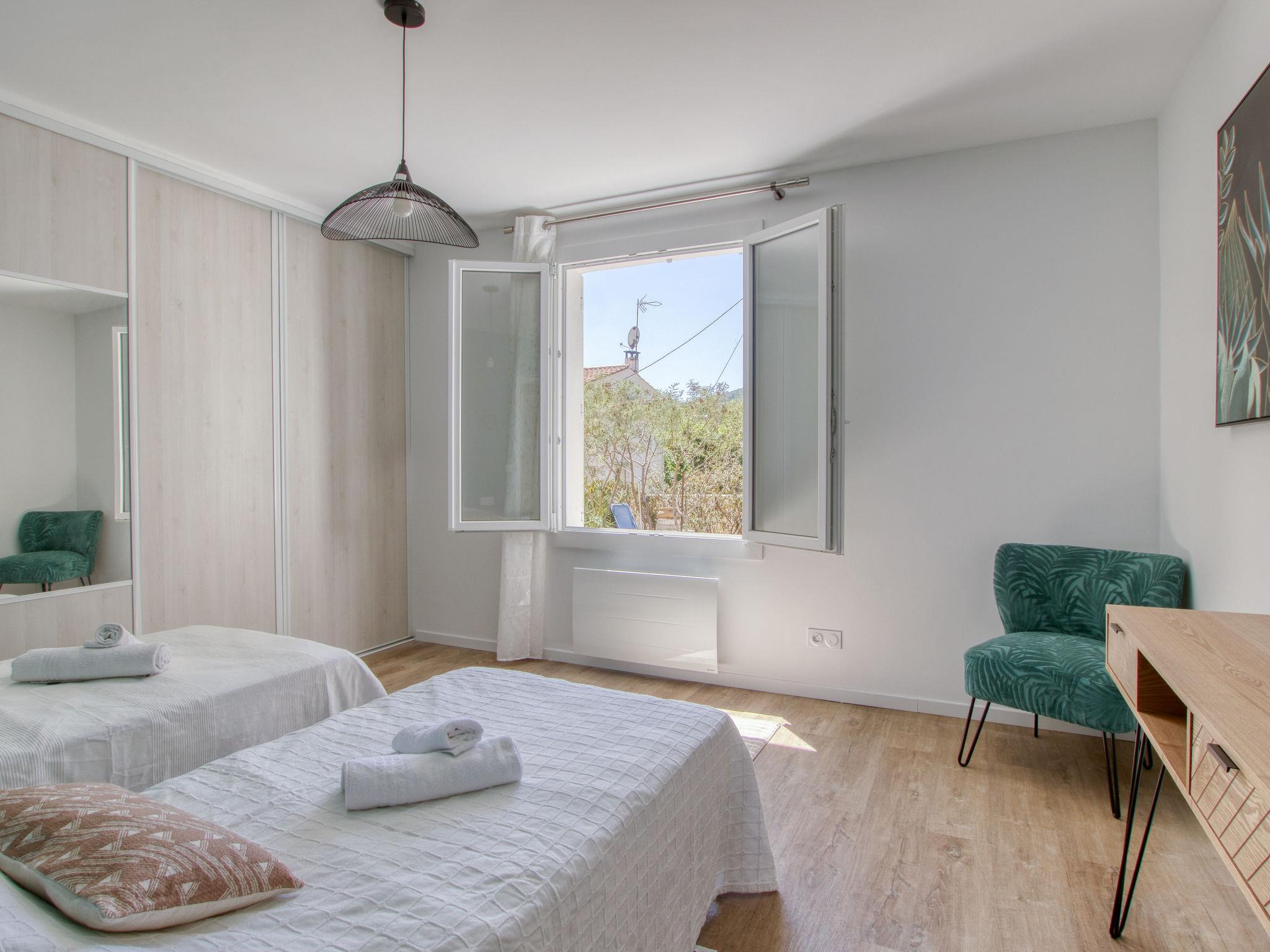 5-room villa 150 m2. Fully renovated in 2023, comfortable and beautiful furnishings: living/dining room with TV (flat screen), air conditioning. Exit to the terrace. 2 rooms, each room with 1 french bed (160 cm, length 200 cm). 2 rooms, each room with 2 beds (90 cm, length 190 cm). Kitchen (oven, dishwasher, 4 induction hot plates, toaster, kettle, microwave, freezer, electric coffee machine, Capsules for coffee machine (Senséo + filtre) extra). Exit to the terrace. Bathroom, shower, 3 sep. WC's. Electric heating, forced-air heating. Terrace 60 m2, south-west facing position, garden 115 m2. Terrace furniture, electric barbecue. Beautiful view of the sea. Facilities: washing machine, dryer. Internet (WiFi, free). Parking (3 cars). Please note: maximum 1 pet/ dog allowed. TV only FR. Smoke alarm. Offer by a private individual according to Art. 155, IV of CGI. 8311200127120