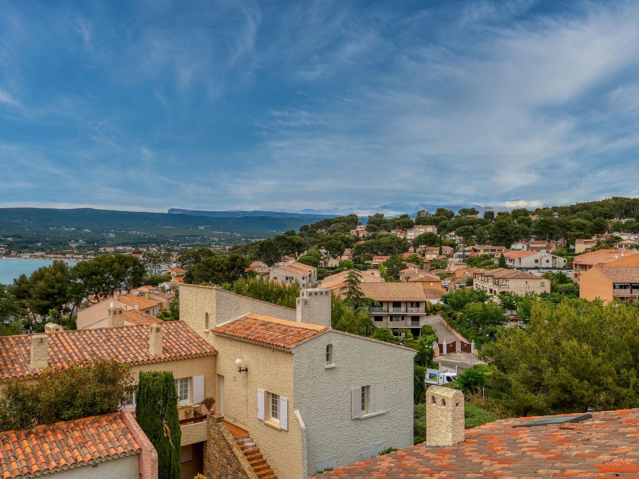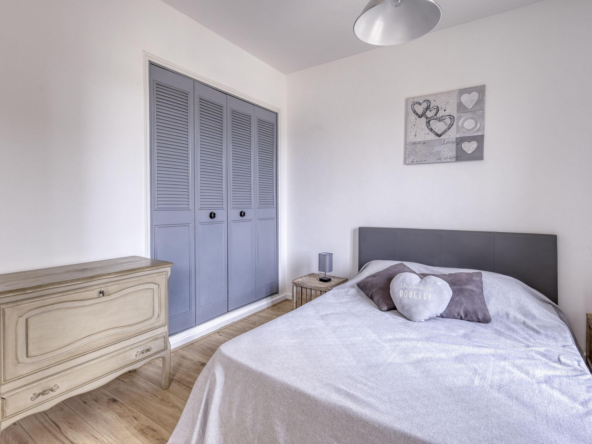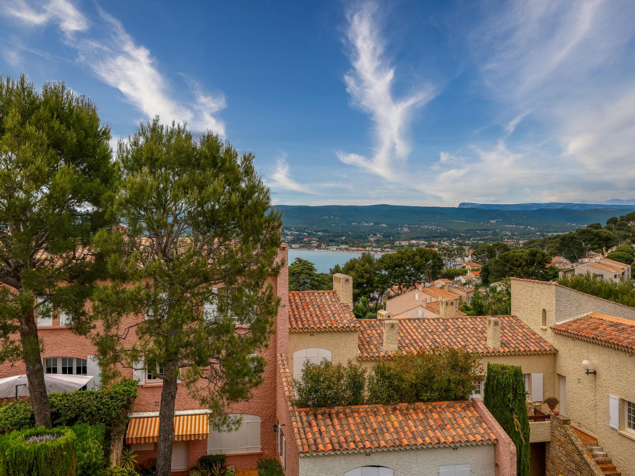 2-room apartment 45 m2 on 1st floor. Bright, fully renovated in 2023, comfortable and beautiful furnishings: living/dining room with 1 sofabed (140 cm, length 190 cm), TV (flat screen). Exit to the terrace. 1 room with 1 french bed (140 cm, length 190 cm), air conditioning. Exit to the terrace. Open kitchen (oven, dishwasher, 4 ceramic glass hob hotplates, toaster, kettle, microwave, freezer, electric coffee machine, Capsules for coffee machine (Tassimo) extra). Shower/WC. Forced-air heating. Large terrace 30 m2, north-west facing position. Terrace furniture, electric barbecue. View of the sea. Facilities: washing machine. Internet (WiFi, free). Please note: non-smokers only. TV only FR. Smoke alarm. Offer by a private individual according to Art. 155, IV of CGI. 83112001519RD