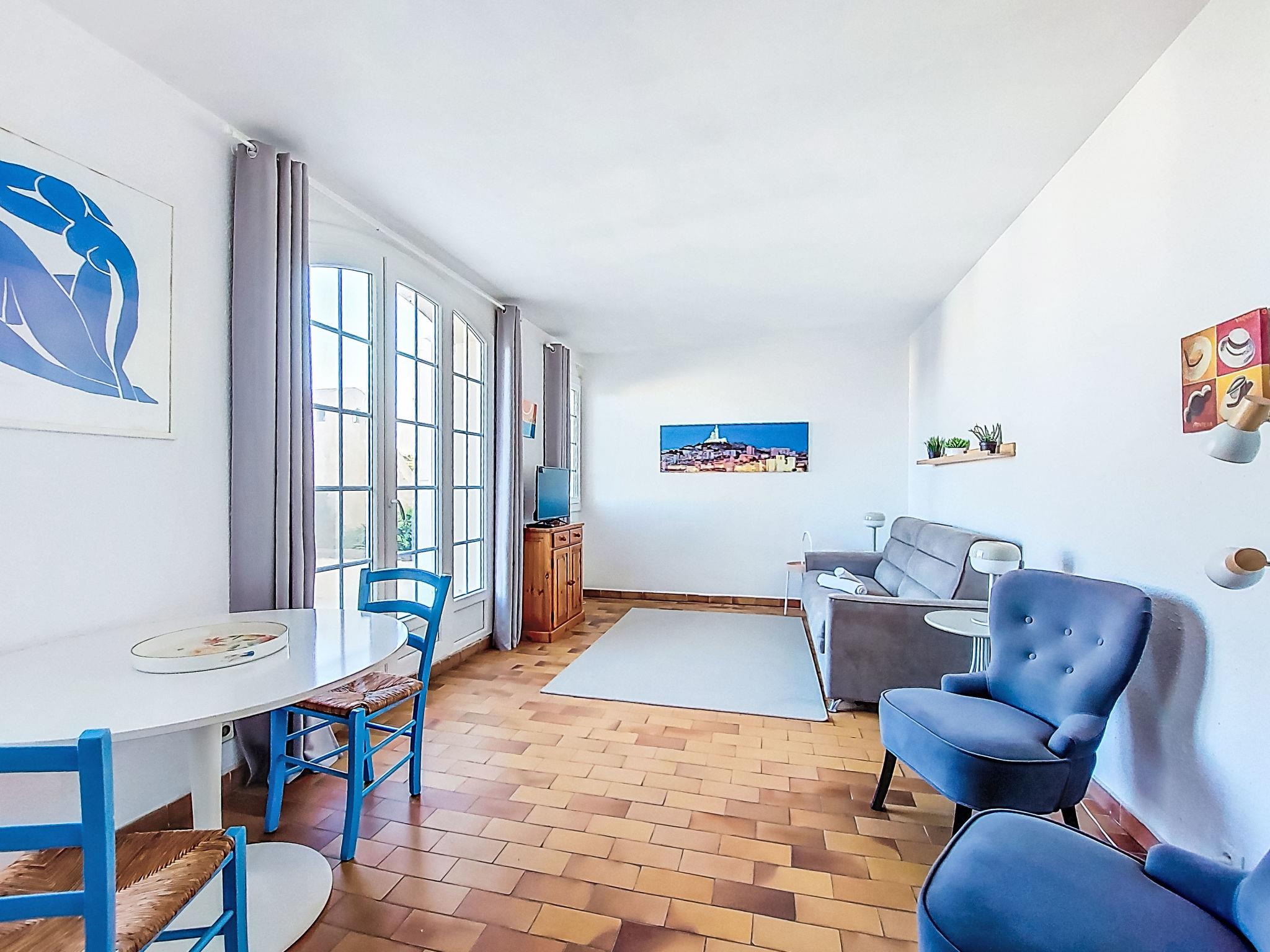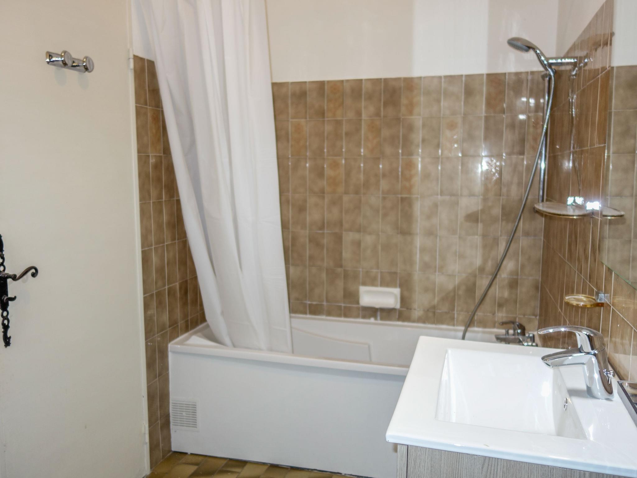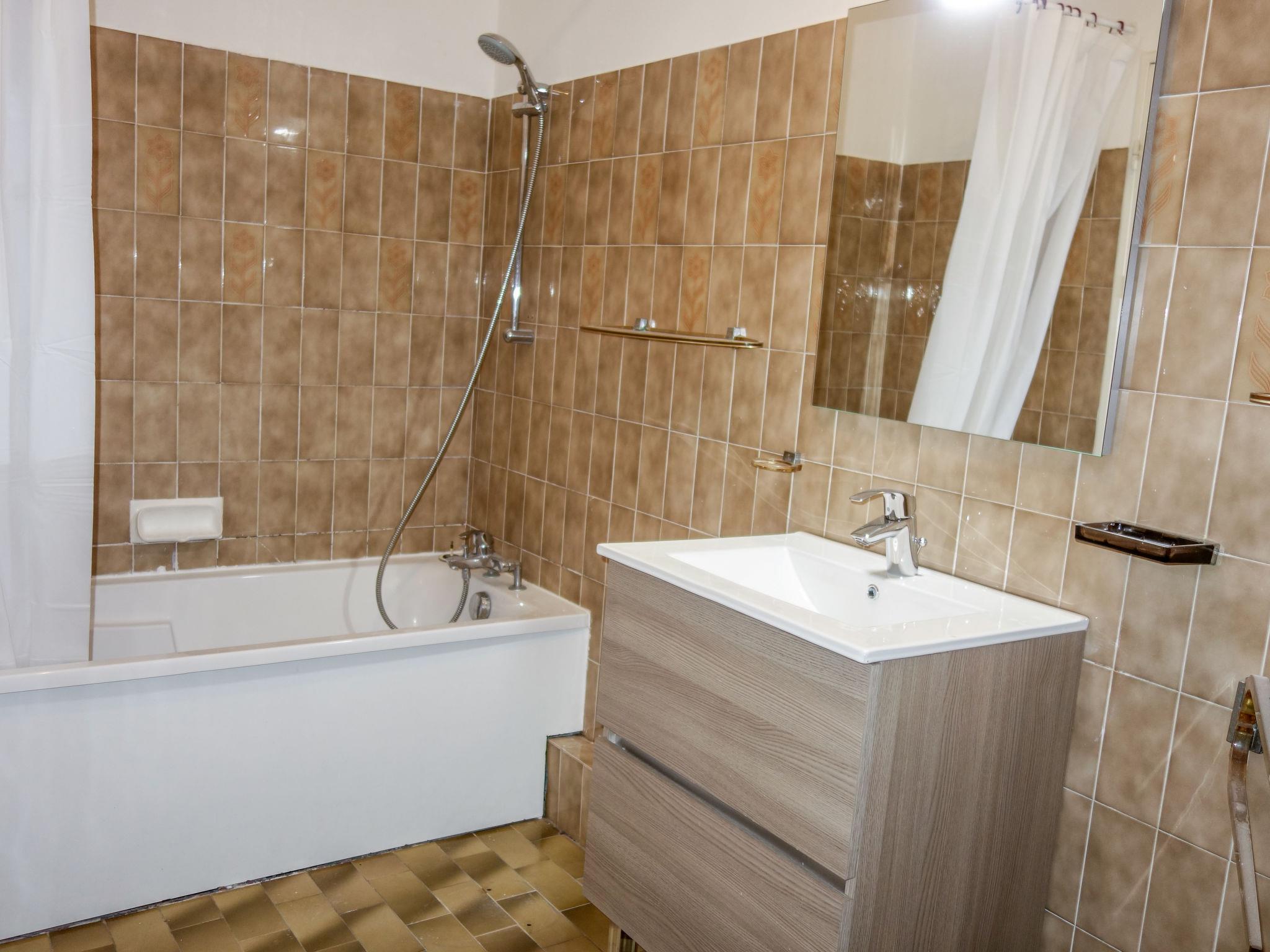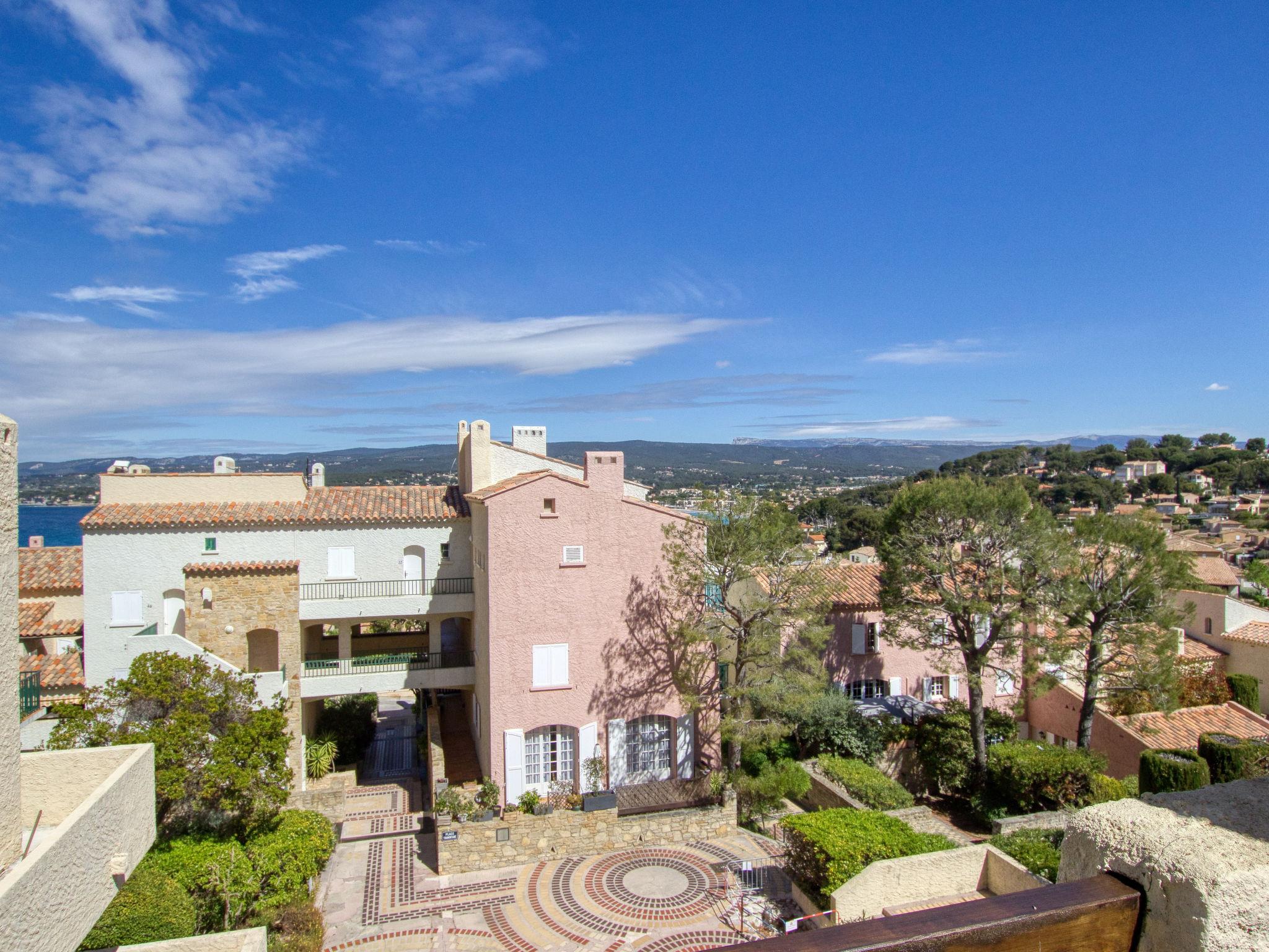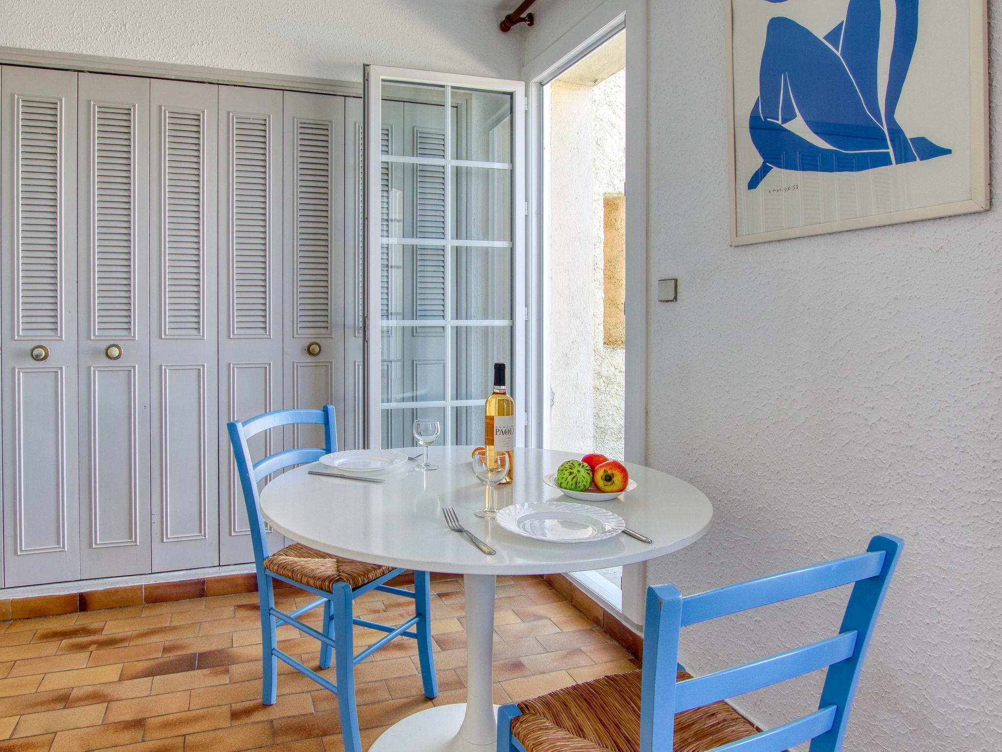 1-room apartment 32 m2 on 1st floor. Simple furnishings: living/dining room with 1 sofabed (160 cm, length 200 cm), TV. Exit to the terrace. Kitchen (2 ceramic glass hob hotplates, toaster, kettle, microwave, electric coffee machine, Capsules for coffee machine (Senséo + filtre) extra). Bath/WC. No heating option. Terrace 20 m2, north-west facing position. Terrace furniture, deck chairs (2). Partial view of the sea. Facilities: Internet (WiFi, extra). Please note: TV only FR. Smoke alarm. Free parking in limited number, on the parking of the residence closed by an electric gate, at the very top of the residence. 83112 000208 PQ