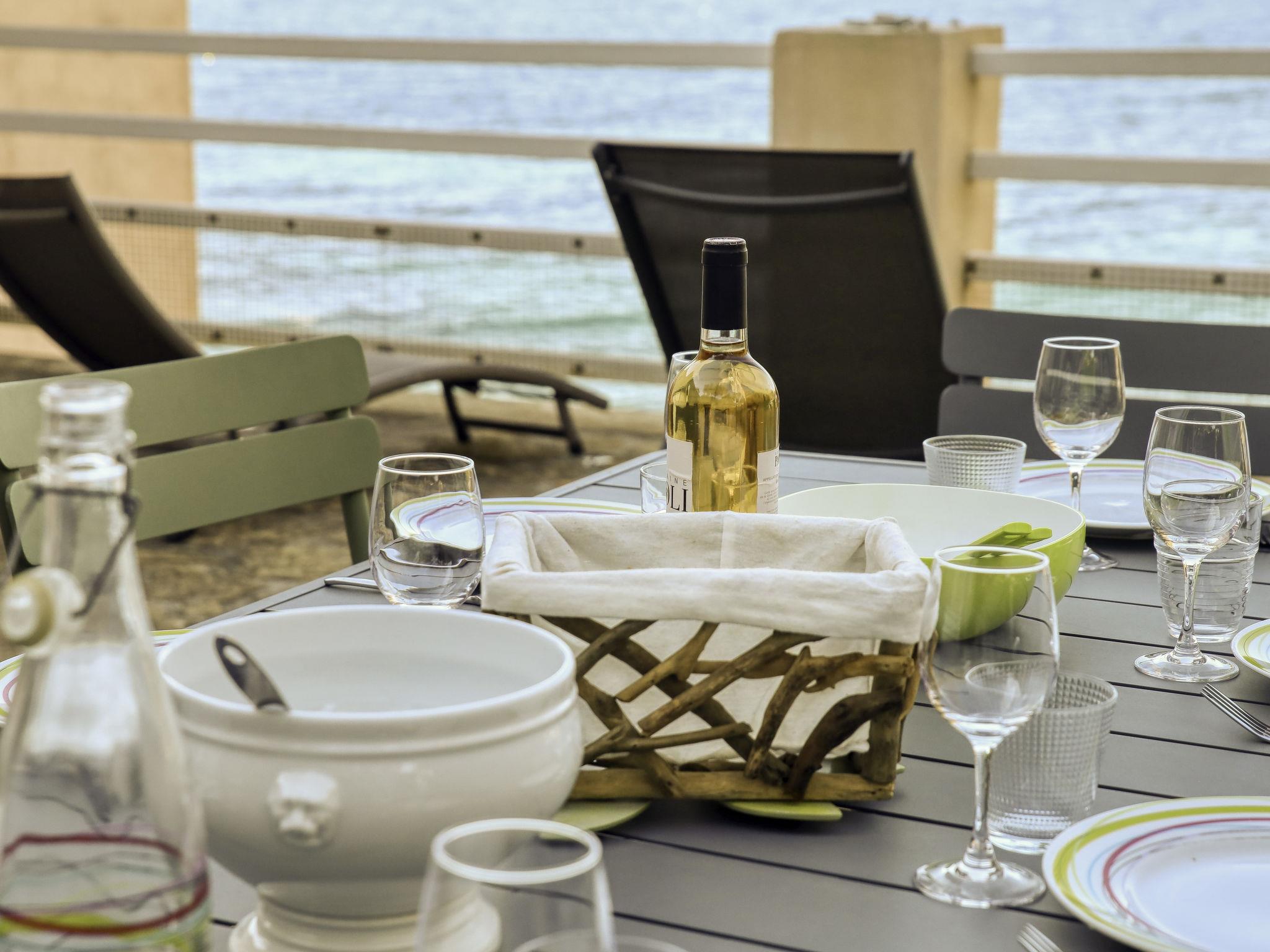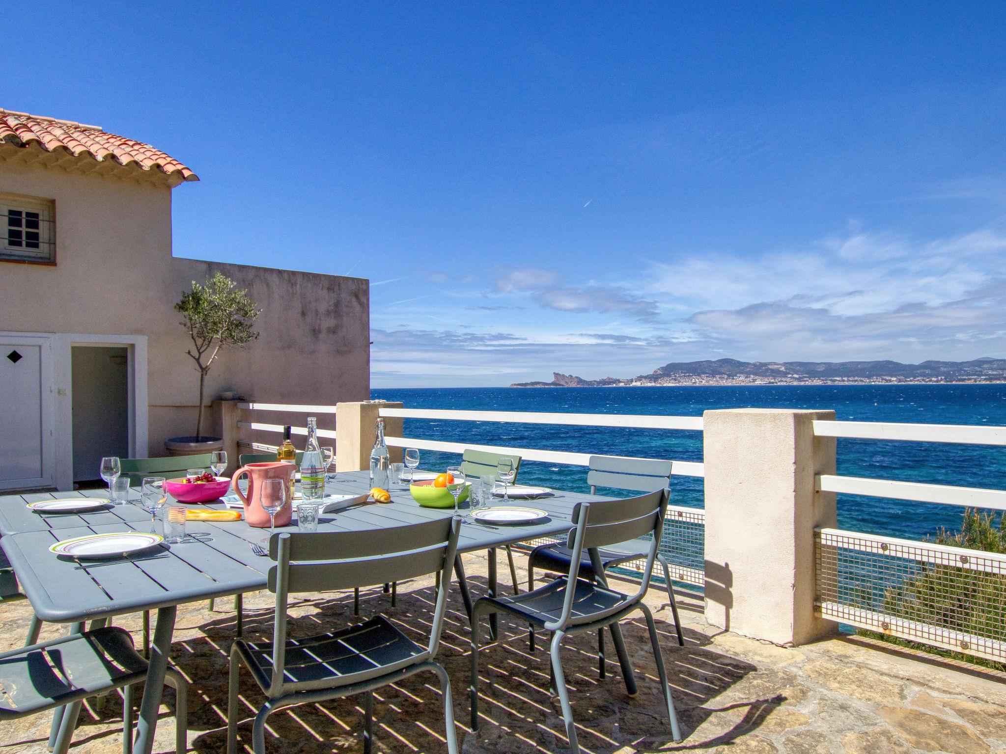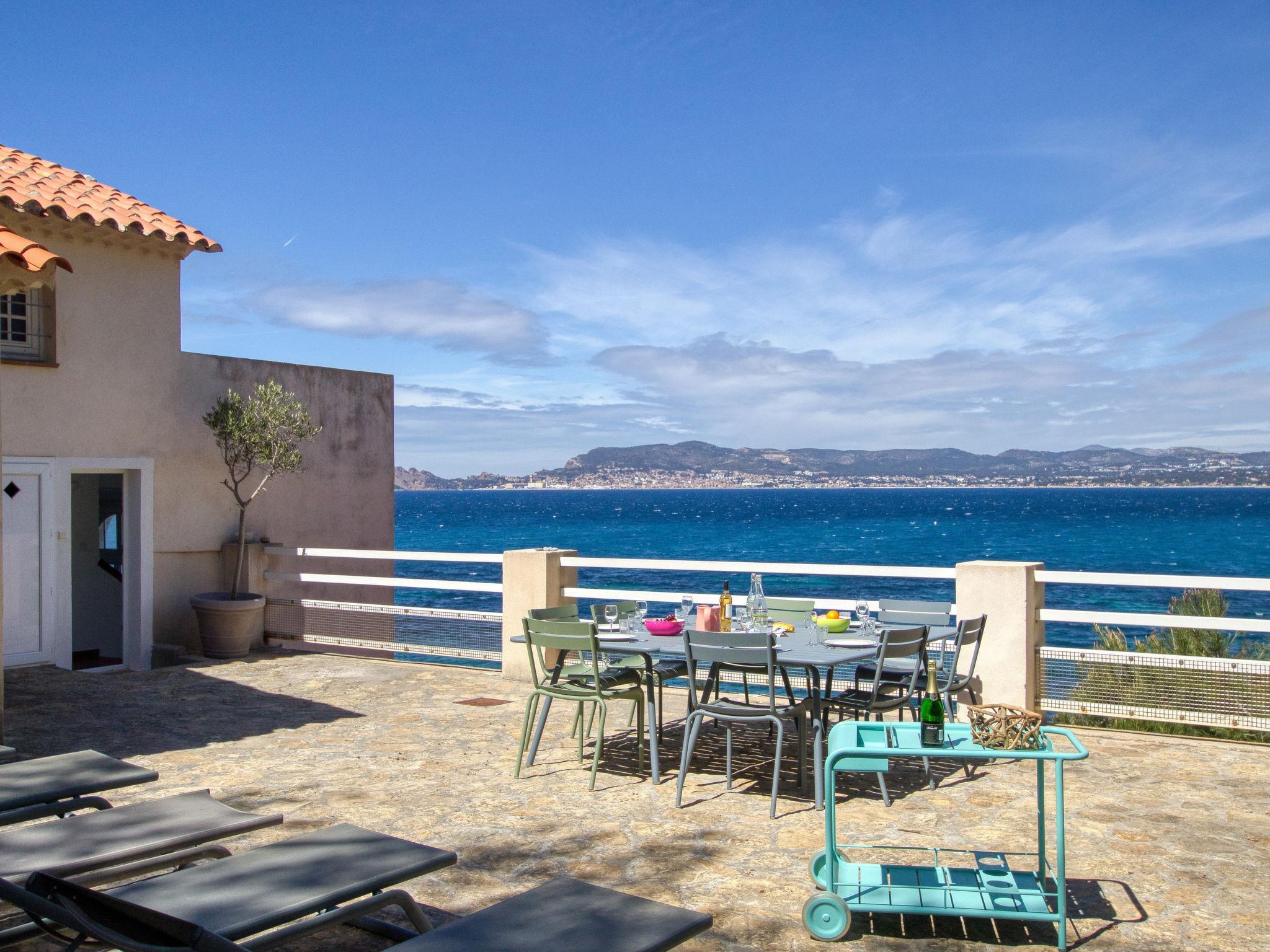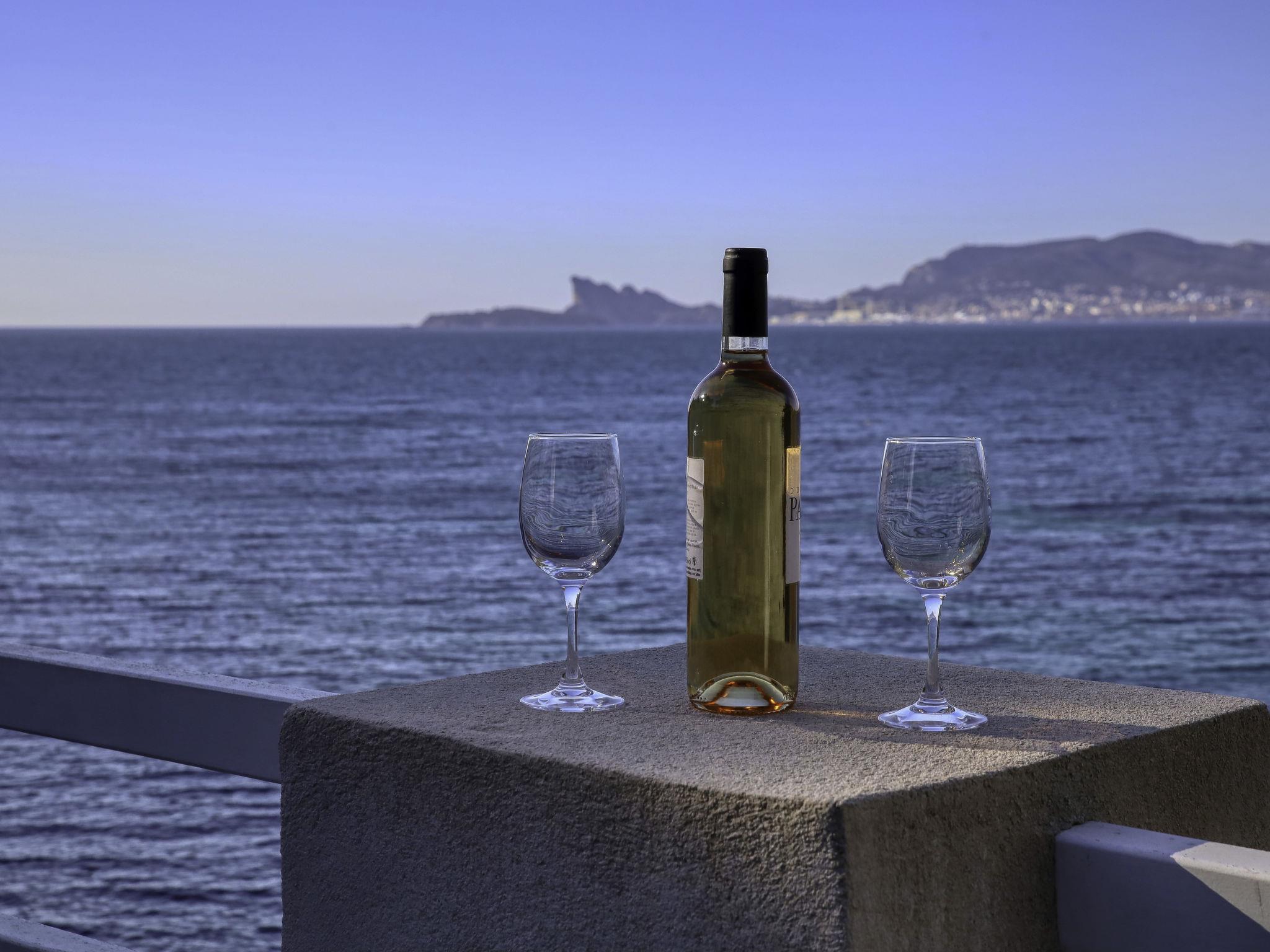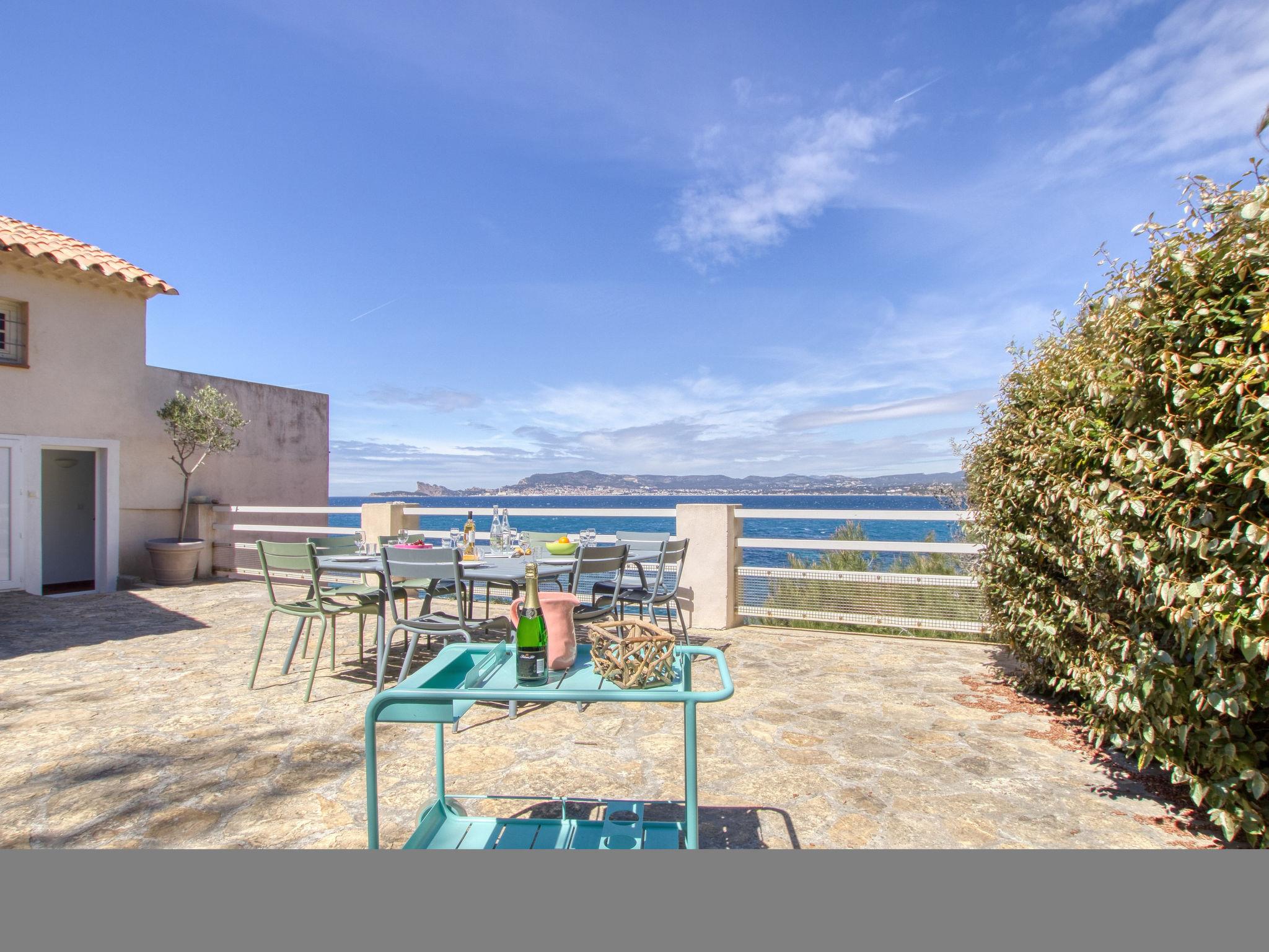 5-room apartment 115 m2 on 2nd floor. Comfortable and beautiful furnishings: living/dining room with dining table and TV (flat screen). Exit to the balcony. 1 room with 1 french bed (140 cm, length 190 cm), fan. 1 room with 1 x 2 bunk beds (90 cm, length 190 cm), fan. 1 room with 1 bed (90 cm, length 190 cm). 1 room with 2 beds (90 cm, length 190 cm). Exit to the balcony. 1 room with 1 french bed (1 x 160 cm, length 200 cm), bath/WC and shower. Exit to the balcony. Kitchen (oven, dishwasher, 4 ceramic glass hob hotplates, toaster, kettle, microwave, freezer, electric coffee machine, Capsules for coffee machine (Nespresso + Filtre) extra). Shower, sep. WC. Electric heating. Large terrace 60 m2, north-west facing position. Terrace furniture, barbecue, deck chairs. Panoramic view of the sea. Facilities: washing machine, baby cot for up to 2 year olds. Internet (WiFi, free). Parking (2 cars). Please note: non-smokers only. Maximum 1 pet/ dog allowed. TV only FR. Smoke alarm. Please note that the barbecue provided is a plancha and that the land is not fully fenced. Offer by a private individual according to Art. 155, IV of CGI. 83112000231QH