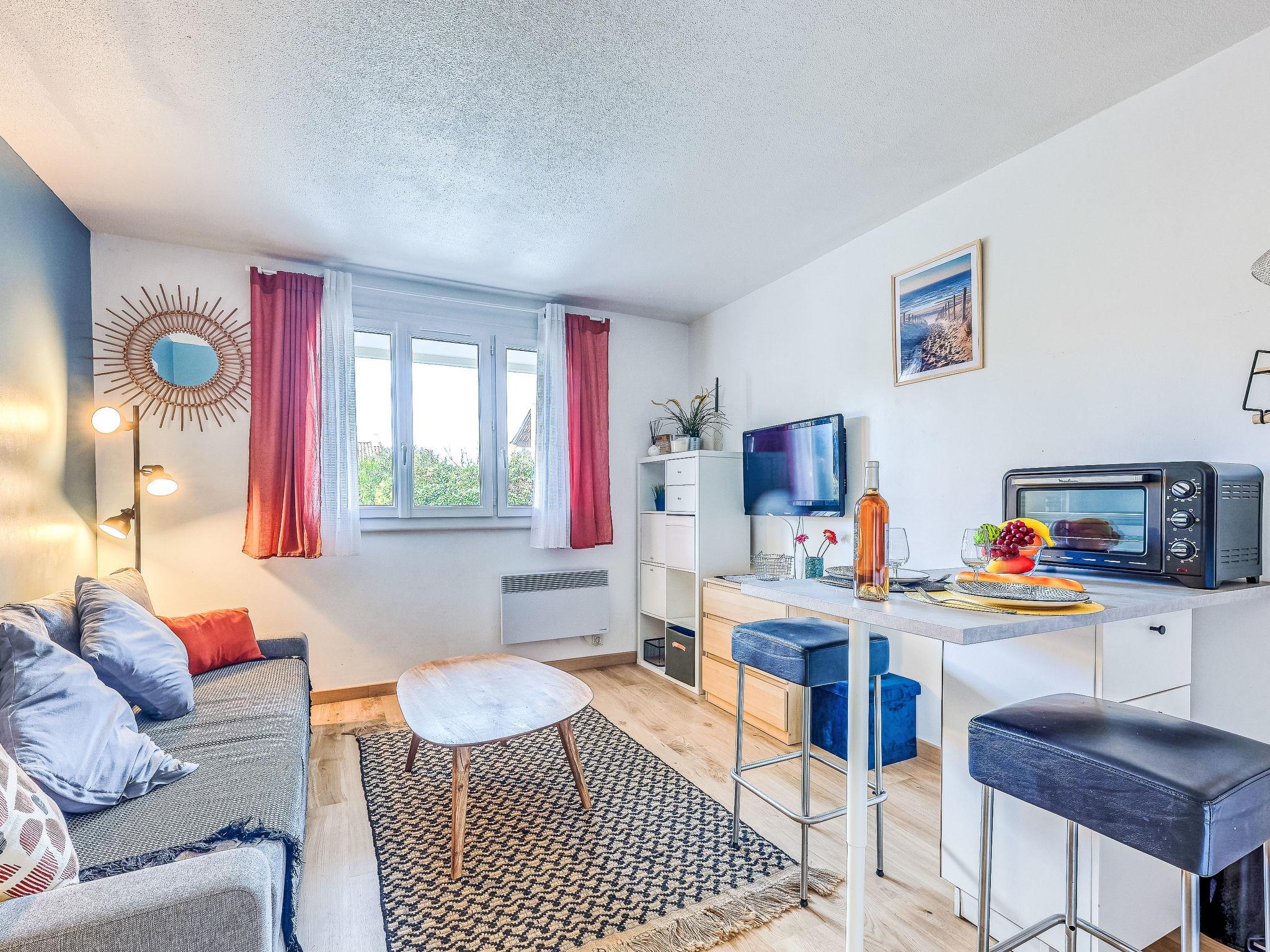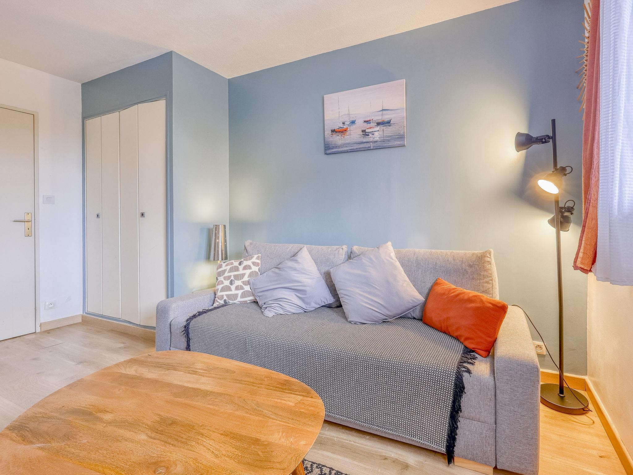 1-room studio 24 m2, on the ground floor. Object suitable for 2 adults + 2 children. Renovated in 2023, comfortable and beautiful furnishings: entrance hall, without window with 1 x 2 bunk beds (70 cm, length 170 cm). Living/dining room with 1 double sofabed (140 cm, length 190 cm), TV (flat screen). Kitchenette (mini-oven, 2 ceramic glass hob hotplates, kettle, microwave, electric coffee machine). Shower/WC. Electric heating. Facilities: washing machine. Internet (WiFi, extra). Please note: TV only FR. Smoke alarm. Offer by a private individual according to Art. 155, IV of CGI. 83112 001616 GX