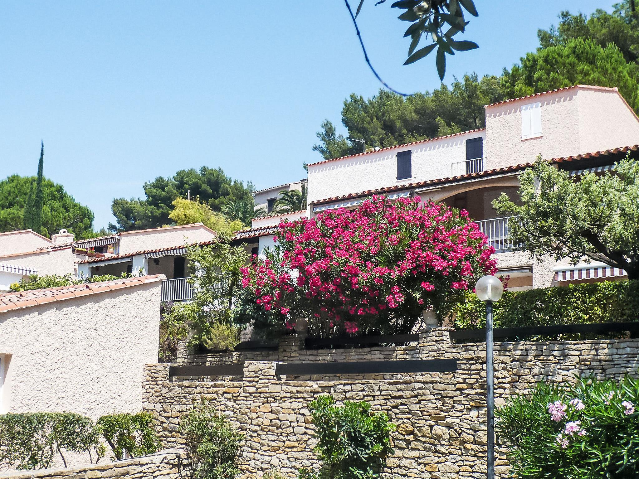 Small residence "Hauts de la Madrague", surrounded by trees. In the resort 2 km from the centre of Saint Cyr, in a quiet, sunny position on top of a hill, 400 m from the sea, 400 m from the beach. Public parking 100 m extra. Grocery 200 m, restaurant 300 m, bus stop "Le Viguier" 2.2 km, railway station "Saint Cyr les Lecques-La Cadière" 3.3 km, sandy beach, shingle beach 400 m. Sports harbour 400 m, golf course (18 hole) 4 km. Nearby attractions: Aqualand 3 km. Hiking paths: Sainte Baume, Sainte Victoire, Calanques Port-Cros, Porquerolles, Ile verte, Embiez, Figuerolles, Cassis. The keys‘ handover takes place by the agency -------- in St Cyr la Madrague. Please note: there are many steps in the residence.