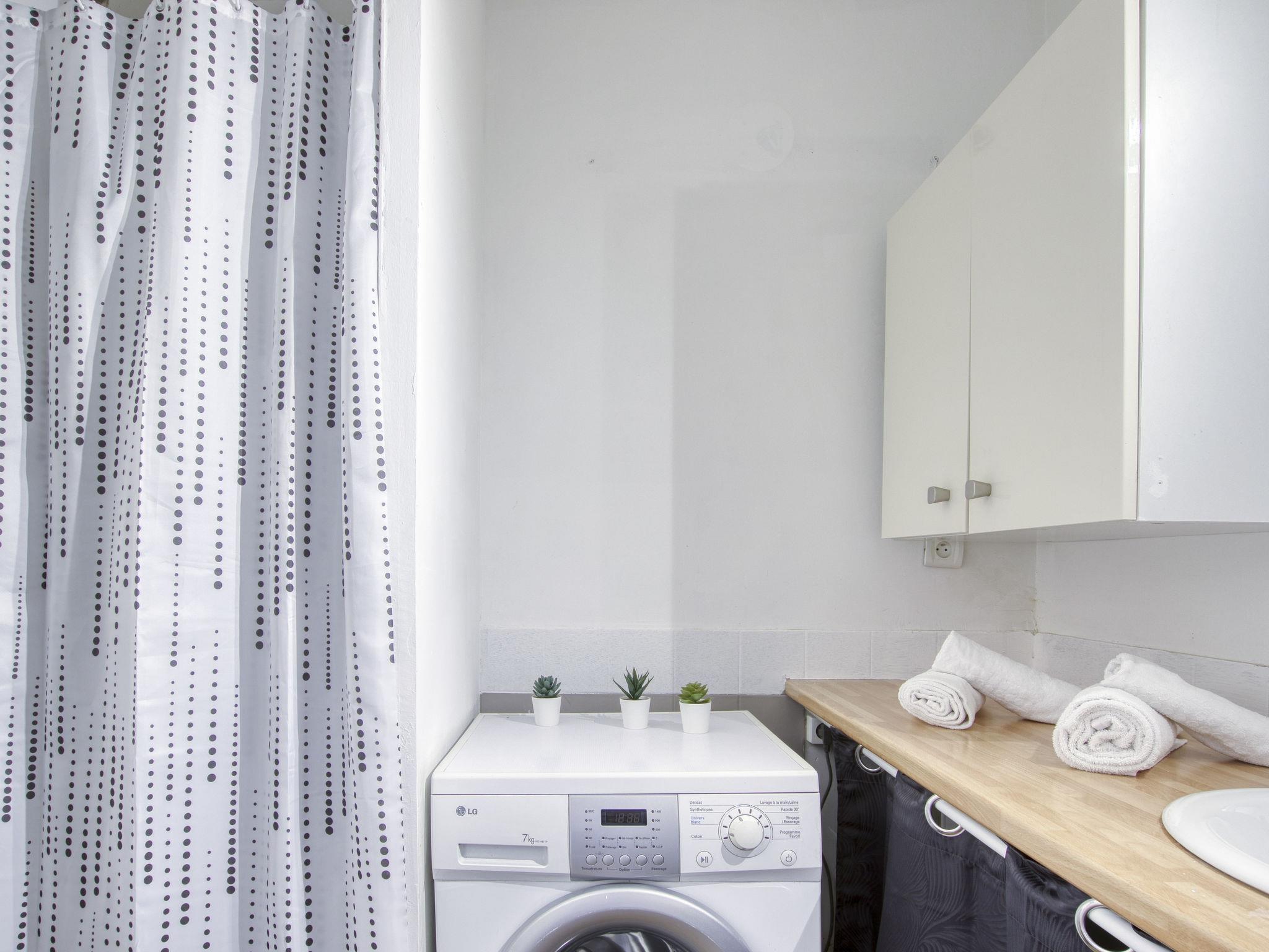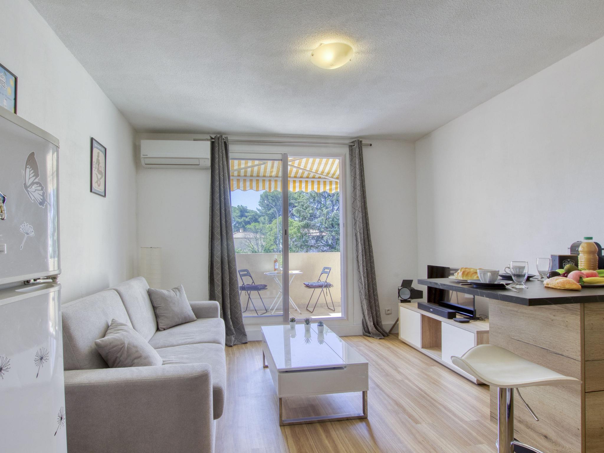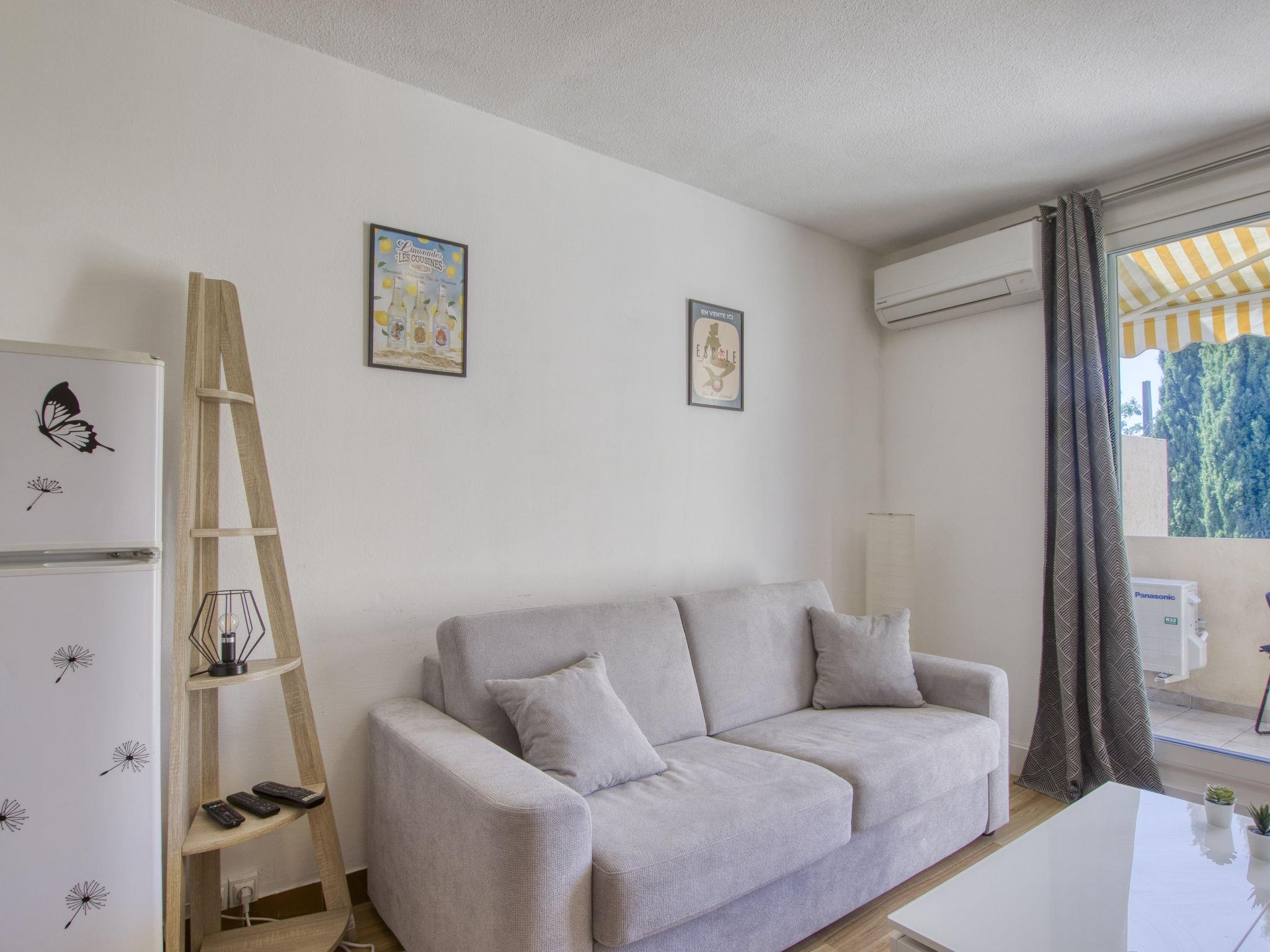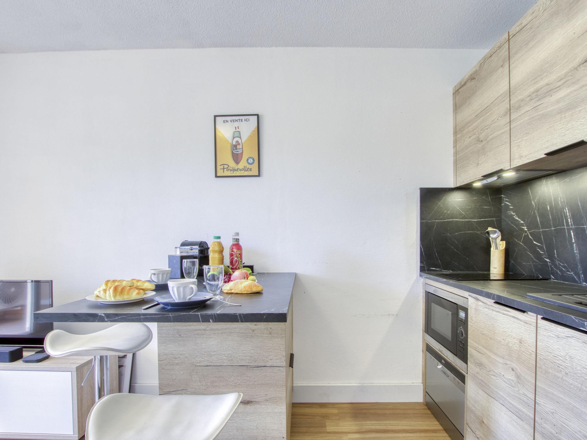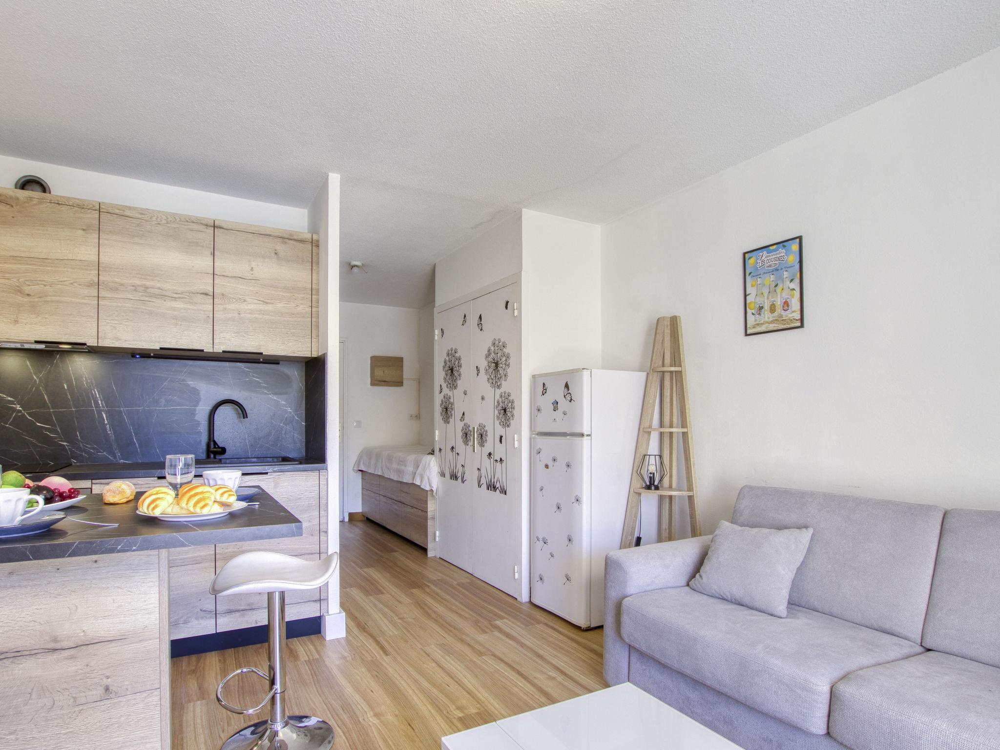 1-room studio 24 m2 on 1st floor. Bright, partly renovated in 2023, comfortable and beautiful furnishings: living/dining room with 1 double sofabed (140 cm, length 190 cm), TV (flat screen), air conditioning. Exit to the terrace. Kitchenette (dishwasher, 2 induction hot plates, toaster, kettle, electric coffee machine, Capsules for coffee machine (Nespresso) extra, combination microwave). Shower/WC. Forced-air heating. Terrace 6 m2. Terrace furniture. Facilities: washing machine. Internet (WiFi, free). Parking space n 43. Please note: TV only FR. Smoke alarm. Offer by a private individual according to Art. 155, IV of CGI. 83112001344LF