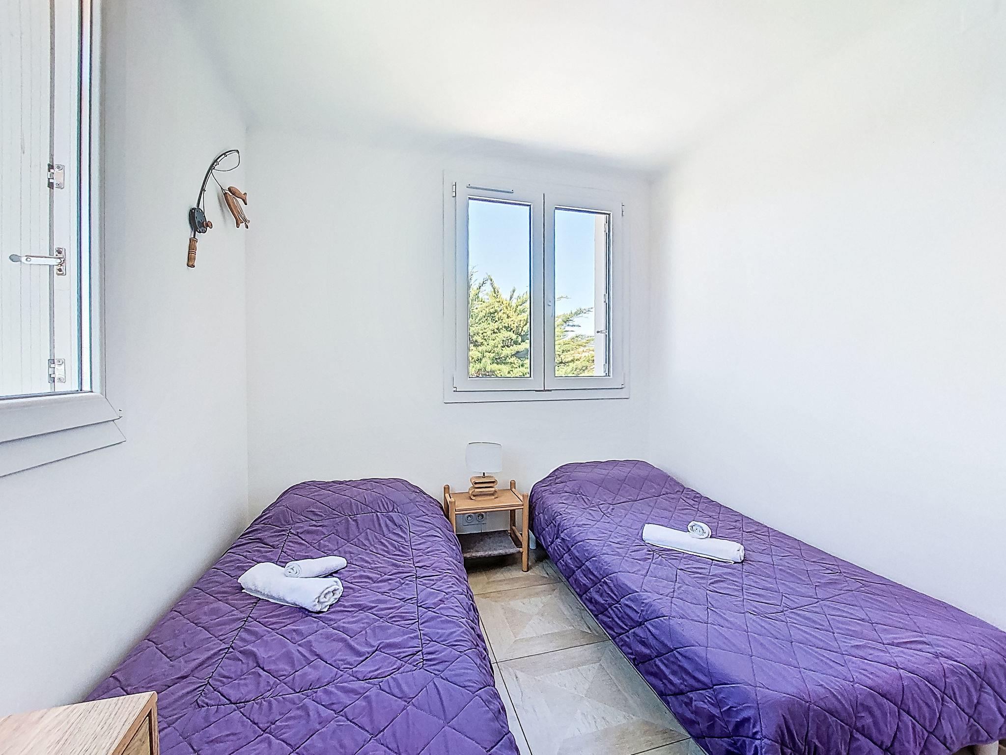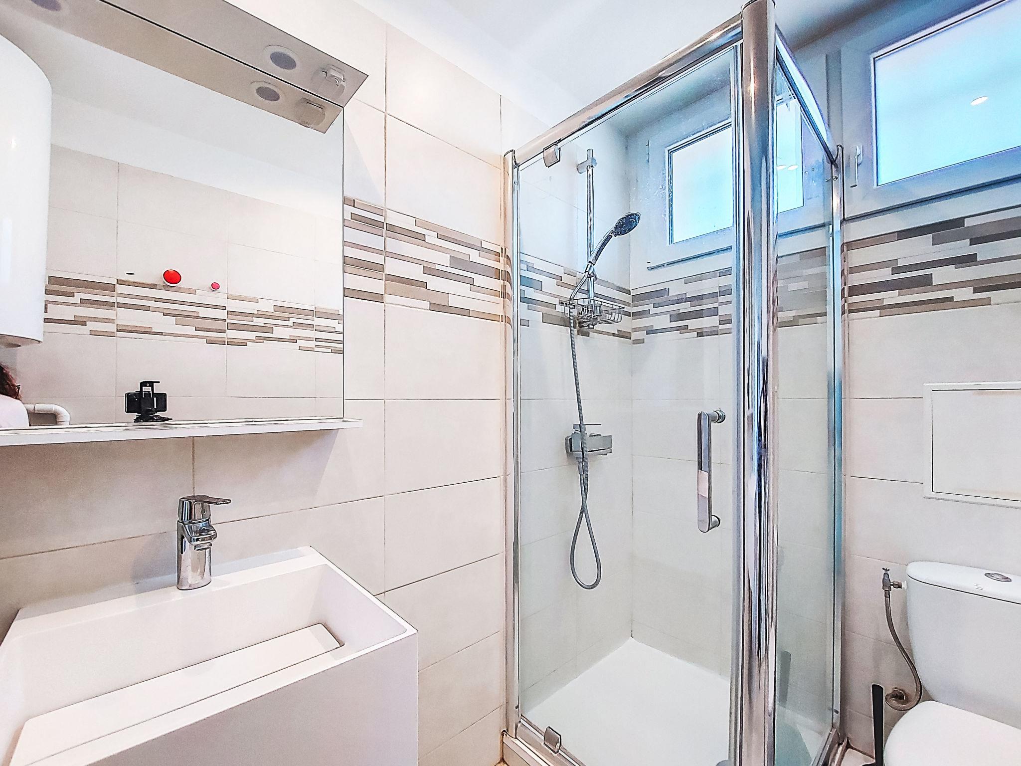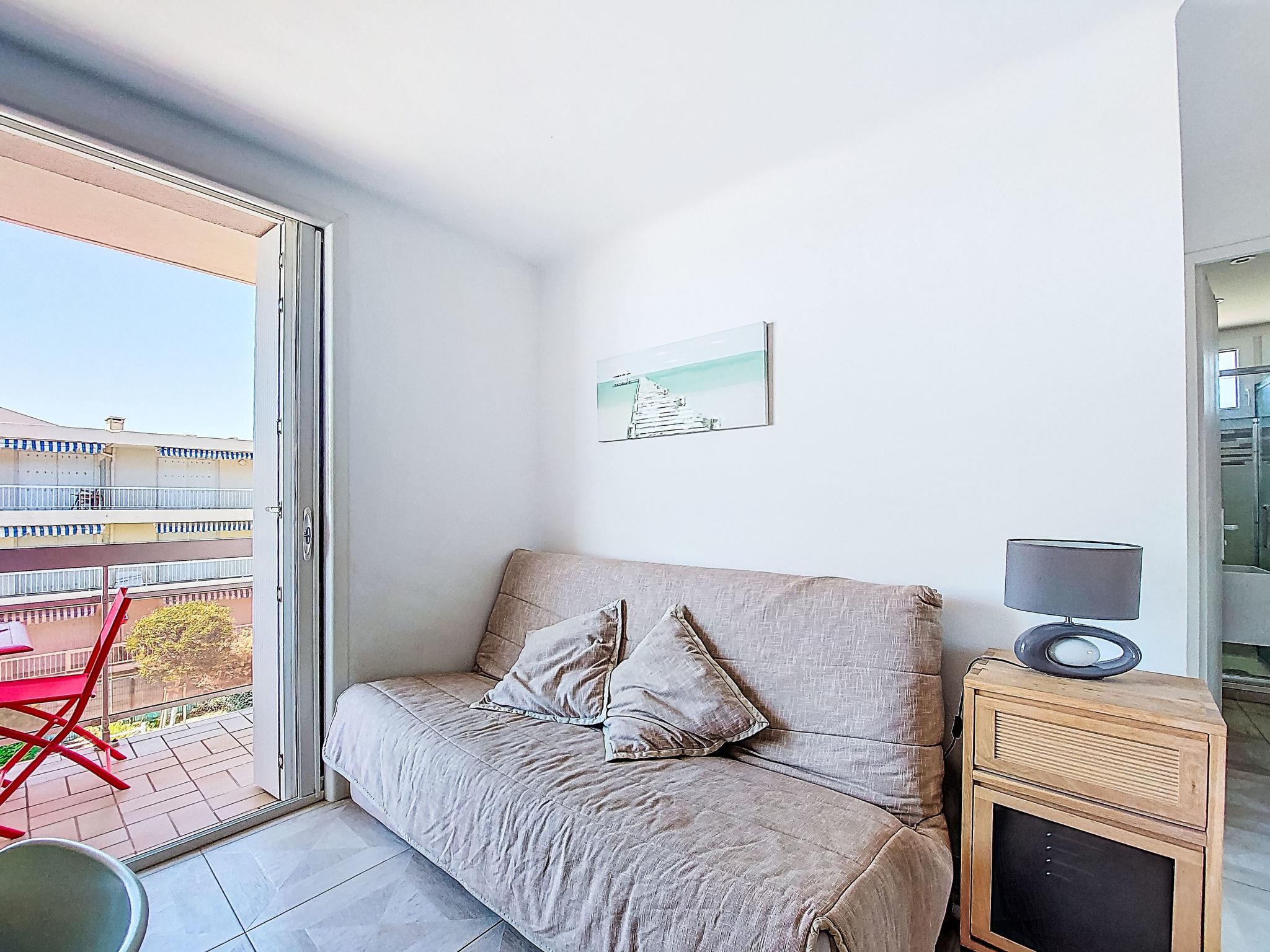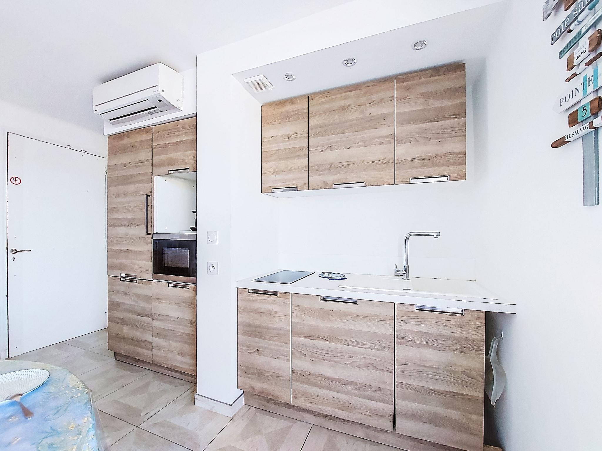 2-room apartment 45 m2 on 2nd floor. Bright, comfortable and beautiful furnishings: living/dining room with 1 double sofabed (140 cm, length 190 cm), TV (flat screen), air conditioning. Exit to the terrace. 1 room with 2 beds (90 cm, length 190 cm). Kitchenette (dishwasher, 2 induction hot plates, toaster, kettle, microwave, electric coffee machine, Capsules for coffee machine (Nespresso + Filtre)). Shower/WC. Forced-air heating. Terrace 5 m2, roofed, north-west facing position. Terrace furniture, electric barbecue. Side view of the sea. Facilities: washing machine. Internet (WiFi, free). Parking space n 11. Please note: TV only FR. Smoke alarm. Offer by a private individual according to Art. 155, IV of CGI. 83112 001748 6S