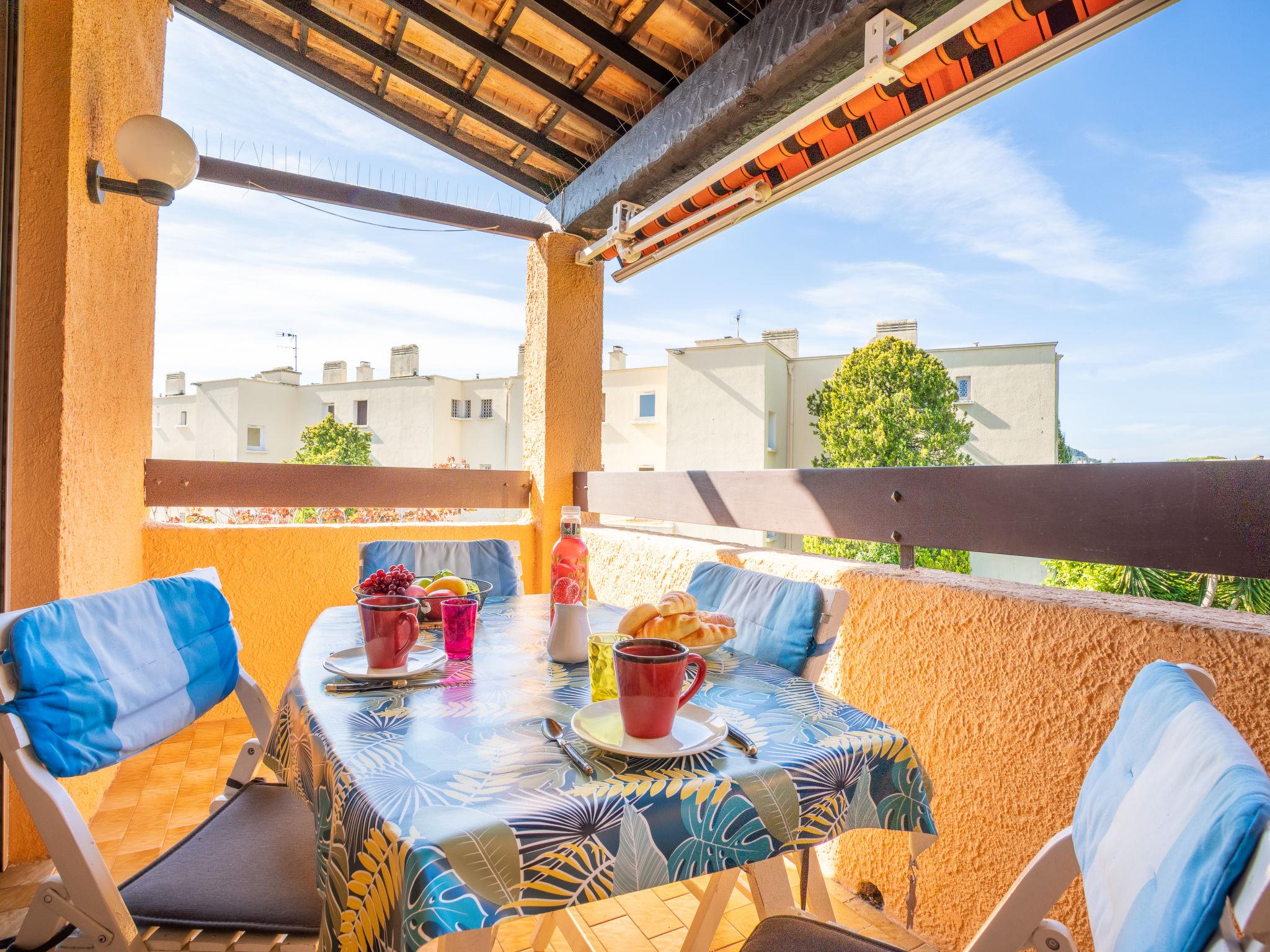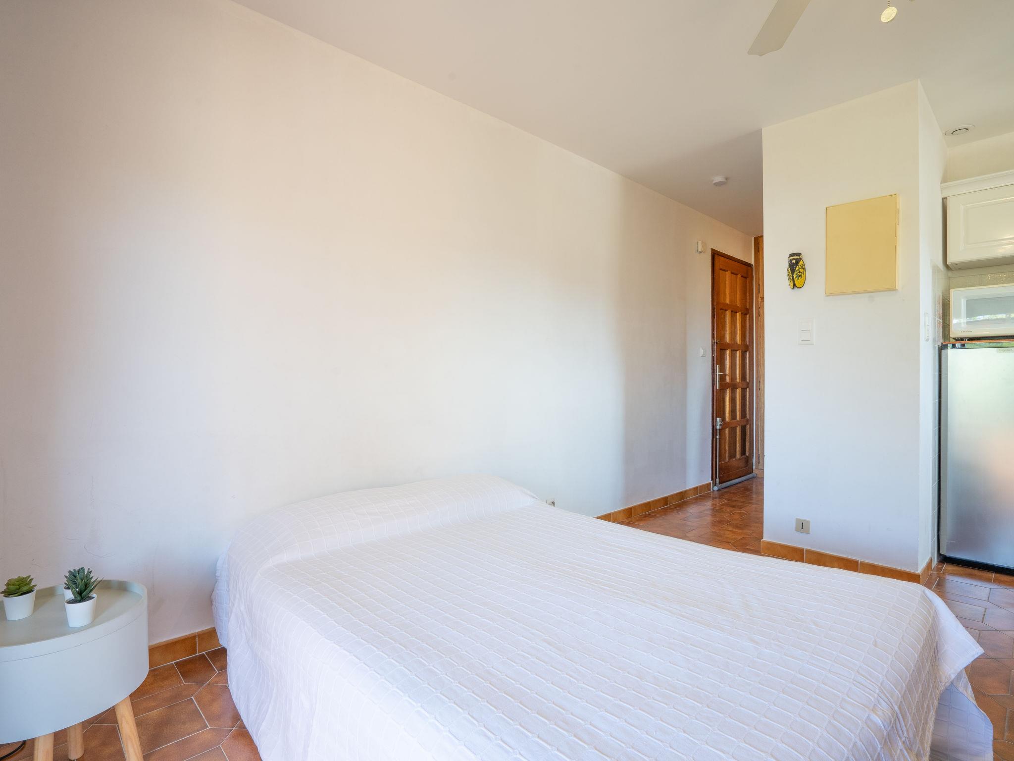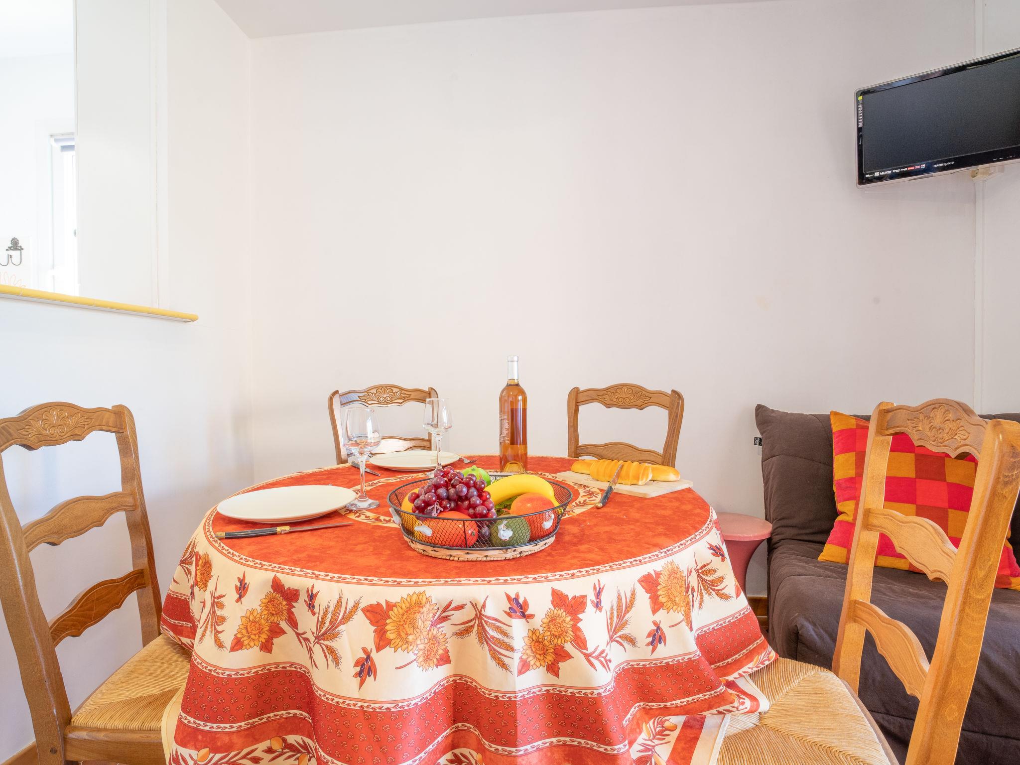 1-room studio 27 m2 on 1st floor. Practical furnishings: living/dining room with 1 double sofabed (130 cm, length 190 cm), TV. Exit to the terrace. Kitchenette (dishwasher, 2 ceramic glass hob hotplates, toaster, kettle, microwave, electric coffee machine, Capsules for coffee machine (Dolce Gusto) extra). Bath/WC. Electric heating. Terrace 8 m2, roofed, south-west facing position. Terrace furniture. Facilities: washing machine, iron. Internet (WiFi, extra). Please note: non-smokers only. TV only FR. Smoke alarm. 83112000215S2
