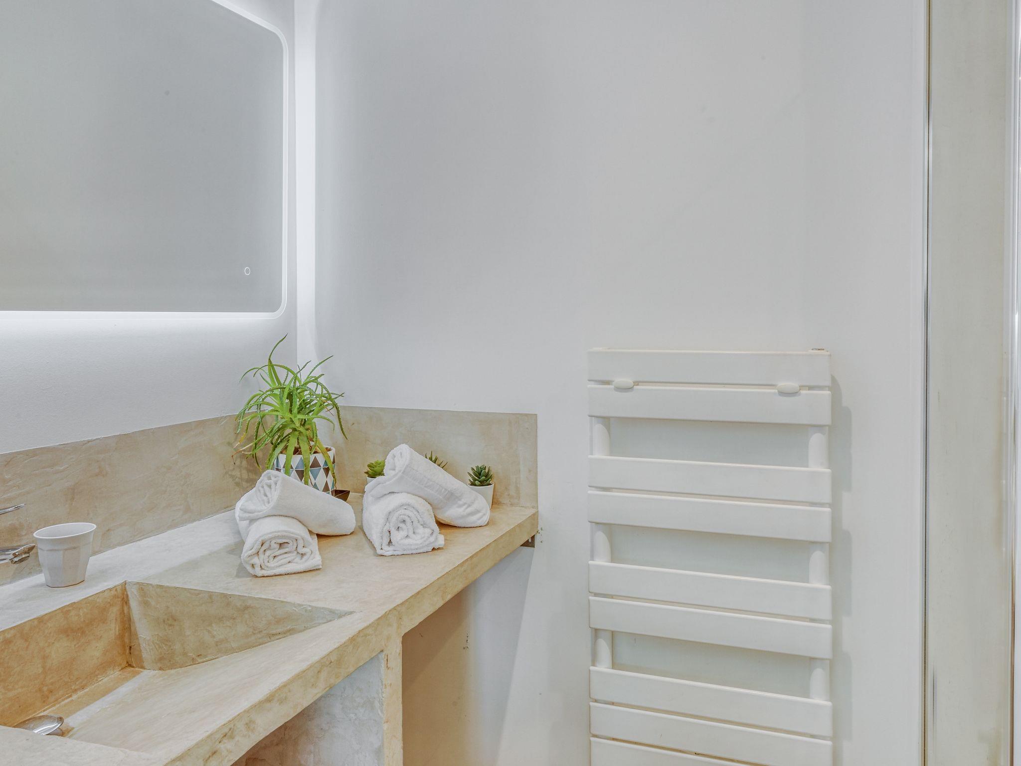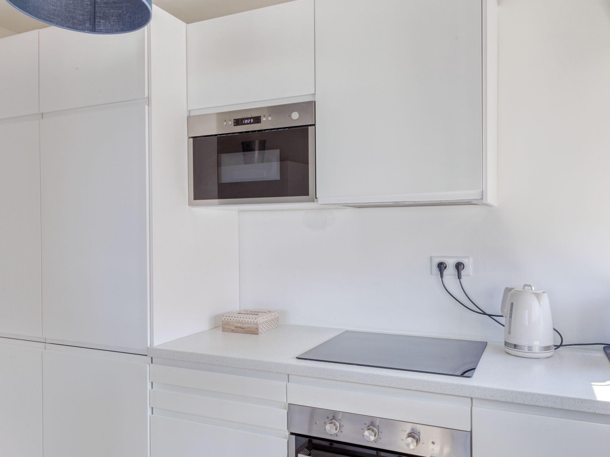 2-room apartment 44 m2 on 1st floor. Bright, fully renovated in 2020, comfortable and beautiful furnishings: living/dining room with 1 double sofabed (140 cm, length 190 cm), TV (flat screen). Exit to the terrace. 1 room with Dressing room with 1 french bed (1 x 160 cm, length 200 cm), air conditioning. Open kitchen (oven, dishwasher, 3 induction hot plates, toaster, kettle, microwave, freezer, electric coffee machine, Capsules for coffee machine (Nespresso) extra). Shower, sep. WC. Electric heating, air-conditioning. Terrace 7 m2. Terrace furniture, electric barbecue. Beautiful view of the sea. Facilities: washing machine. Internet (WiFi, free). Parking space n 6 (1 car). Please note: maximum 1 small pet/ dog allowed. TV only FR. Smoke alarm. 83112000576JF