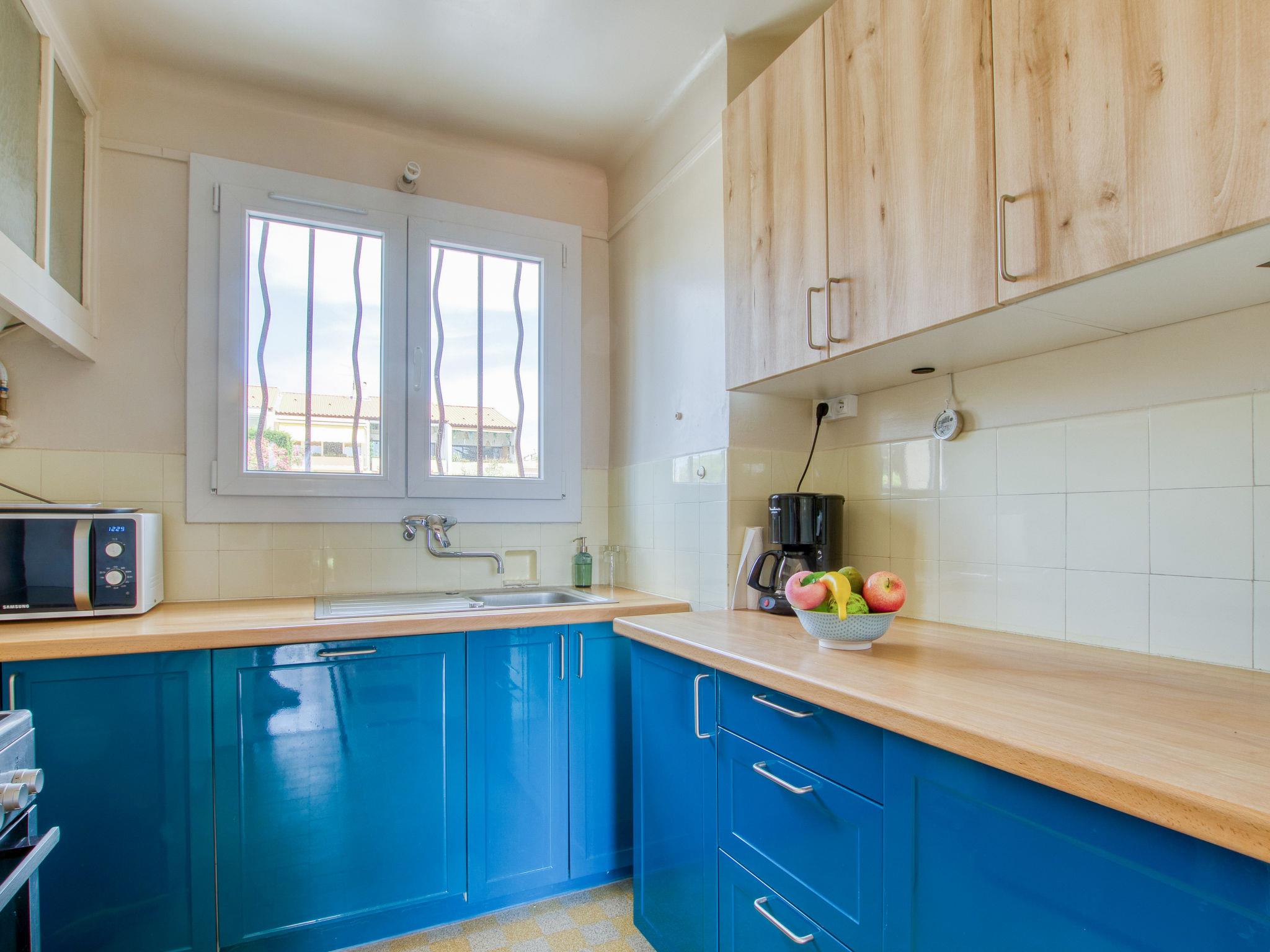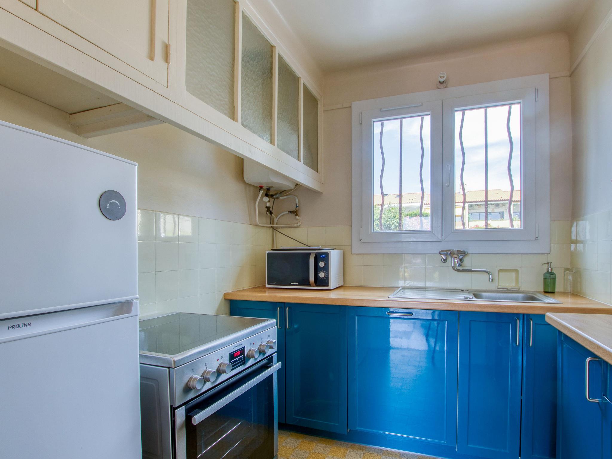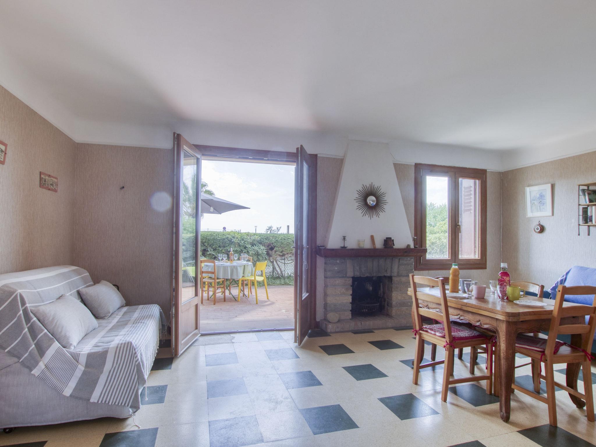 2-room apartment 46 m2, on the ground floor. Bright, beautiful furnishings: living/dining room with 1 double sofabed (140 cm, length 190 cm), open-hearth fireplace (only for decoration), TV (flat screen). Exit to the patio, south-west facing position. 1 room with 1 french bed (160 cm, length 200 cm). Kitchen (oven, dishwasher, 4 ceramic glass hob hotplates, toaster, microwave, freezer, electric coffee machine). Shower/WC. Electric heating. Terrace furniture. Distant view of the sea. Facilities: washing machine. Internet (WiFi, free). Please note: TV only FR. Smoke alarm. Offer by a private individual according to Art. 155, IV of CGI. 83115000830Q1
