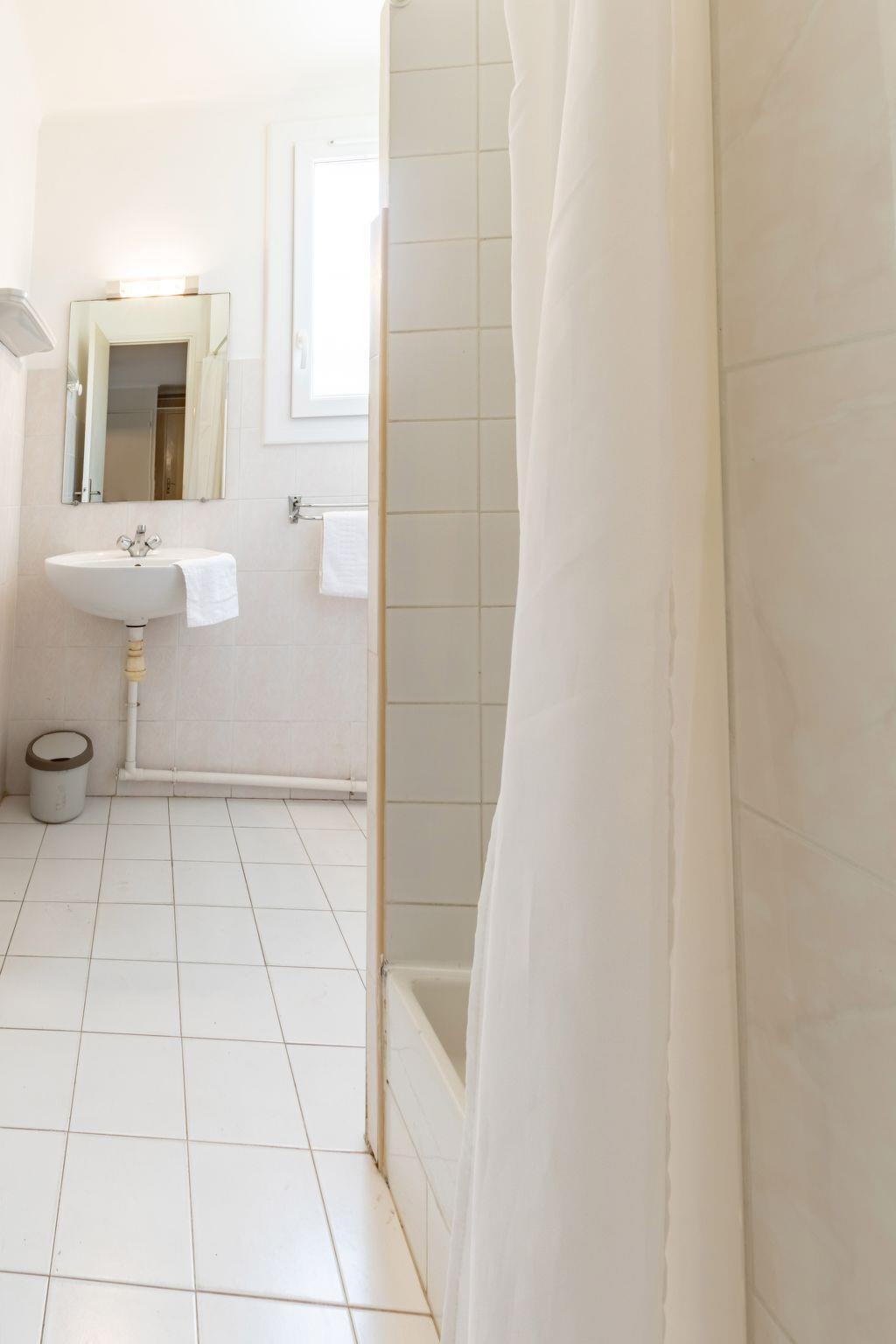 2-room apartment 38 m2, on the ground floor. Simple and practical furnishings: living/dining room with 1 bed (80 cm, length 190 cm), TV (flat screen). Exit to the terrace. 1 room with 2 beds (80 cm, length 190 cm). Kitchenette (2 hot plates, kettle, microwave, electric coffee machine). Shower, sep. WC. No heating option. Terrace 6 m2, north-west facing position. Terrace furniture. Facilities: Internet (WiFi, extra). Parking (1 car). Please note: not suitable for children under 3 years. TV only FR. Smoke alarm. 83112000017M8