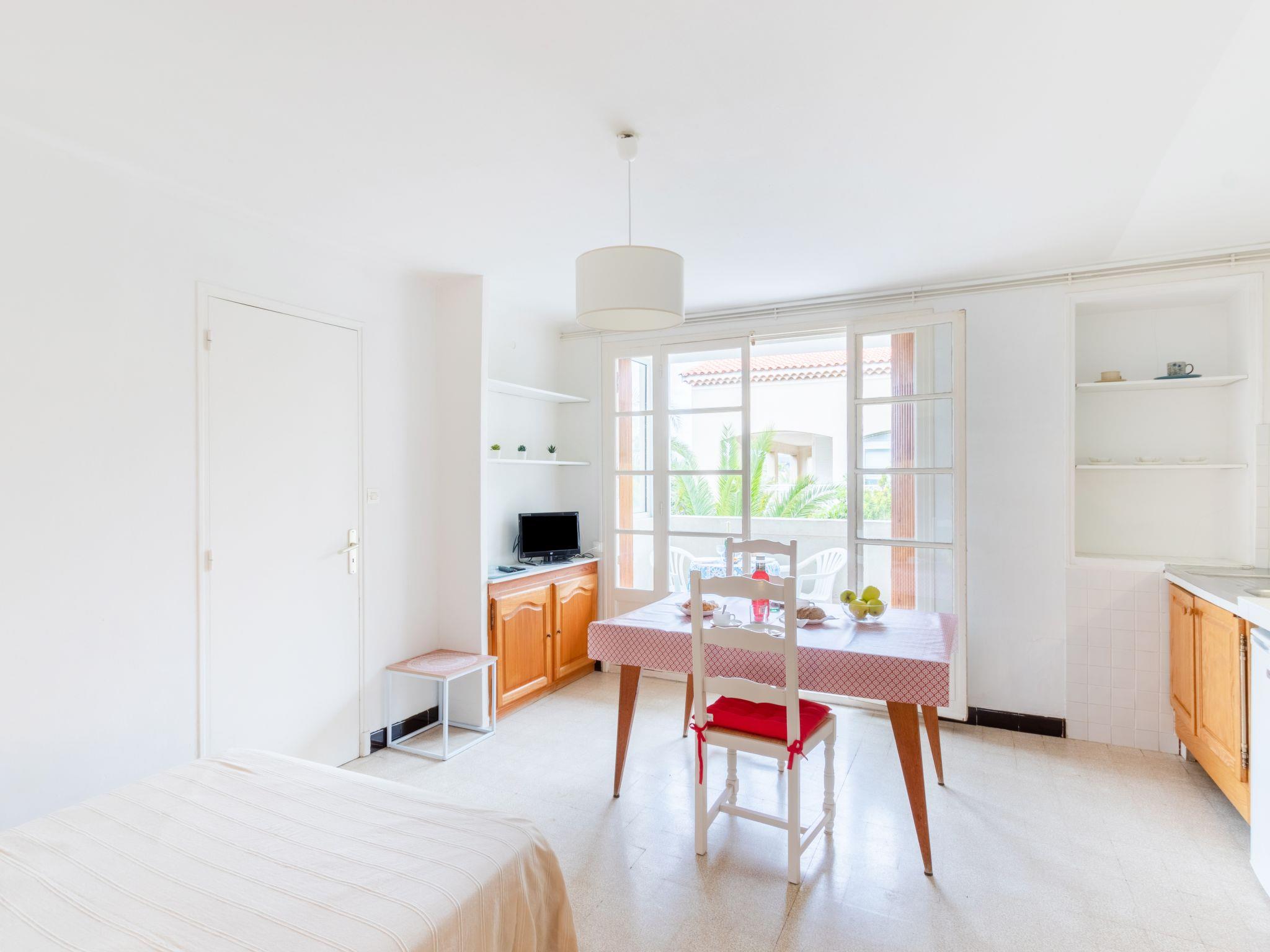 Les Lecques: Residence "Super Plage", 2 storeys. In the resort 500 m from the centre of Les lecques, 30 m from the sea, road to cross. Shop 500 m, supermarket 1.5 km, restaurant 400 m, bus stop "Le Viguier" 1.1 km, railway station "Saint Cyr les Lecques-La Cadière" 2.2 km, sandy beach 30 m. Golf course (18 hole) 5 km. Nearby attractions: Aqualand 2 km. Hiking paths: Sainte Baume, Sainte Victoire, Calanques, Port-Cros,Porquerolles. Please note: the keys‘ handover takes place by the agency Interhome in SaintCyr La Madrague, 2 km. The photograph shows a typical example. Additional accommodations can be booked.