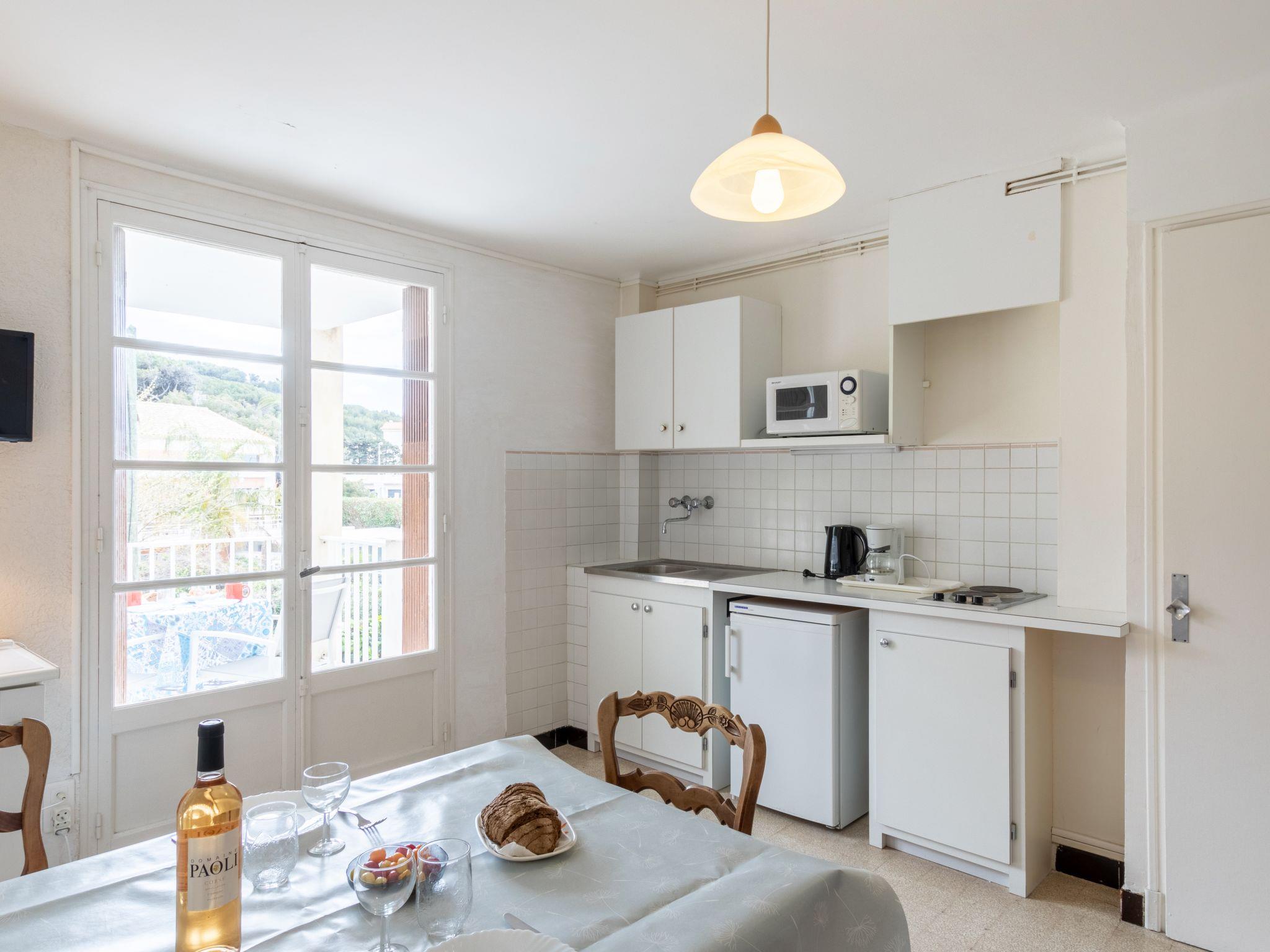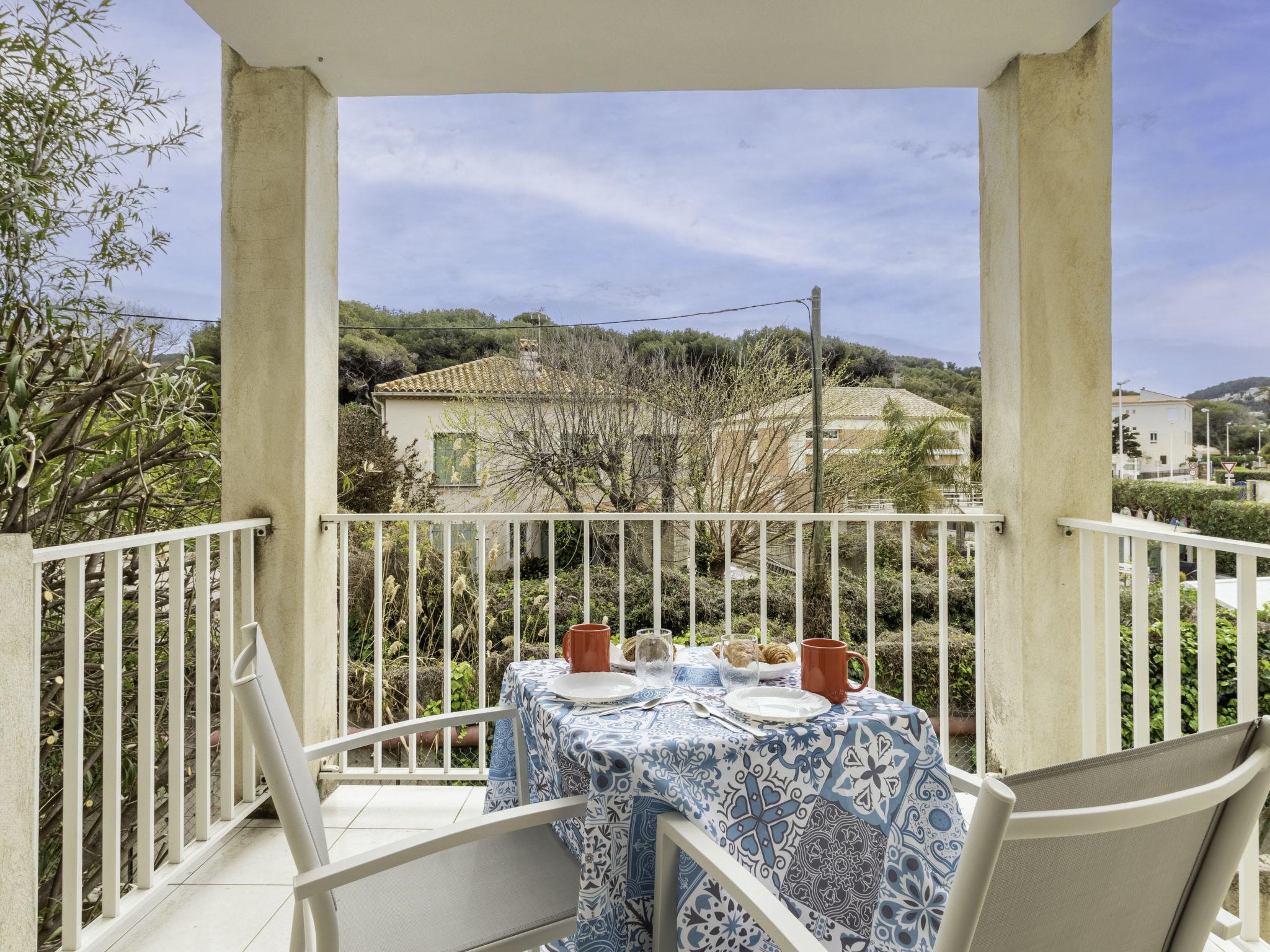 Les Lecques: Residence "Super Plage", 2 storeys. In the resort 500 m from the centre of Les lecques, 30 m from the sea, road to cross. Shop 500 m, supermarket 1.5 km, restaurant 400 m, bus stop "Le Viguier" 1.1 km, railway station "Saint Cyr les Lecques-La Cadière" 2.2 km, sandy beach 30 m. Golf course (18 hole) 5 km. Nearby attractions: Aqualand 2 km. Hiking paths: Sainte Baume, Sainte Victoire, Calanques, Port-Cros,Porquerolles. Please note: the keys‘ handover takes place by the agency Interhome in SaintCyr La Madrague, 2 km. The photograph shows a typical example. Additional accommodations can be booked.