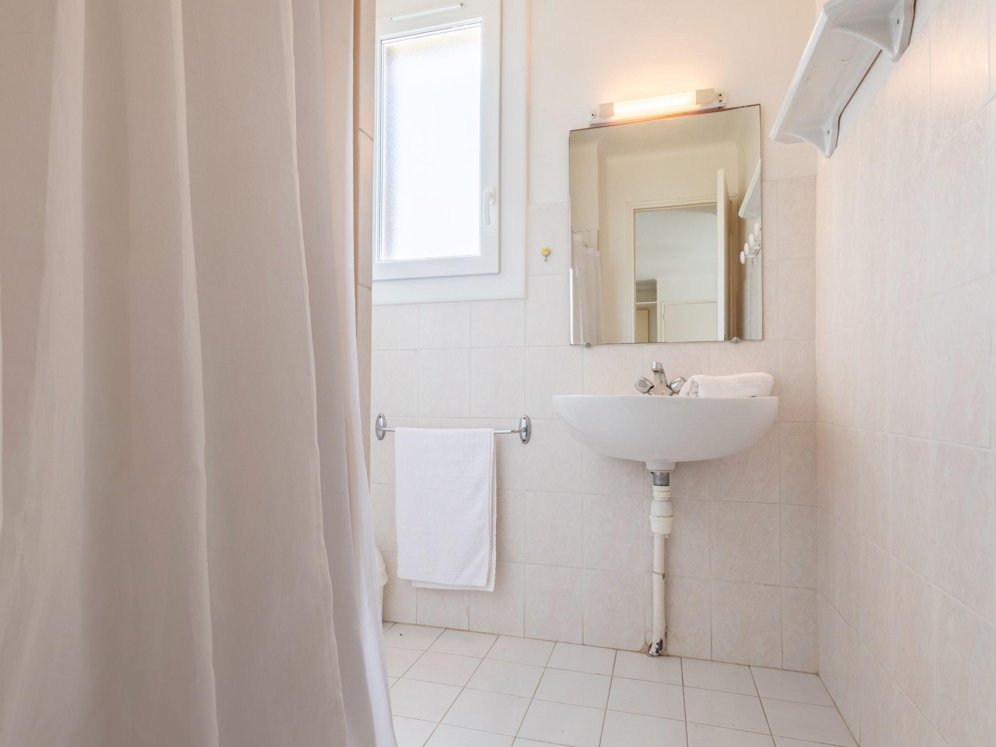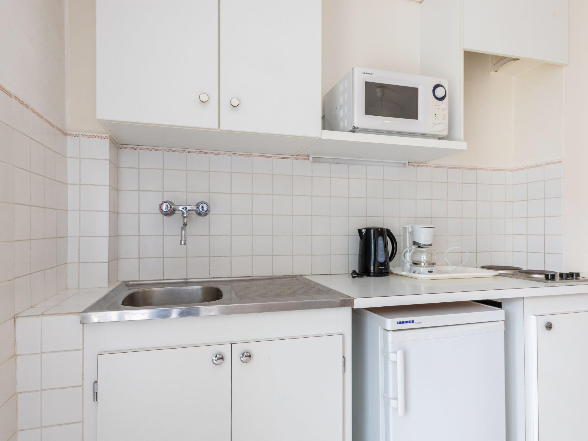 2-room apartment 36 m2 on 1st floor. Simple and practical furnishings: living/dining room with TV. Exit to the terrace. 1 room with 2 beds (90 cm, length 190 cm). Kitchenette (2 hot plates, toaster, kettle, microwave, electric coffee machine). Shower, sep. WC. No heating option. Terrace 6 m2, south-east facing position. Terrace furniture. Facilities: Internet (WiFi, extra). Parking (1 car). Please note: not suitable for children under 3 years. TV only FR. Smoke alarm. 83112000682OK