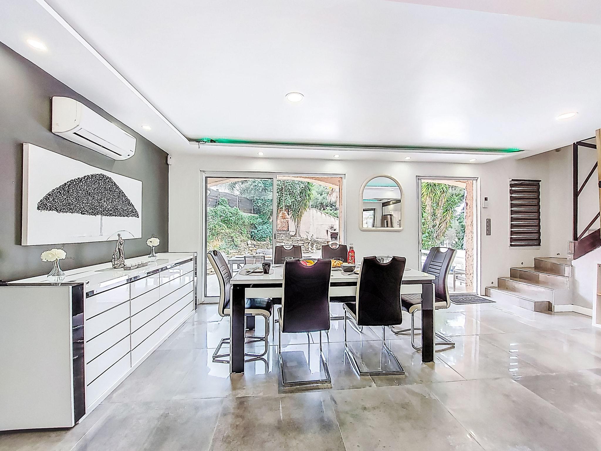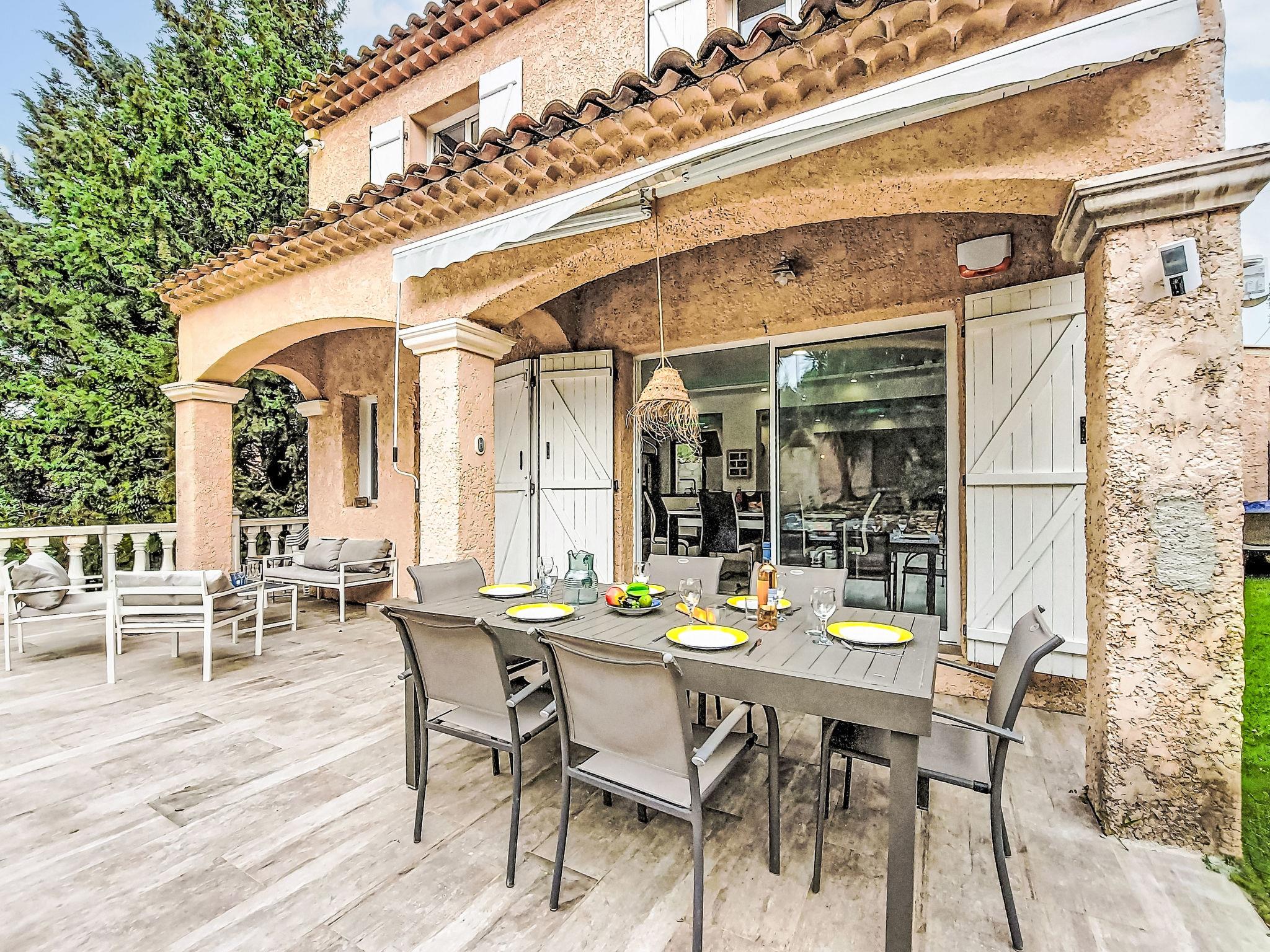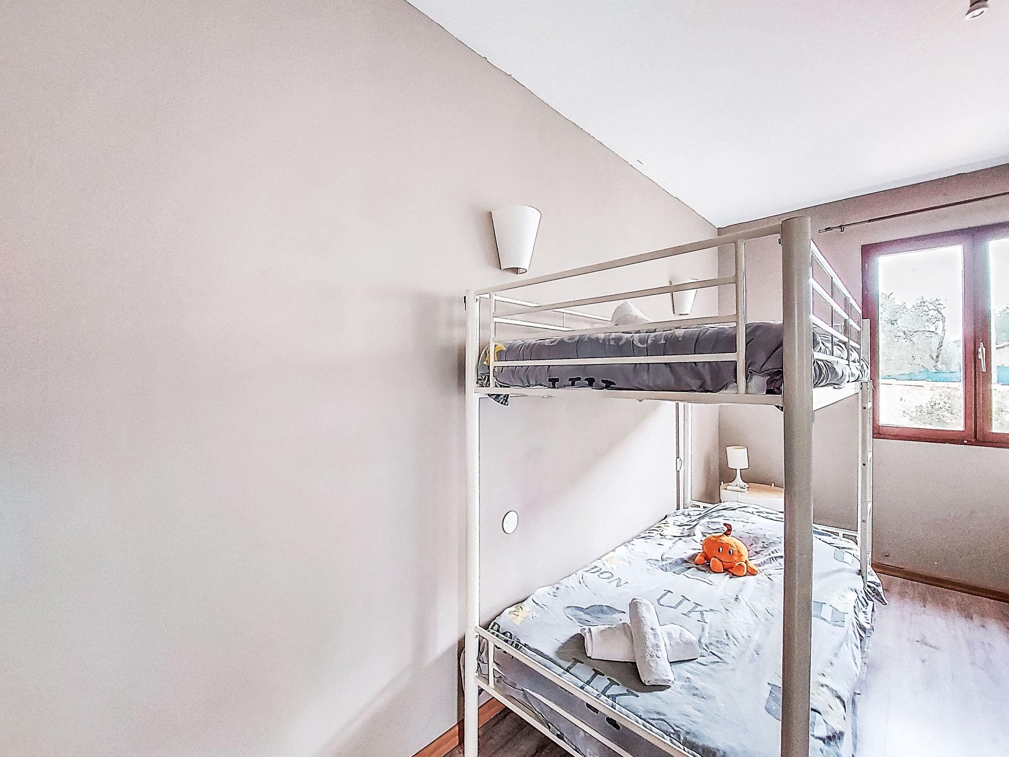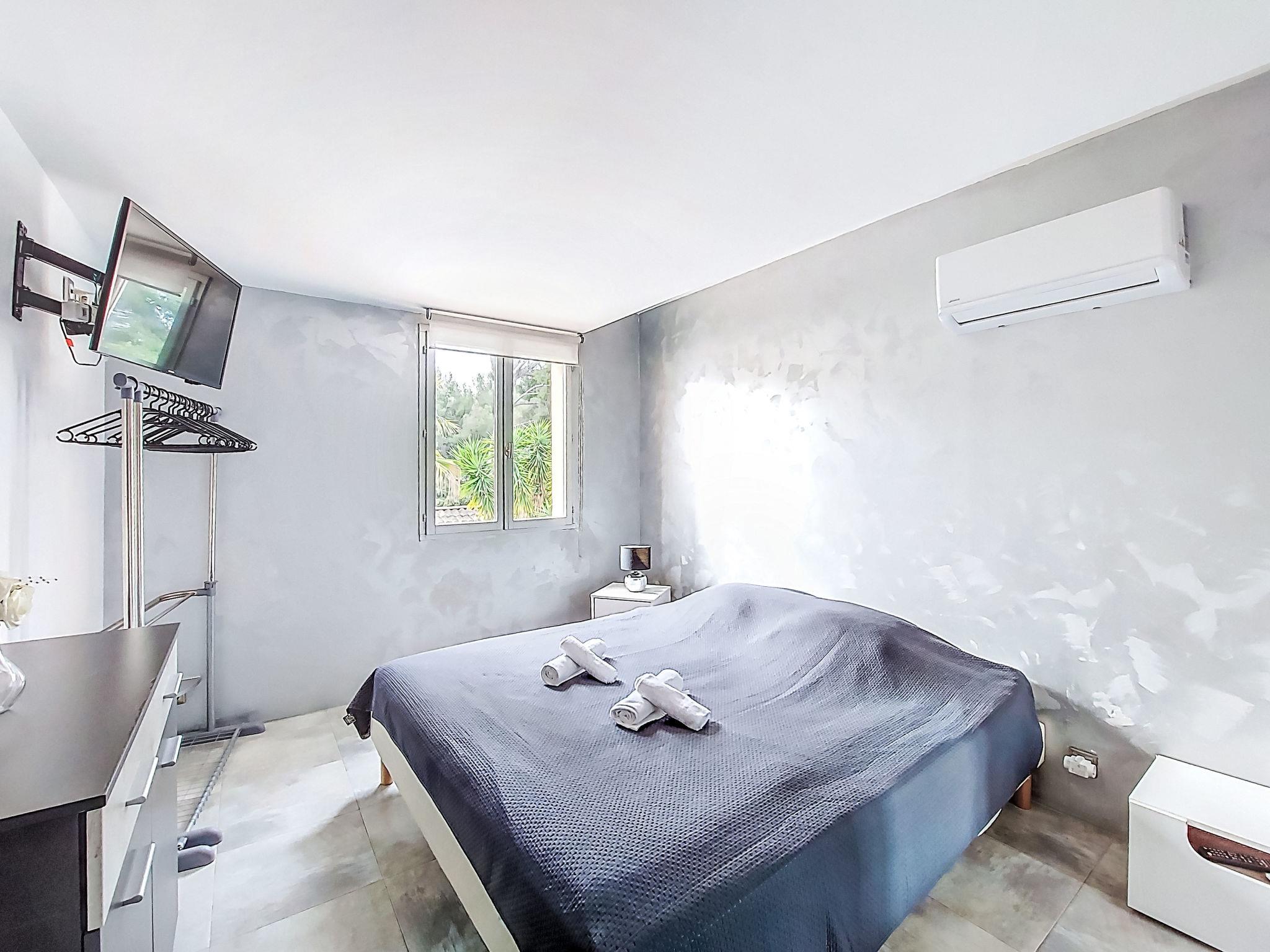 5-room house 130 m2 on 2 levels. Comfortable and beautiful furnishings: large living room with TV (flat screen), air conditioning. Exit to the terrace, to the swimming pool. Open kitchen (oven, dishwasher, 3 ceramic glass hob hotplates, toaster, kettle, microwave, freezer, electric coffee machine, Capsules for coffee machine (Nespresso) extra) with TV. Exit to the terrace. Sep. WC. Upper floor: 1 room with 1 french bed (140 cm, length 190 cm) with corner bath, TV and air conditioning. 1 room with 1 french bed (160 cm, length 200 cm), TV and air conditioning. 1 room with 1 x 2 bunk beds (90 cm, length 190 cm), air conditioning. Shower/WC. Terrace, south-west facing position. Terrace furniture, barbecue. Facilities: washing machine, dryer, iron. Internet (WiFi, free). Parking (fenced 2 cars). Please note: non-smoking house. TV only FR. Smoke alarm. Offer by a private individual according to Art. 155, IV of CGI. 83112000913PI