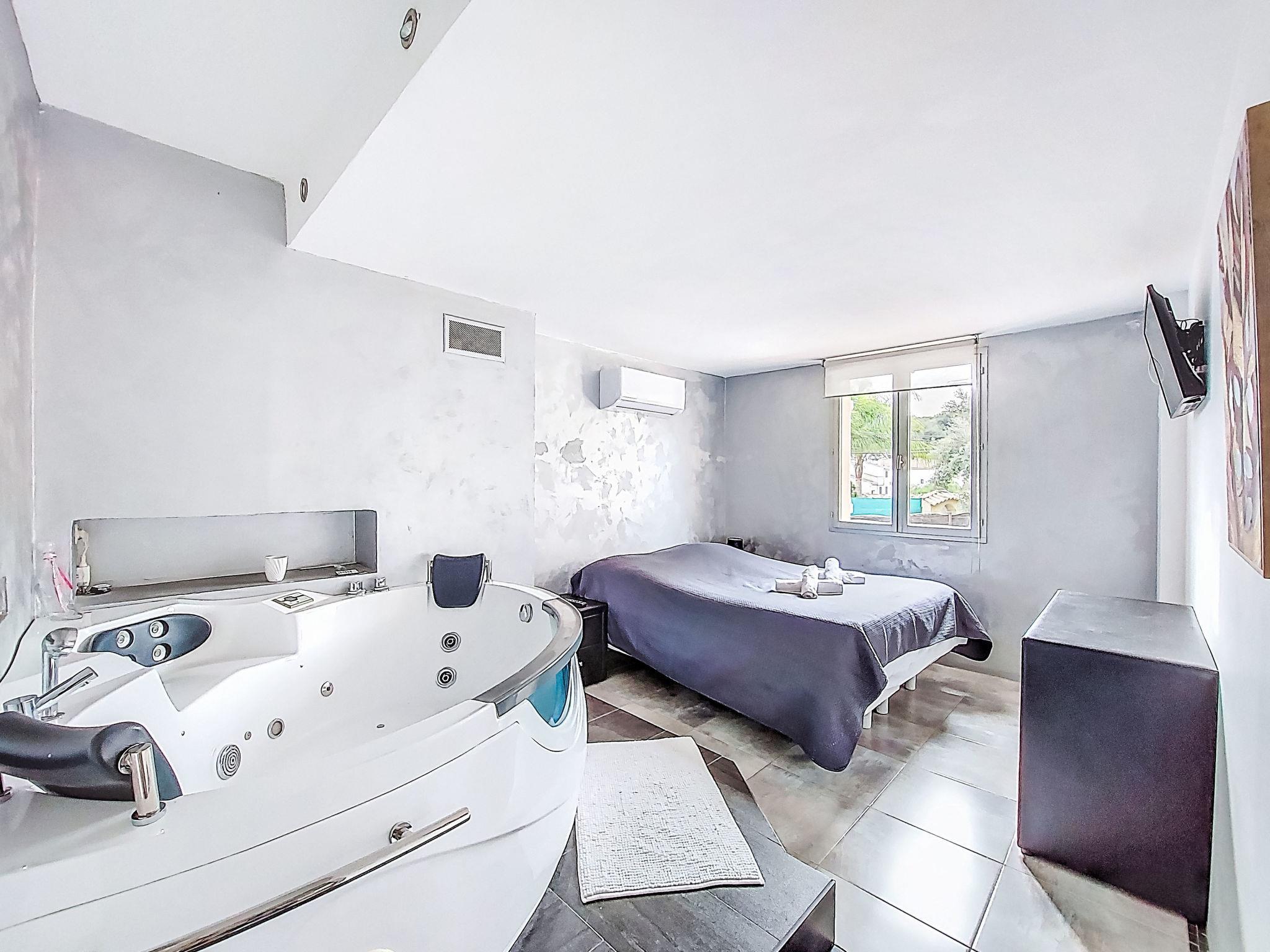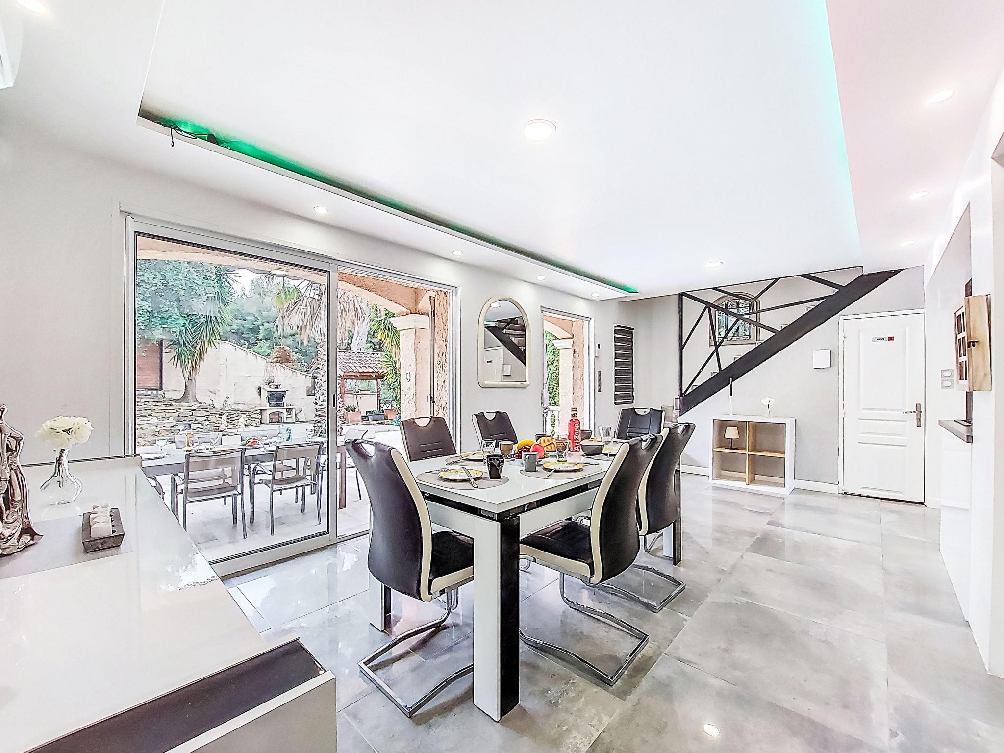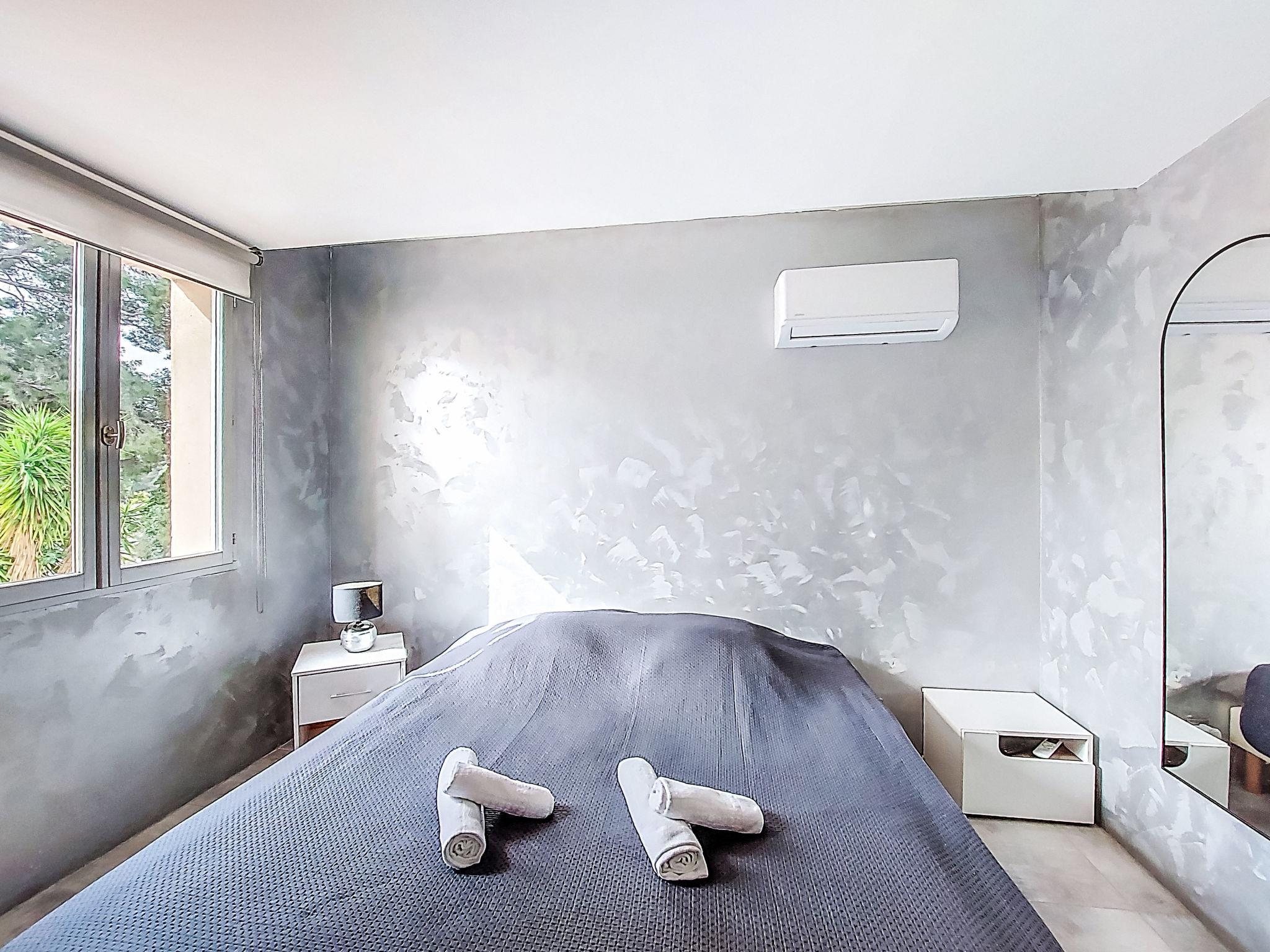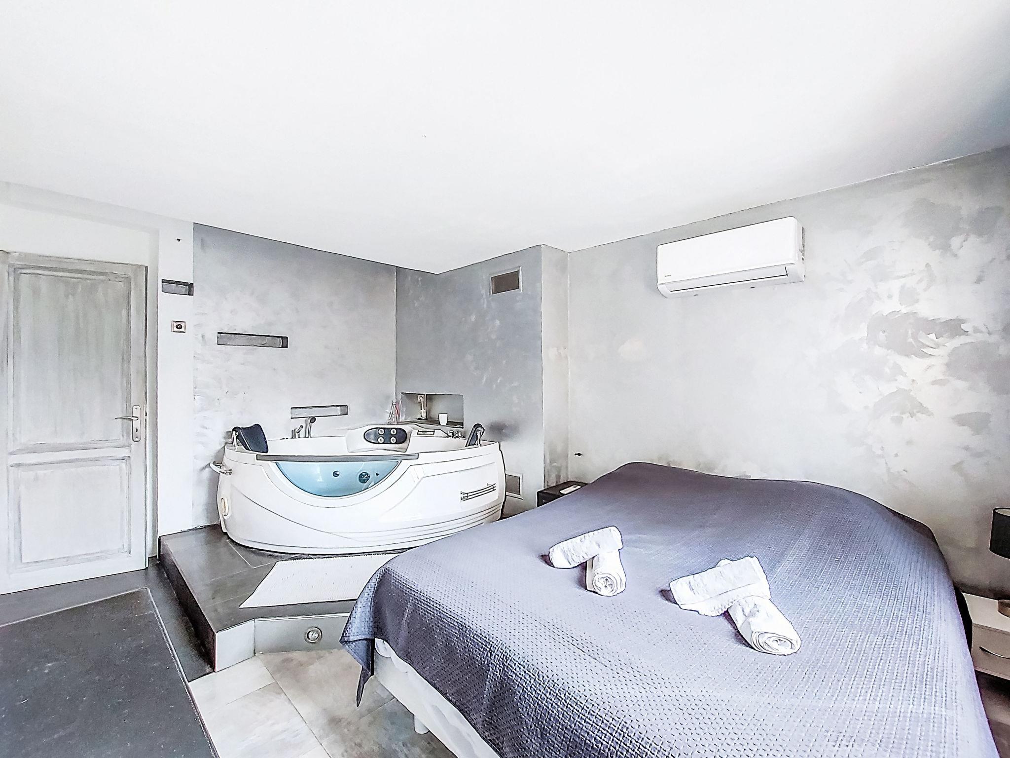 5-room house 130 m2 on 2 levels. Comfortable and beautiful furnishings: large living room with TV (flat screen), air conditioning. Exit to the terrace, to the swimming pool. Open kitchen (oven, dishwasher, 3 ceramic glass hob hotplates, toaster, kettle, microwave, freezer, electric coffee machine, Capsules for coffee machine (Nespresso) extra) with TV. Exit to the terrace. Sep. WC. Upper floor: 1 room with 1 french bed (140 cm, length 190 cm) with corner bath, TV and air conditioning. 1 room with 1 french bed (160 cm, length 200 cm), TV and air conditioning. 1 room with 1 x 2 bunk beds (90 cm, length 190 cm), air conditioning. Shower/WC. Terrace, south-west facing position. Terrace furniture, barbecue. Facilities: washing machine, dryer, iron. Internet (WiFi, free). Parking (fenced 2 cars). Please note: non-smoking house. TV only FR. Smoke alarm. Offer by a private individual according to Art. 155, IV of CGI. 83112000913PI