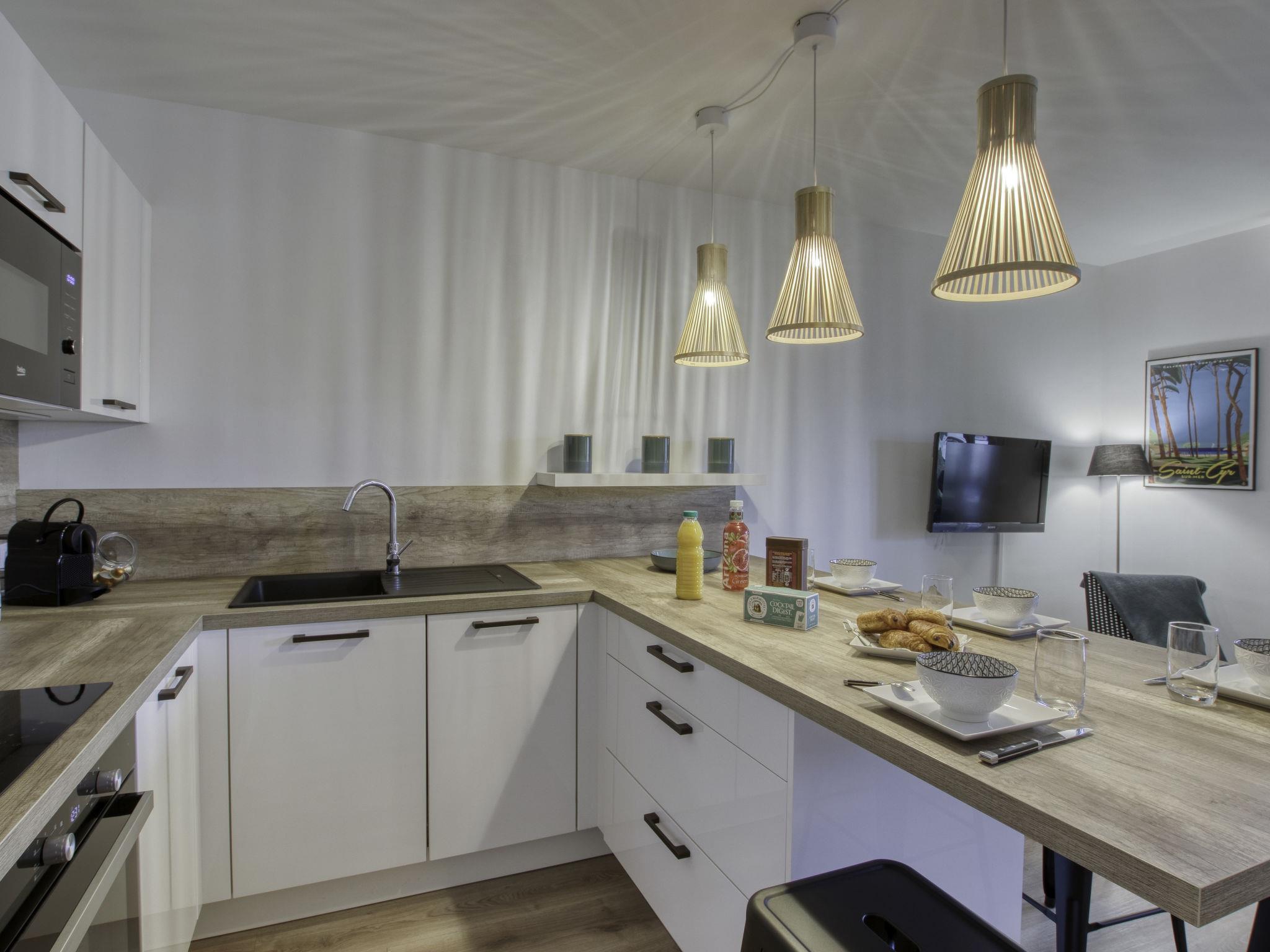 2-room apartment 37 m2 on 1st floor. Fully renovated in 2021, comfortable and beautiful furnishings: living/dining room with 1 double sofabed (140 cm, length 190 cm), TV (flat screen), air conditioning. Exit to the terrace. 1 room with 2 beds (90 cm, length 190 cm). Open kitchen (oven, dishwasher, 3 ceramic glass hob hotplates, toaster, kettle, microwave, electric coffee machine, Capsules for coffee machine (Nespresso + Filtre) extra). Shower, sep. WC. Forced-air heating. Terrace 7 m2, roofed, south-east facing position. Terrace furniture, electric barbecue. Facilities: washing machine, children's high chair, baby cot for up to 2 year olds. Internet (WiFi, extra). Parking at the house. Please note: TV only FR. Smoke alarm. Offer by a private individual according to Art. 155, IV of CGI. 83112000662FU
