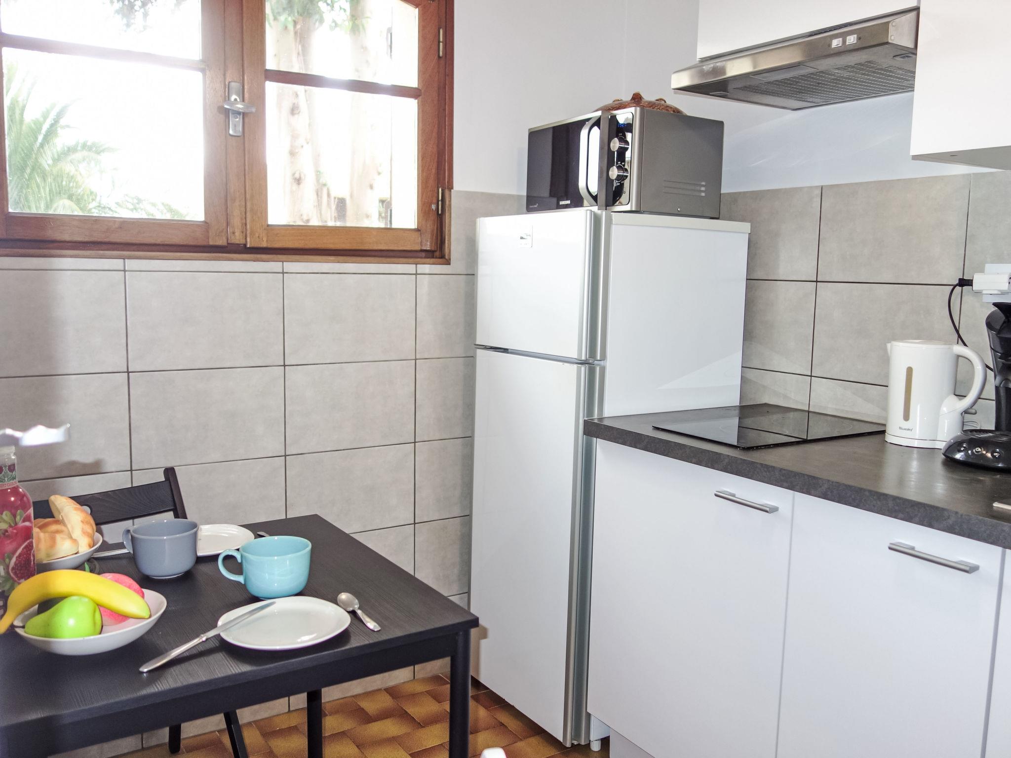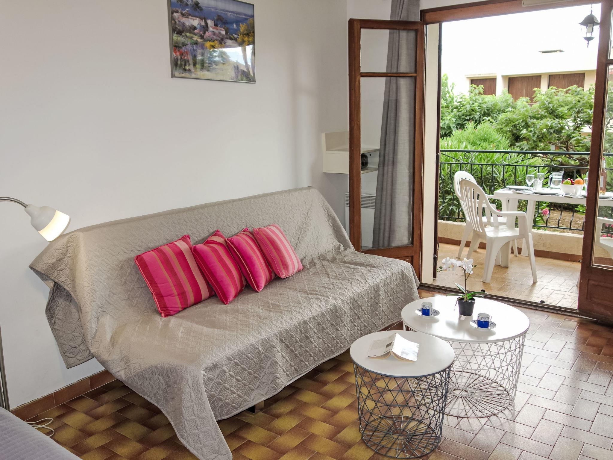 1-room apartment 28 m2, on the upper ground floor. Living room with 1 double sofabed (130 cm, length 190 cm), TV and air conditioning. Exit to the terrace. Kitchen (2 ceramic glass hob hotplates, toaster, kettle, freezer, electric coffee machine, Capsules for coffee machine (Senseo) extra, combination microwave) with dining table. Shower, sep. WC. Terrace 6 m2, roofed, south-west facing position. Terrace furniture, electric barbecue. Facilities: washing machine, iron, baby cot for up to 2 year olds. Internet (WiFi, extra). Parking. Please note: maximum 1 pet/ dog allowed. TV only FR. Smoke alarm. 83112000216GO