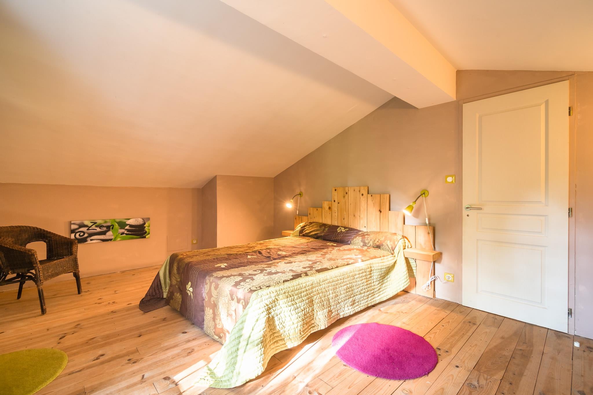 Dette charmerende stenhus byder dig velkommen i grønne omgivelser i katharernes land. Dette skønne feriehus ligger i udkanten af landsbyen St Denis, 20 km fra Carcassonne, i Aude. Det er roligt beliggende og ideel til ferie med familie eller venner. Omkring landsbyen St Denis, på de sydlige skråninger af Montagne Noire, kan du nyde at cykle og gå. Besøg de mange søer og floder, vinmarkerne i Cabardès, katharernes slotte, de traditionelle markeder (Revel, Carcassonne) og de imponerende huler (Limousis, Cabrespine). Canyoning er en af mulighederne i Montagne Noire. Tag en rundtur i byen og slottet Carcassonne, besøg et destilleri af æteriske olier i Castelnaudary (22 km), tag en pause i fritidscentret Étangs de Saïx (25 km) og tag på rafting på floden Aude i Alet - les-Bains (40 km). Fra terrassen i skyggen af pergolaen kan du fuldt ud nyde udsigten over Pyrenæerne. Haven er indhegnet og udstyret med en grill, komfortable havemøbler til 8 personer, en privat swimmingpool på 9 x 4,5 (sikret af et hegn) og en gynge til børnene.