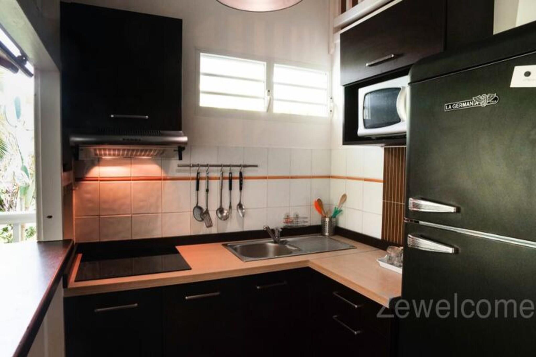 This charming Creole bungalow, nestled within a lush tropical park, offers a peaceful retreat with access to a shared swimming pool. It features a mezzanine bedroom with two double beds, plus a sofa bed in the living room, accommodating up to 6 guests. The property is pet-free and non-smoking, ensuring a tranquil atmosphere for all guests. A private terrace with a table and chairs allows you to dine al fresco, while a hammock and barbecue in the garden provide the perfect spot to relax and enjoy the trade winds. Ideally located in a residential area of Saint-François, this bungalow offers easy access to local attractions. The city center, with its shops, marina, casino, and golf course, is just minutes away by car. The beautiful beaches of Raisins Clairs, Anse à la Gourde, and Anse-Champagne are also nearby, only 5 minutes by car. For those seeking adventure, the marina offers water sports opportunities like surf lessons, while the iconic Pointe-des-Châteaux, with its stunning sea views, is just 10 minutes away. The fully equipped kitchen in the bungalow allows you to prepare meals with ease, and a convenient serving hatch lets you pass food directly to the terrace. Air conditioning ensures comfort throughout, and towels and bed linens are provided. The property also includes a water reserve system, ensuring a reliable water supply. With quality housekeeping and a dedicated concierge available for personalized services such as excursions and airport transfers, your stay will be stress-free and unforgettable.
