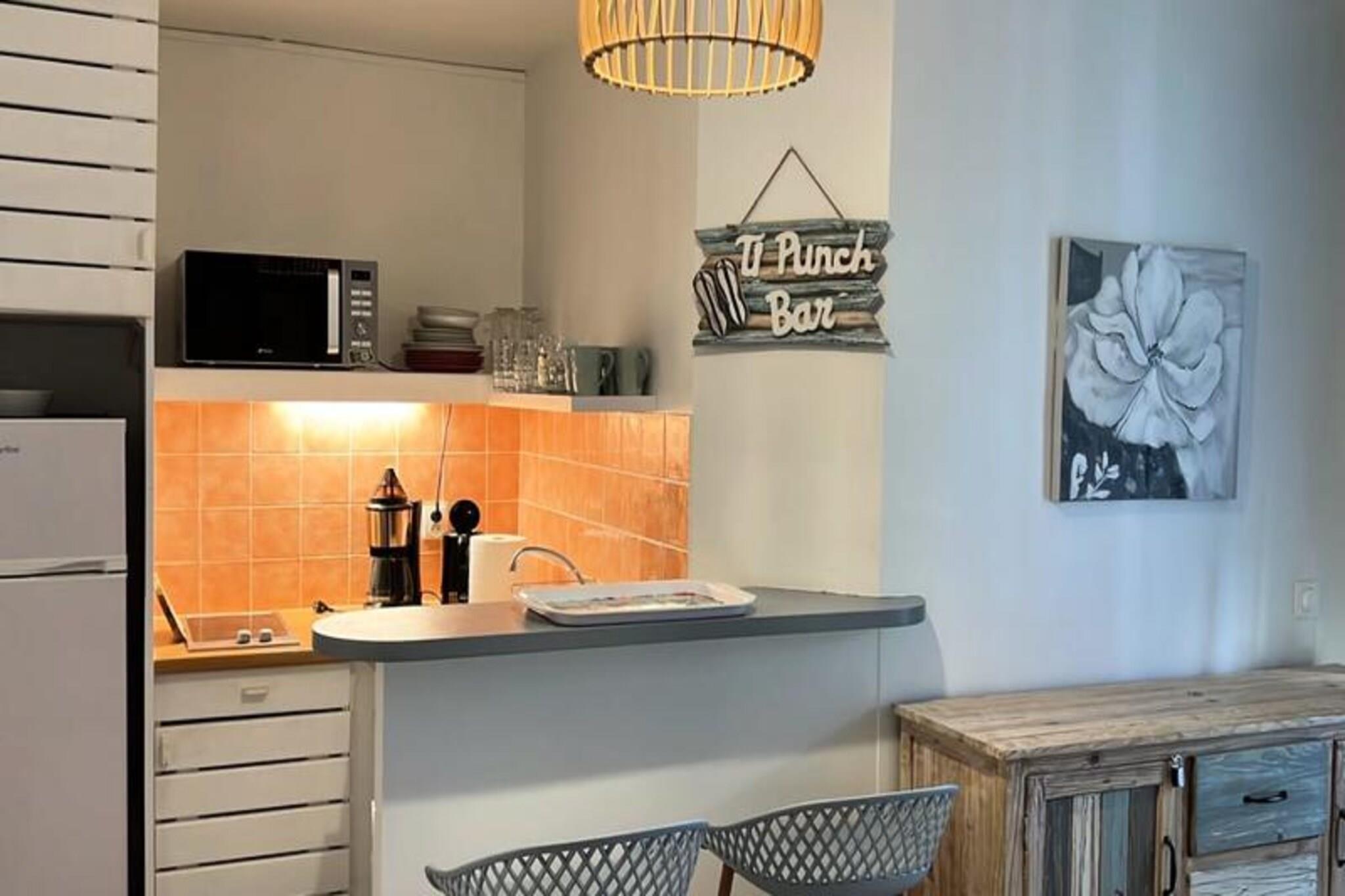 Denne charmerende 2-værelses lejlighed i en sikker bolig tilbyder et perfekt tropisk tilflugtssted, komplet med adgang til en strand, swimmingpool, restaurant og bar. Ideel til familier, den har plads til 2 voksne og 2 børn, og har et soveværelse med aircondition, en 160 cm seng og en sovesofa i stuen. Lejligheden indeholder badeværelse, toilet og dejlig altanterrasse. Kæledyr er ikke tilladt. Lejligheden ligger i hjertet af Saint-François i det østlige Guadeloupe, kun 45 minutters kørsel fra Pointe-à-Pitre lufthavn. Det er i gåafstand til supermarkeder, bagerier, apoteker og lokale markeder. Den berømte Marina de Saint-François byder på masser af restauranter, butikker og underholdning. Gæsterne kan også besøge Saint-François International Golf Course, Casino og Aerodrome, alle kun 5 minutter væk. Området er hjemsted for nogle af Guadeloupes bedste strande, herunder Raisins Clairs og Anse à la Gourde, kun 5 minutter i bil. Indvendigt har lejligheden tekøkken, aircondition, internetadgang og væsentlige faciliteter såsom håndklæder og sengetøj. Professionel rengøring sikrer et behageligt ophold. Gæsterne kan også nyde eksklusive concierge-tjenester, herunder booking af udflugter, leje af køretøjer og lufthavnstransport. Nyd en afslappende ferie med alle de bekvemmeligheder, du har brug for til et mindeværdigt ophold under den caribiske sol.