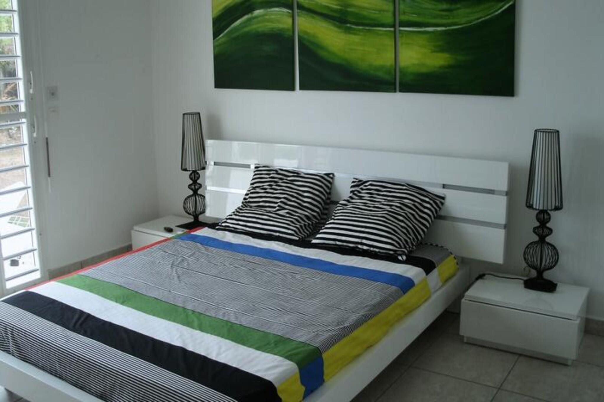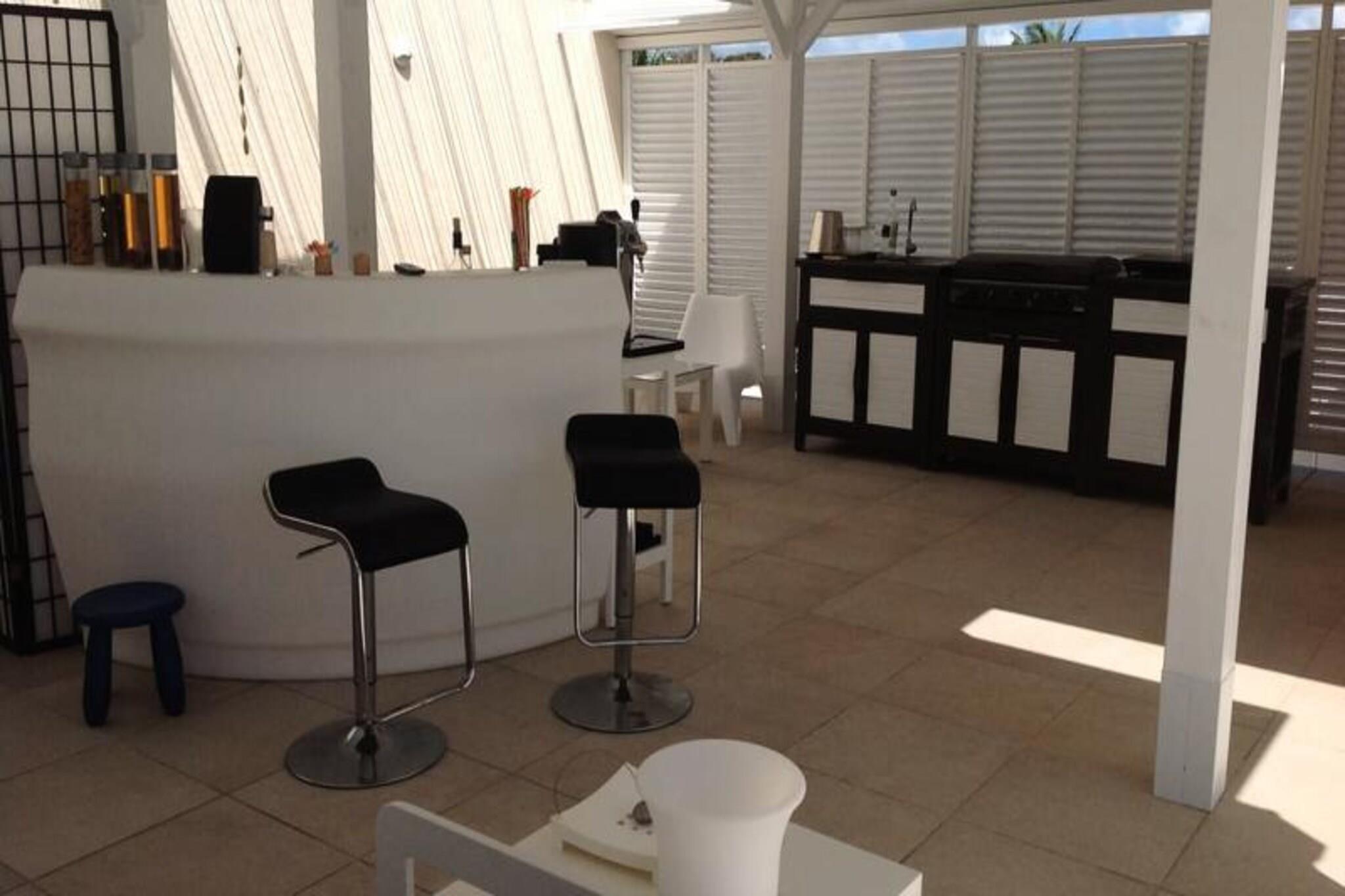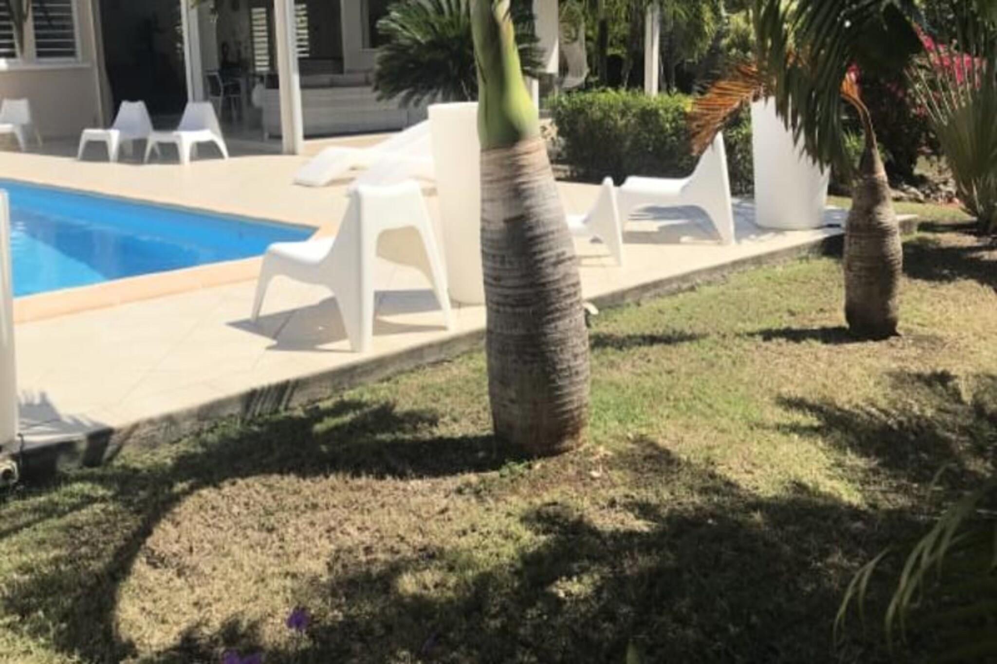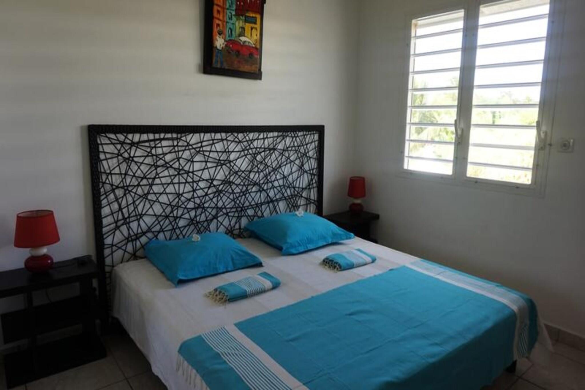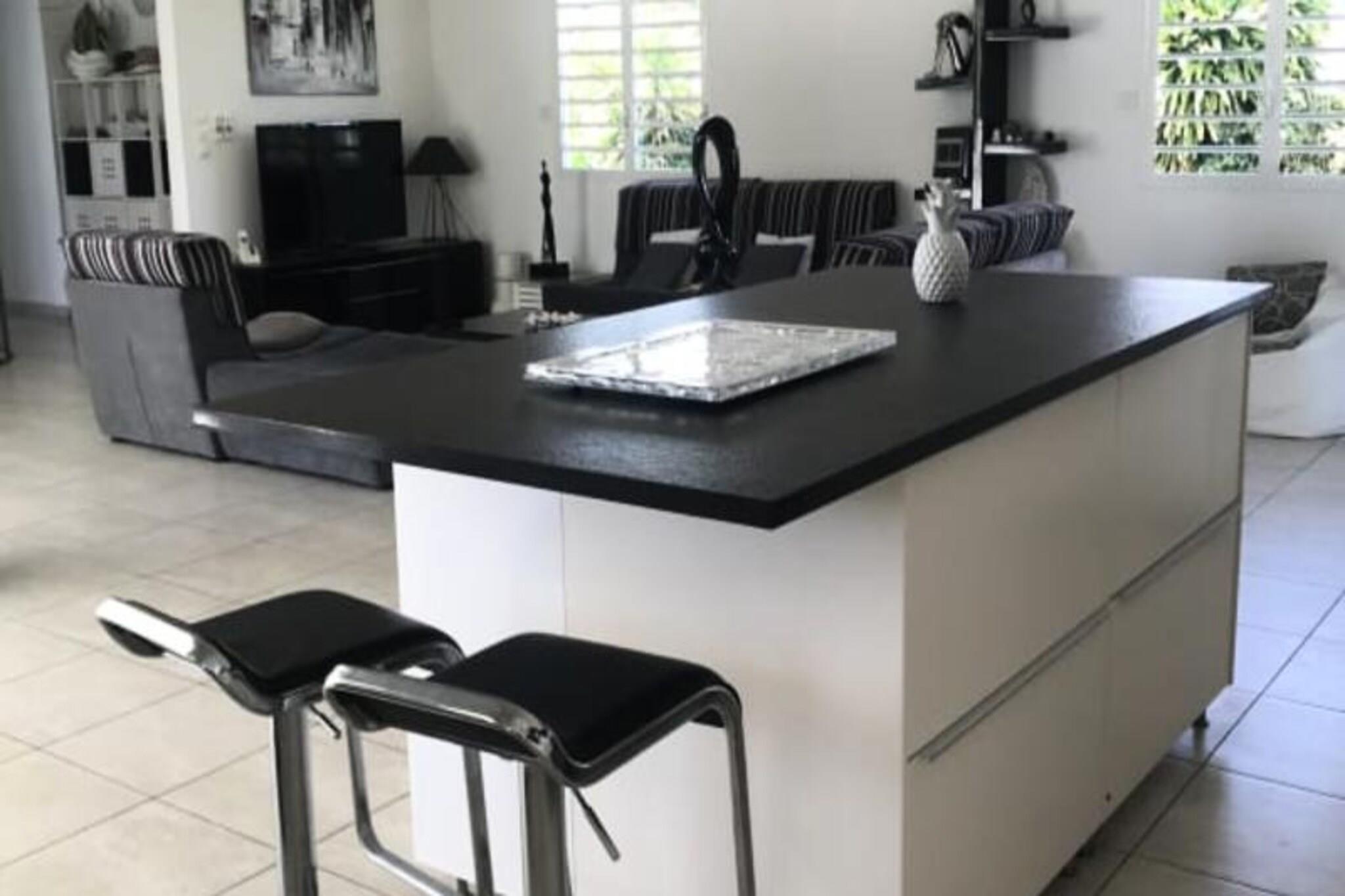 Denne luksuriøse villa er en sand tropisk oase, og byder på tre soveværelser med aircondition og sengetøj i topkvalitet (to 160 cm senge og to 90 cm senge), hvilket sikrer et afslappende ophold. Villaen indeholder to uberørte badeværelser og to toiletter. De rummelige udendørsarealer er ideelle til afslapning og har flere terrasser, to lounger og et udendørs køkken, hvilket gør det perfekt til udendørs spisning og socialt samvær. Du vil have adgang til en privat swimmingpool omgivet af frodige tropiske grønne områder, med masser af plads til at slappe af og nyde solen. Villaen ligger kun 10 minutters gang fra den smukke Anse des Rochers-strand og tilbyder nem adgang til lokale attraktioner. Centrum af Saint-François ligger kun 5 minutter væk i bil, hvor du finder supermarkeder, bagerier, markeder og andre vigtige faciliteter. Derudover er du i gåafstand til Saint-François Marina, der er kendt for sine restauranter, butikker og pulserende atmosfære. Villaen ligger også tæt på Saint-François International Golf Course, kasinoet og Aerodrome. Villaens interiør inkluderer et fuldt udstyret køkken, både indendørs og udendørs, med kvalitetsapparater og et ventilationssystem for maksimal komfort. Et vandreservesystem sikrer, at du altid er forsynet med vand. Ejendommen er udstyret med højhastighedsinternet, og dit ophold inkluderer rengøring før og efter dit besøg. En dedikeret concierge er tilgængelig for at imødekomme dine behov og hjælpe med udflugter, leje af køretøjer og særlige ønsker, hvilket sikrer et personligt og enestående ophold.