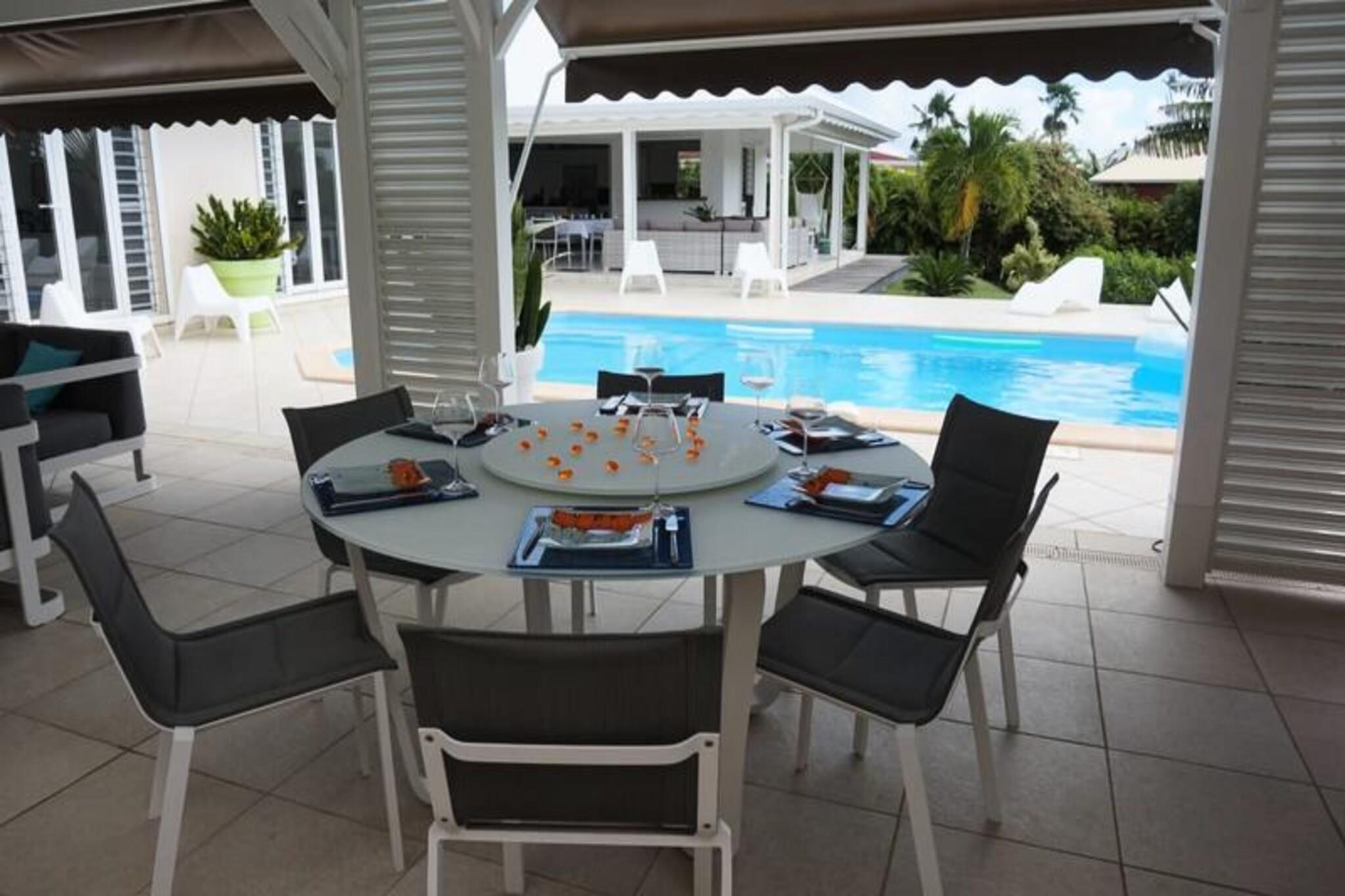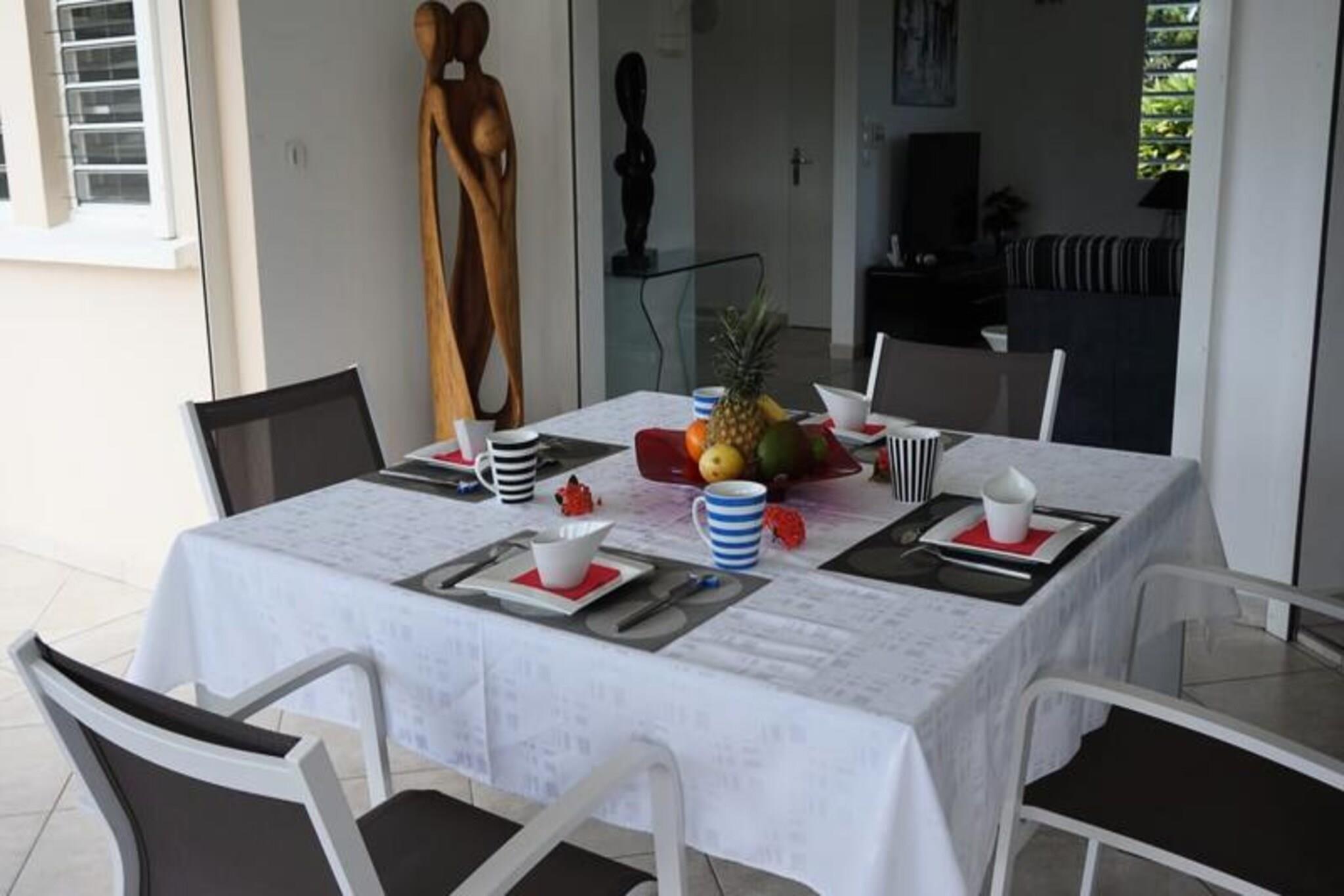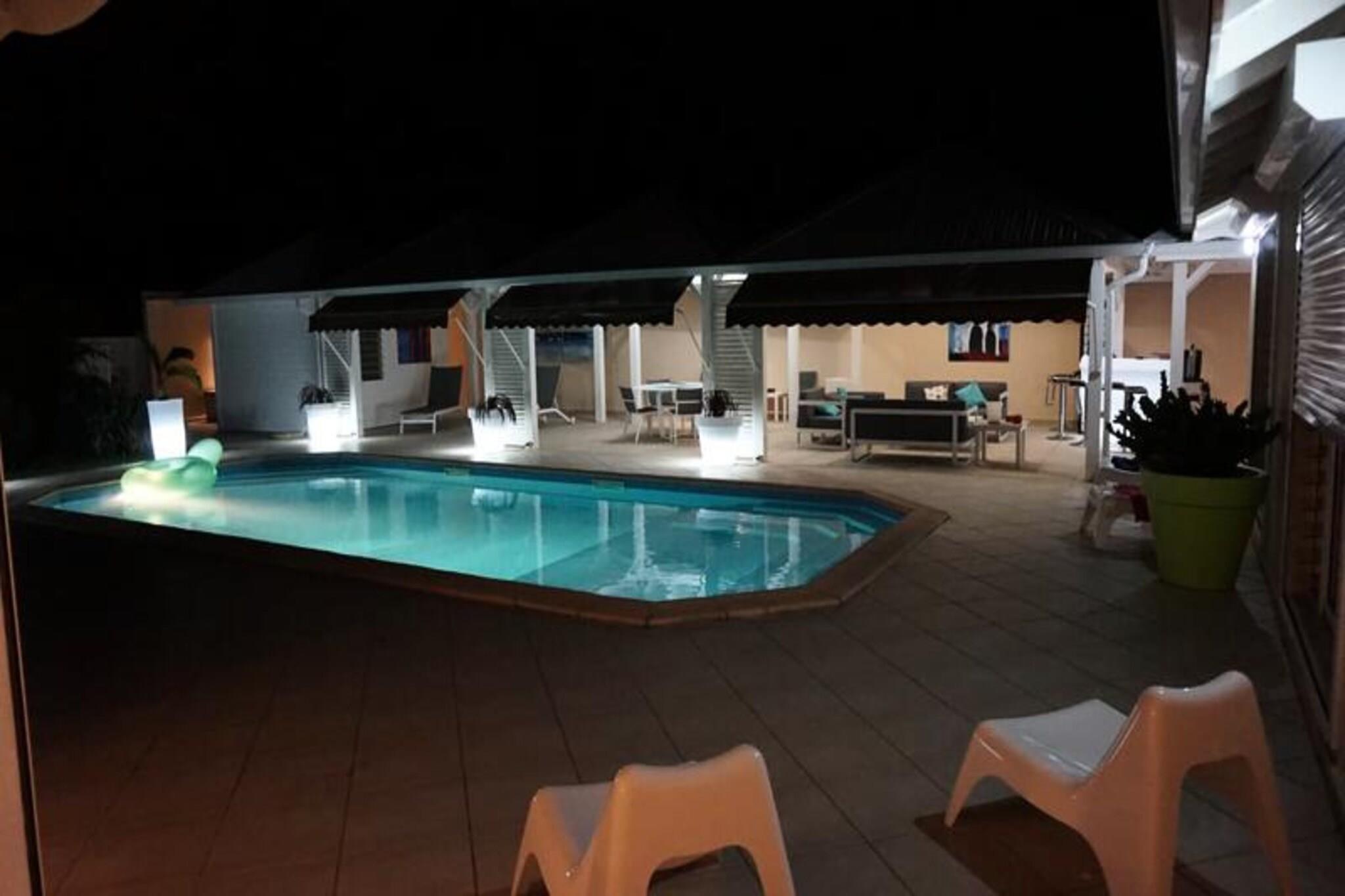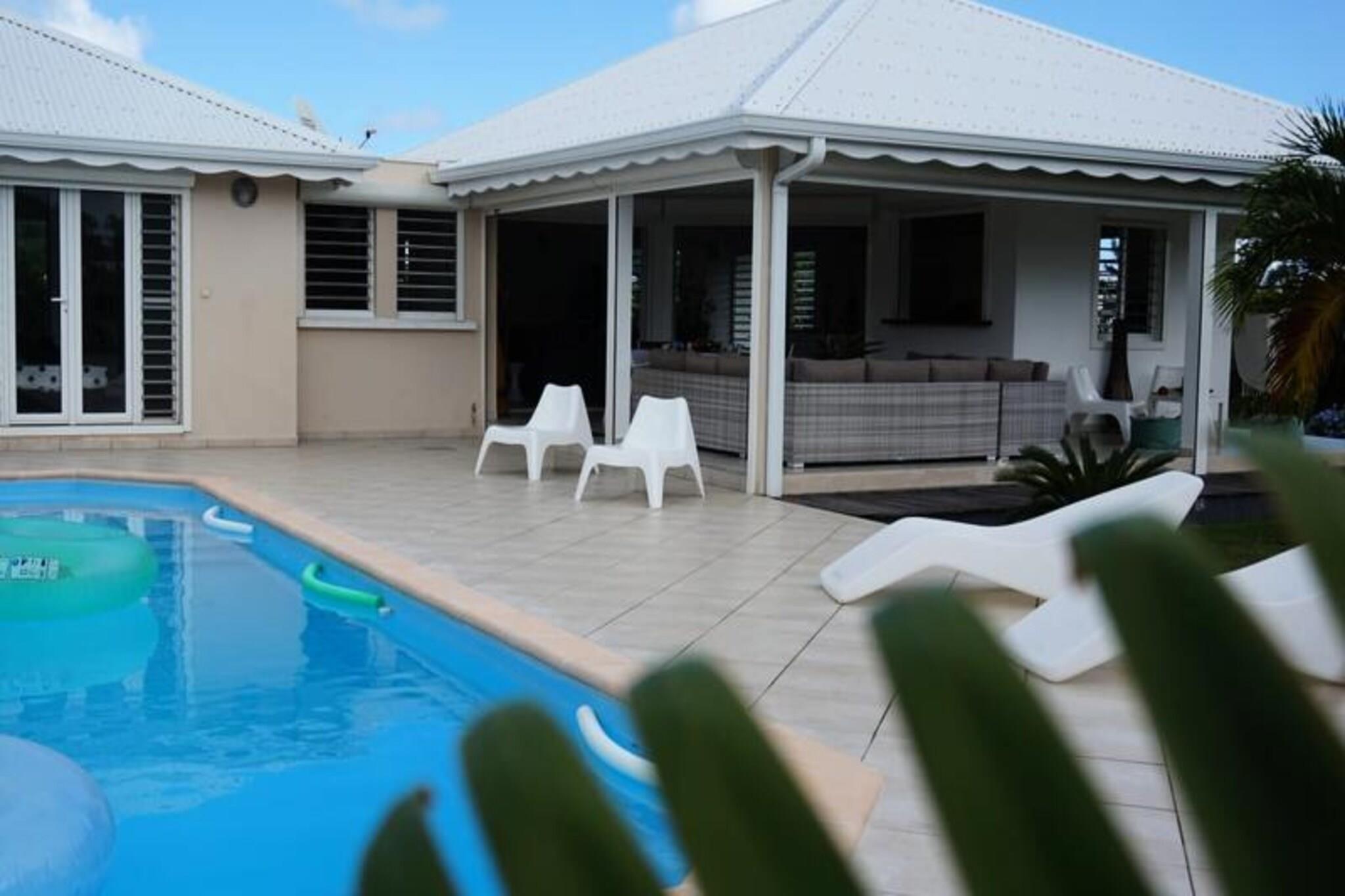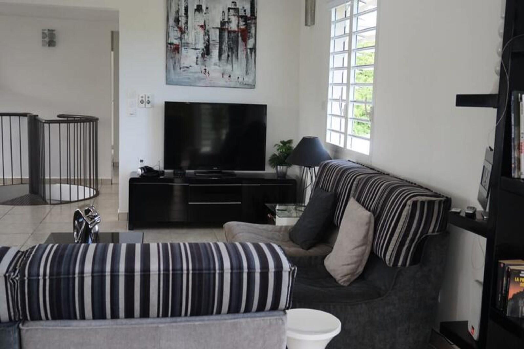 Denne luksuriøse villa er en sand tropisk oase, og byder på tre soveværelser med aircondition og sengetøj i topkvalitet (to 160 cm senge og to 90 cm senge), hvilket sikrer et afslappende ophold. Villaen indeholder to uberørte badeværelser og to toiletter. De rummelige udendørsarealer er ideelle til afslapning og har flere terrasser, to lounger og et udendørs køkken, hvilket gør det perfekt til udendørs spisning og socialt samvær. Du vil have adgang til en privat swimmingpool omgivet af frodige tropiske grønne områder, med masser af plads til at slappe af og nyde solen. Villaen ligger kun 10 minutters gang fra den smukke Anse des Rochers-strand og tilbyder nem adgang til lokale attraktioner. Centrum af Saint-François ligger kun 5 minutter væk i bil, hvor du finder supermarkeder, bagerier, markeder og andre vigtige faciliteter. Derudover er du i gåafstand til Saint-François Marina, der er kendt for sine restauranter, butikker og pulserende atmosfære. Villaen ligger også tæt på Saint-François International Golf Course, kasinoet og Aerodrome. Villaens interiør inkluderer et fuldt udstyret køkken, både indendørs og udendørs, med kvalitetsapparater og et ventilationssystem for maksimal komfort. Et vandreservesystem sikrer, at du altid er forsynet med vand. Ejendommen er udstyret med højhastighedsinternet, og dit ophold inkluderer rengøring før og efter dit besøg. En dedikeret concierge er tilgængelig for at imødekomme dine behov og hjælpe med udflugter, leje af køretøjer og særlige ønsker, hvilket sikrer et personligt og enestående ophold.