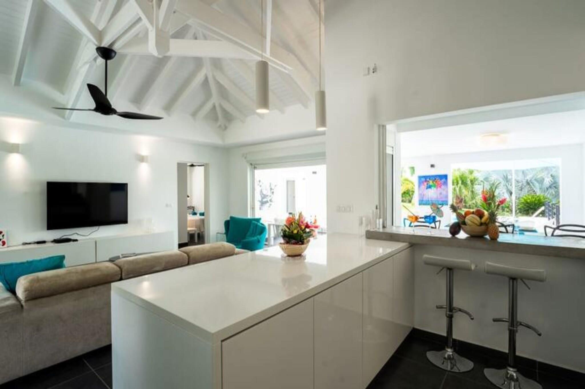 Denne h?jtst?ende villa i Saint-Fran?ois tilbyder en fredfyldt flugt med en 4-stjernet klassificering. Perfekt til familier eller par, det har tre sovev?relser med aircondition, inklusive en mastersuite med eget badev?relse. De to andre sovev?relser deler et rummeligt badev?relse og separat toilet. Villaen har en stor terrasse med udsigt over en tropisk park, en opvarmet swimmingpool med et strandterrasse og en harmonisk blanding af moderne og caribisk arkitektur, der sikrer privatliv og afslapning i rolige omgivelser. Villaen er bekvemt beliggende i Hauts-distriktet, f? minutter fra Saint-Fran?ois centrum og Pointe-?-Pitre lufthavn. N?rliggende attraktioner omfatter den internationale golfbane, Marina de Saint-Fran?ois og pulserende markeder med frisk fisk og krydderier. De smukke strande Raisins Clairs, Anse ? la Gourde og Anse-Champagne ligger kun en kort k?retur v?k. Vandsportsentusiaster kan nyde surfing og vingefoliering, mens Pointe-des-Ch?teaux byder p? en betagende udsigt og et ikonisk vartegn. Villaens moderne k?kken ?bner til et rummeligt opholdsomr?de, perfekt til spisning og hygge. Faciliteterne inkluderer h?jhastighedsinternet, aircondition, luksussenget?j og h?ndkl?der. G?ster bydes velkommen med forfriskninger, en dedikeret concierge og eksklusive tjenester s?som udflugter og biludlejning. Et vandreservesystem sikrer komfort, mens strenge regler opretholder et fredeligt milj?. Kvalitetshusholdning fuldender dette luksusophold.