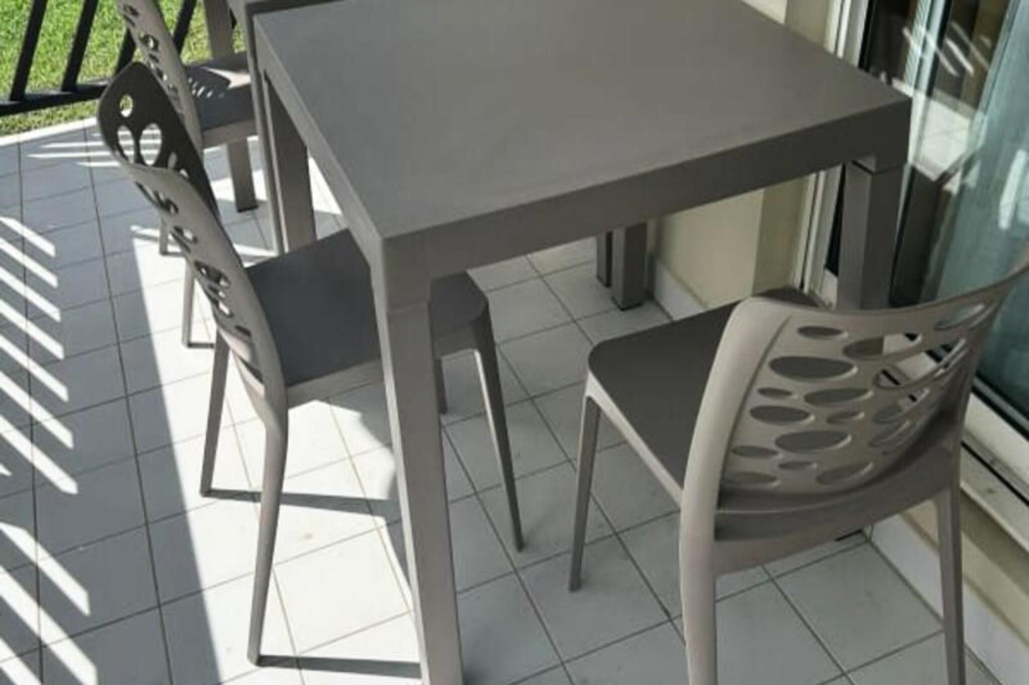 Denne renoverede lejlighed er beliggende i en sikker bolig i tropisk stil med direkte adgang til stranden, en swimmingpool, en restaurant og en bar. Den har to sovev?relser med aircondition - det ene med en 160 cm seng og det andet med en 140 cm seng. I stuen er der sovesofa til to b?rn, og lejligheden byder ogs? p? badev?relse med toilet. Lejligheden er ikke k?ledyrsvenlig og kr?ver et depositum p? EURO500 for booking. Ejendommen er beliggende i hjertet af Saint-Fran?ois, kun 5 minutter fra lystb?dehavnen, hvor g?sterne kan nyde et udvalg af restauranter og butikker. Saint-Fran?ois International Golf Course, Casino og Aerodrome ligger inden for g?afstand. N?rliggende strande, herunder Raisins Clairs og Anse ? la Gourde, er perfekte til afslapning og vandsport. Den ikoniske Pointe-des-Ch?teaux og ?en D?sirade er ogs? kun en kort k?retur v?k. Lejligheden er udstyret med et lille k?kken ?bent til stuen, som byder p? alt det n?dvendige for et behageligt ophold. En privat terrasse giver g?sterne mulighed for at nyde morgenmad eller aperitiffer, mens de nyder den tropiske luft. Yderligere faciliteter inkluderer Wi-Fi, aircondition, h?ndkl?der, senget?j og en babyseng efter anmodning. Kvalitetsreng?ring leveres f?r og efter hvert ophold.