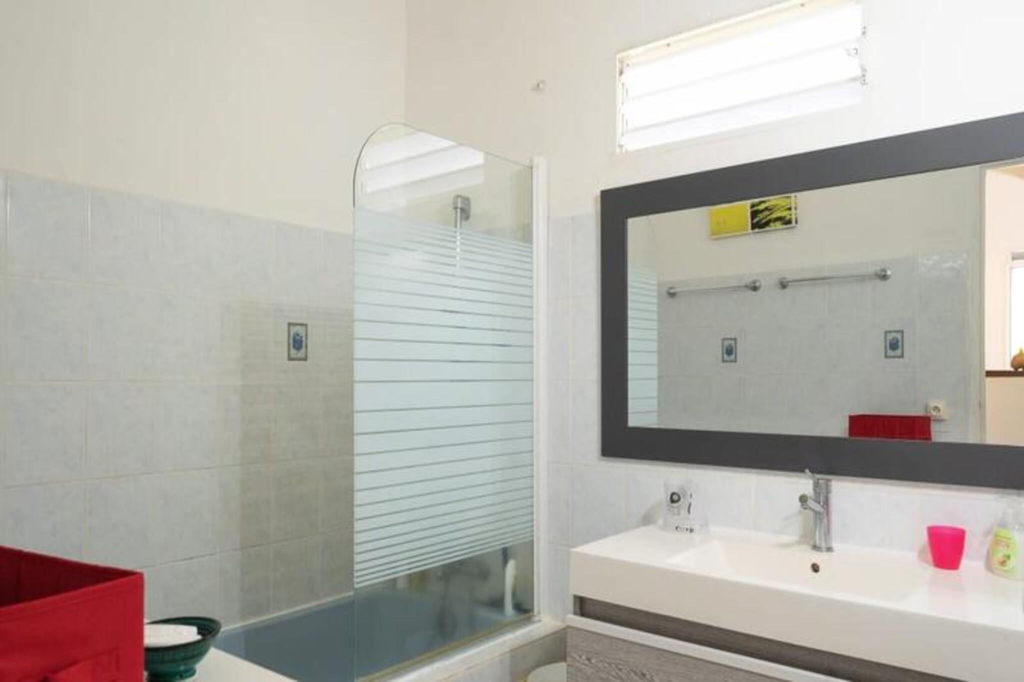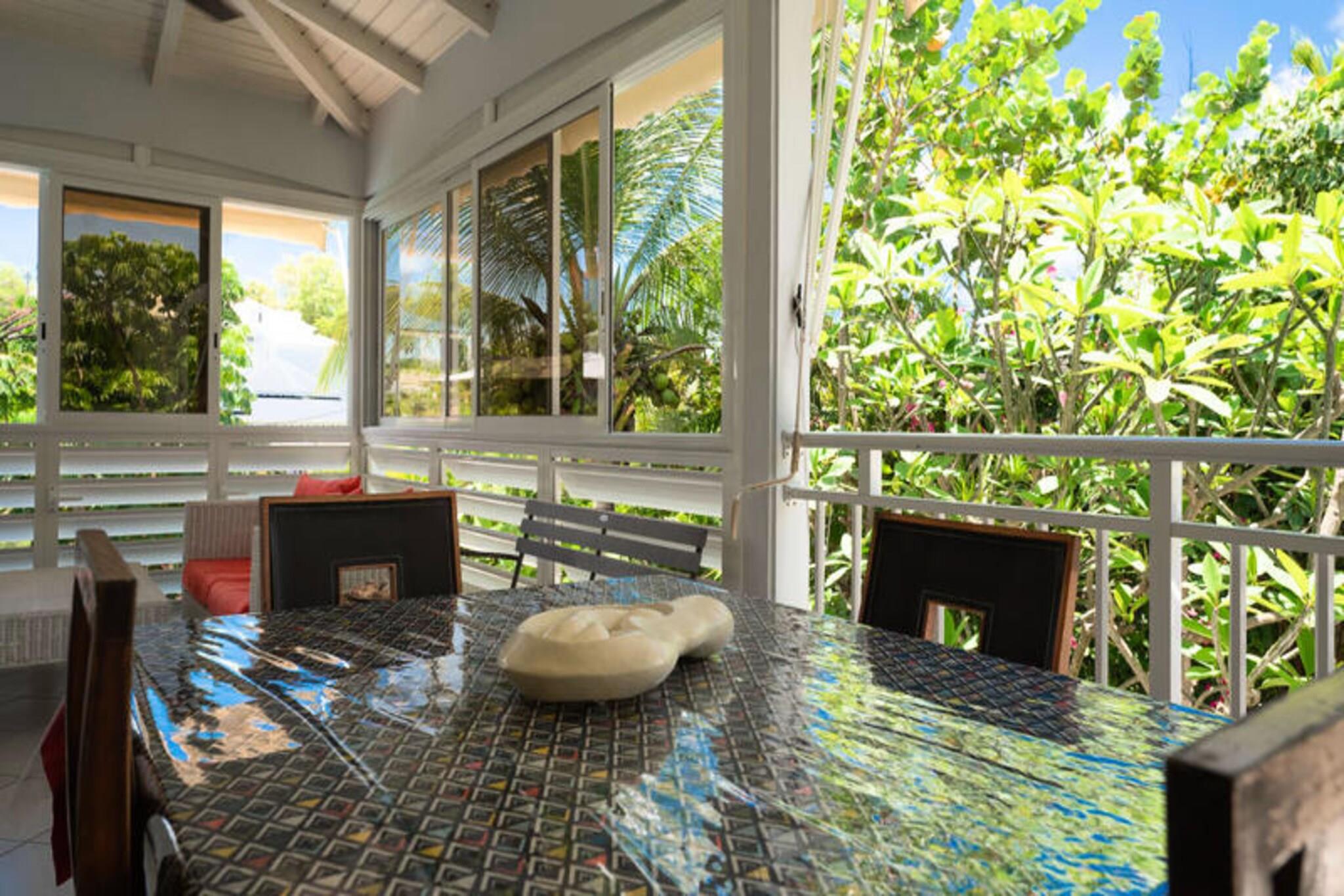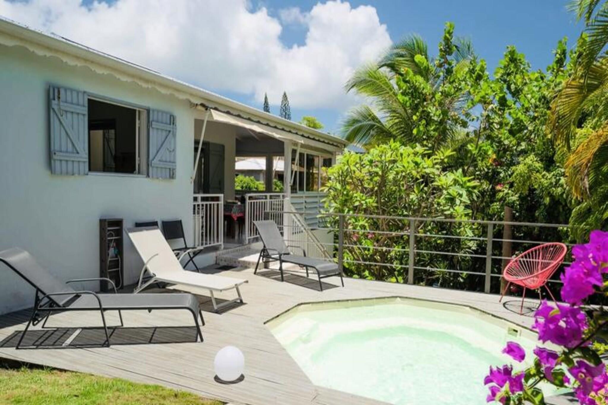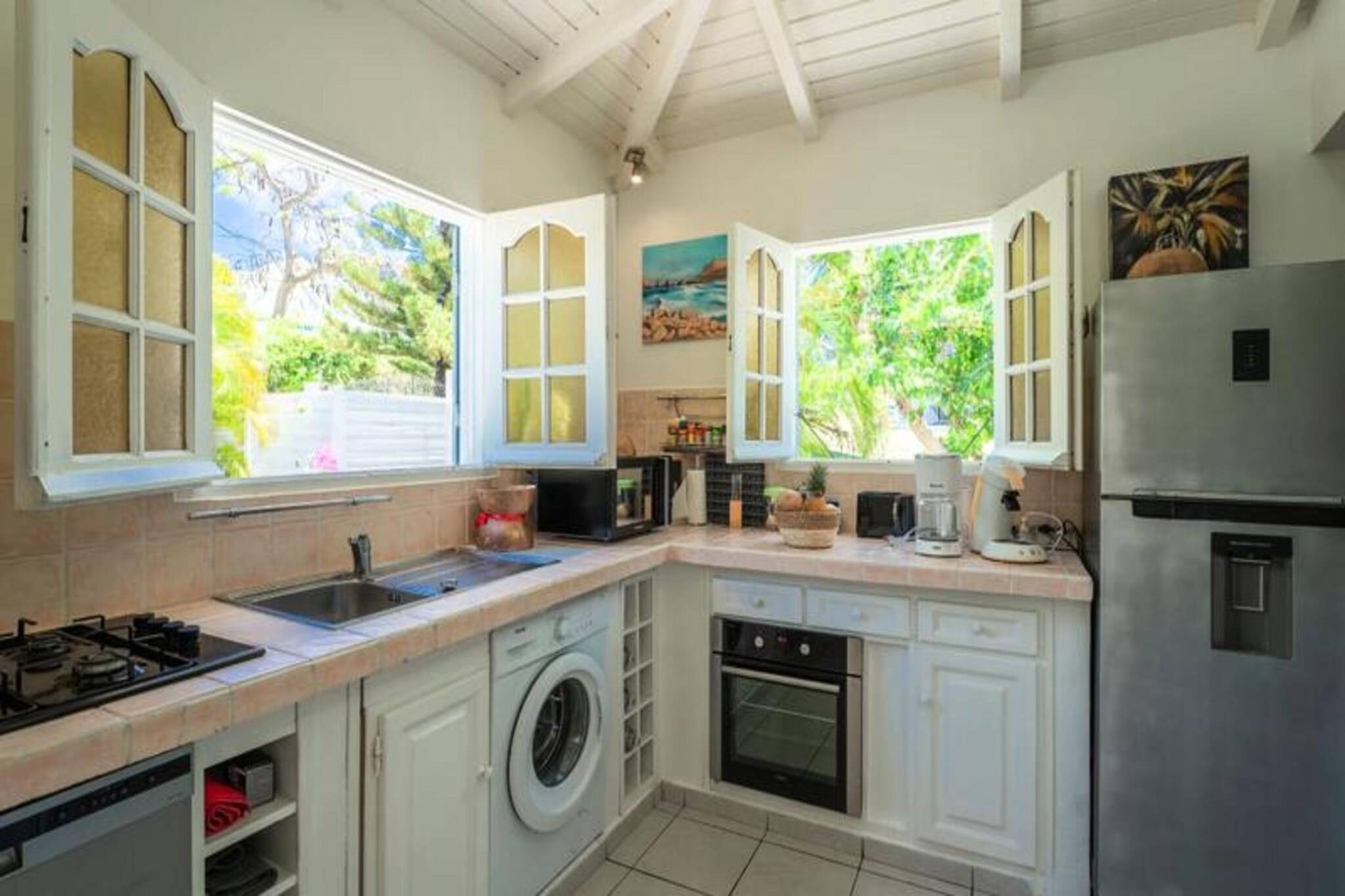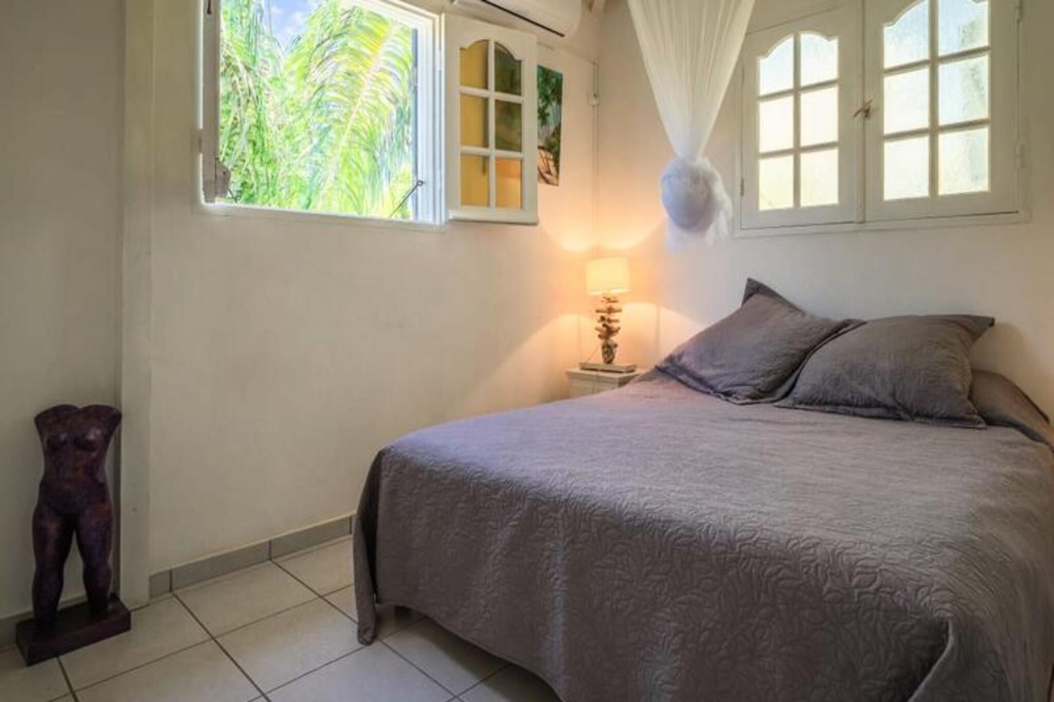 Denne charmerende villa tilbyder et fredeligt oase med 2 soveværelser med aircondition, perfekt til et afslappende ophold. Den rummelige opholdsstue har et åbent køkken og et lyst badeværelse. Det ene soveværelse har 2 enkeltsenge (90 cm hver), mens det andet har en dobbeltseng (160 cm). Der er også et venligt toilet. Villaen er kæledyrsvenlig og har privat adgang med en 3x3 ottekantet swimmingpool, ideel til afkøling. Villaen er beliggende i det rolige område i Saint-François, kun 5 minutter fra byens centrum, hvor du finder vigtige faciliteter såsom et supermarked, bageri og apotek. Villaen ligger tæt på nogle af Guadeloupes smukkeste strande, såsom Raisins Clairs Beach og Anse à la Gourde, begge kun 5 minutter væk. Du vil også være i nærheden af ??Saint-François Marina, den internationale golfbane og forskellige restauranter, der tilbyder lokale retter. Villaen har et fuldt udstyret køkken, aircondition i alle værelser og et vandreservesystem for at sikre kontinuerlig forsyning. Håndklæder og sengetøj er inkluderet. Med kvalitets rengøringstjenester før og efter dit ophold, og en concierge til rådighed for at hjælpe med udflugter, leje af køretøjer og mere, vil dit ophold være glat og behageligt.