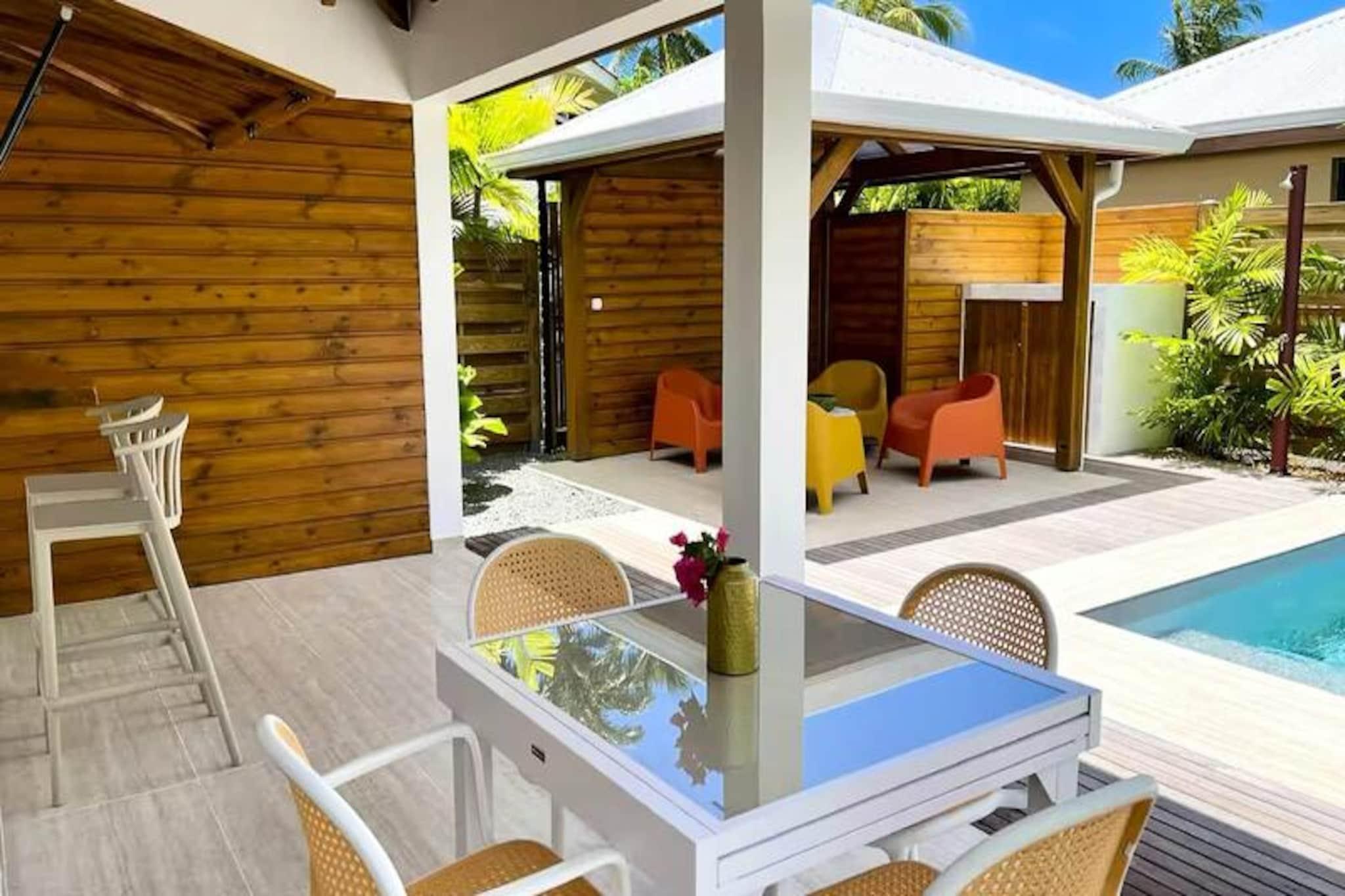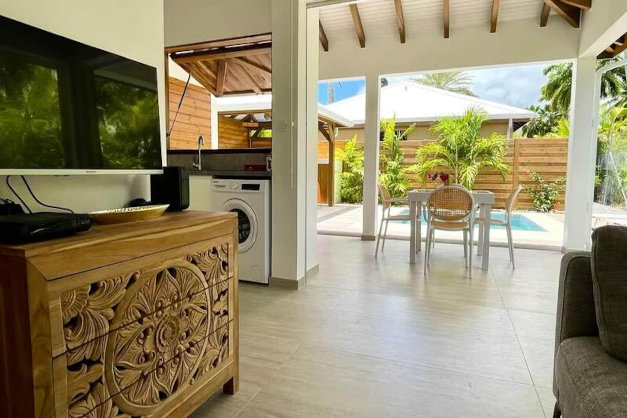 I hjertet af det fredfyldte boligområde Saint-François inviterer Villa Ti'Kaz Bonheur dig til at opleve essensen af ??caribisk ro. Dette moderne tilflugtssted, beliggende på den maleriske ø Grande-Terre i Guadeloupe, tilbyder en perfekt blanding af komfort og elegance. Forestil dig at vågne op til den blide raslen af ??palmer og starte din dag med en forfriskende dukkert i din private, afsondrede pool, omgivet af frodig tropisk vegetation. Uanset om du rejser med familie eller venner, lover denne villa en oase af afslapning og uforglemmelige minder. Indenfor finder du to rummelige soveværelser med aircondition, der begge har en blød queensize-seng designet til afslappende nætter efter en dag med udforskning. Det fuldt udstyrede køkken, komplet med stegeplade, inviterer dig til at tilberede dejlige måltider, mens den luftige stue, der køles af loftsventilatorer, giver det ideelle sted til at dele latter og historier. Villaens gennemtænkte design sikrer komfort i alle rum, med aircondition i hele hjemmet og endda i udendørsområderne, der sikrer et køligt tilflugtssted fra den varme caribiske sol. Træd udenfor for at opdage din private oase. Den glitrende pool indbyder til en forfriskende dukkert, mens den skyggefulde pavillon tilbyder et fredeligt sted at slappe af med en bog eller en tropisk cocktail. Kun 3 km væk finder du uberørte hvide sandstrande, perfekte til solbadning eller vandsport. Villaens førsteklasses beliggenhed placerer dig også i nærheden af ??den pulserende Saint-François Marina, hvor du kan udforske en række restauranter, butikker og lokale markeder. Golfentusiaster vil sætte pris på den nærliggende golfbane, og naturelskere vil blive betaget af det fantastiske udsigtspunkt Pointe-des-Châteaux, kun 15 minutters kørsel væk, der tilbyder panoramaudsigt over La Désirade-øen. Villa Ti'Kaz Bonheur er mere end bare et sted at bo; det er en invitation til at fordybe dig i Guadeloupes fortryllende skønhed. Med dedikeret concierge-service, en velkomstcocktail og skræddersyede anbefalinger til udflugter og billeje er hver eneste detalje designet til at gøre dit ophold ekstraordinært. Flygt til dette tropiske paradis og skab minder, der vil vare hele livet.