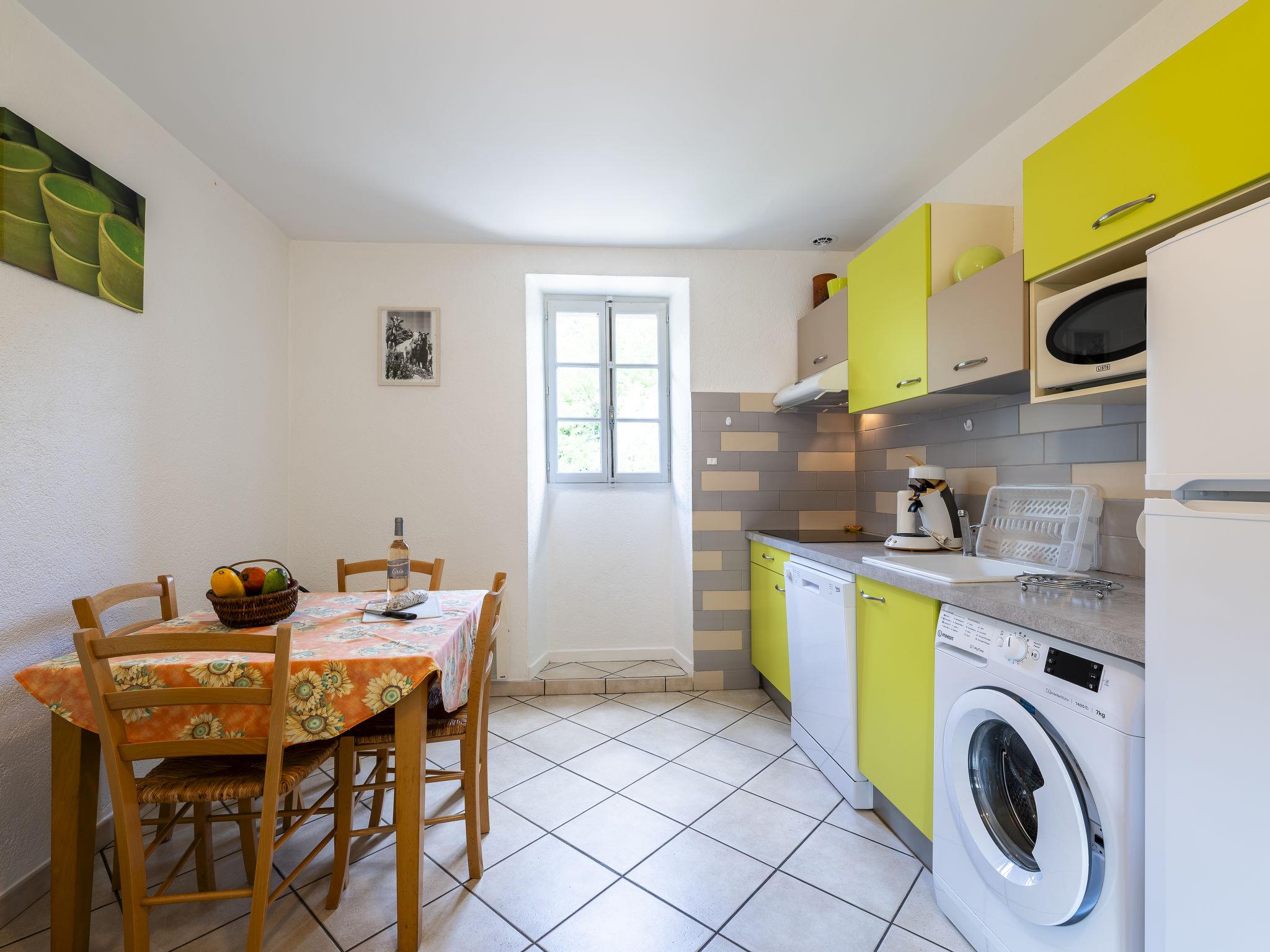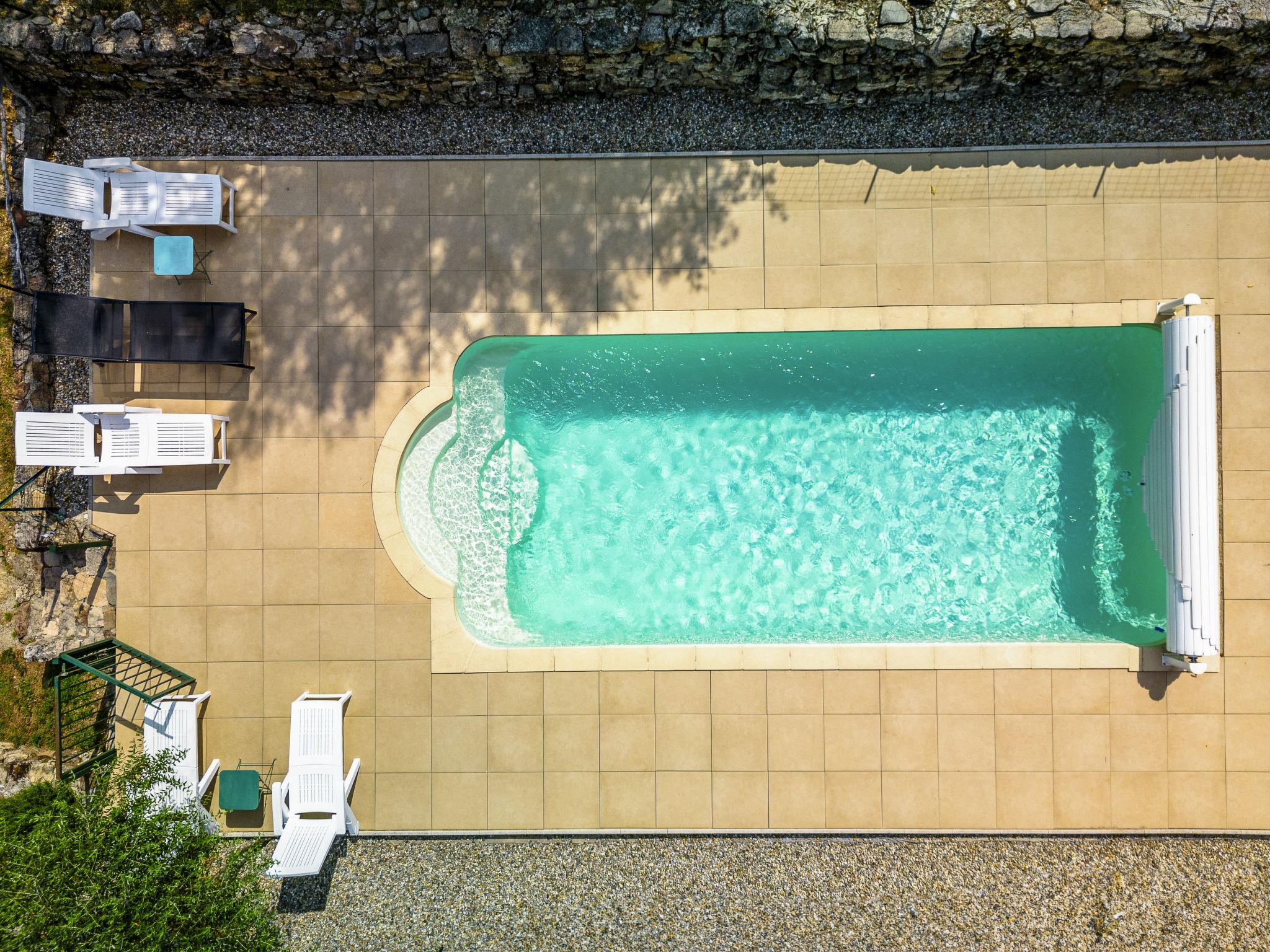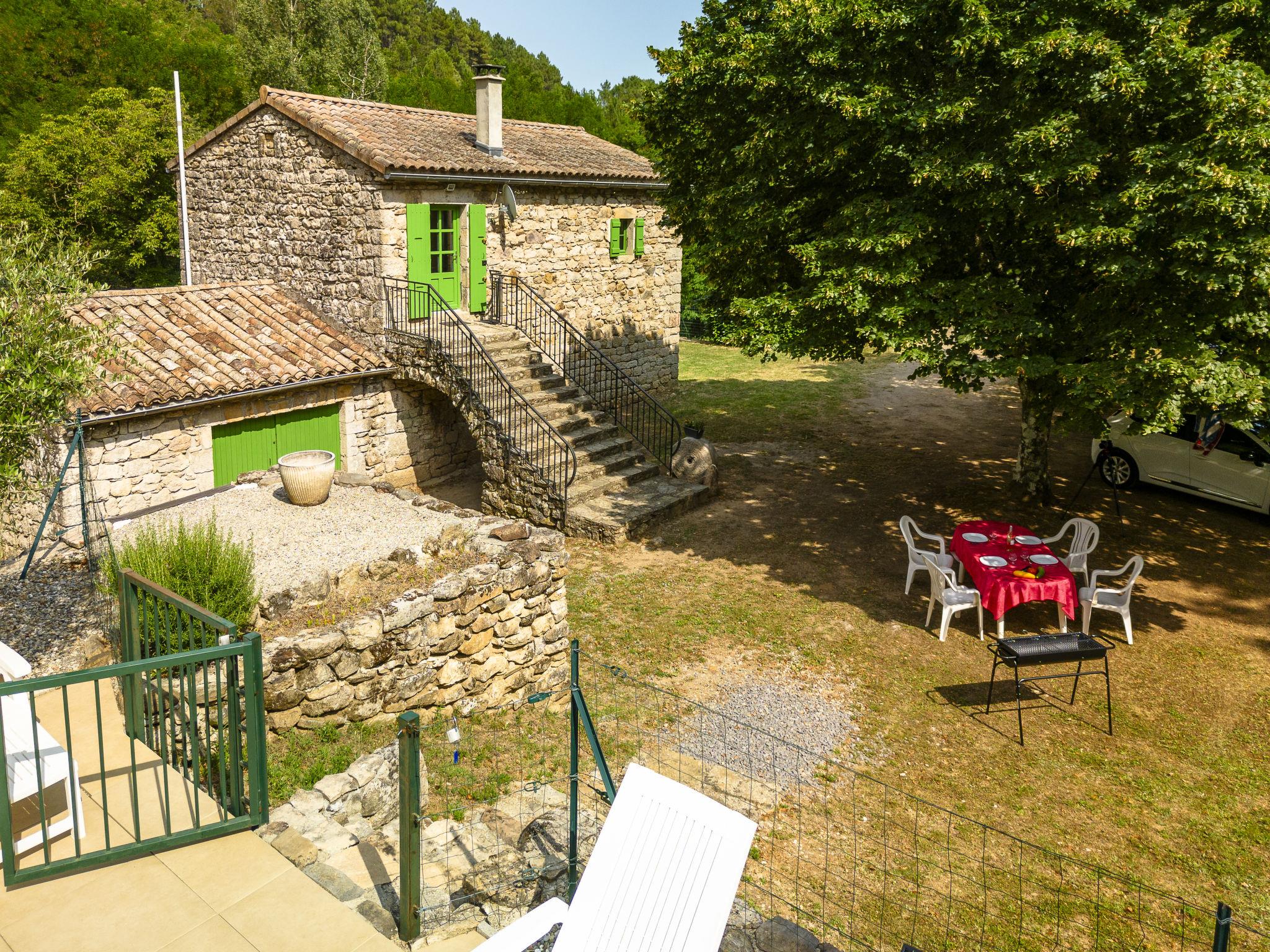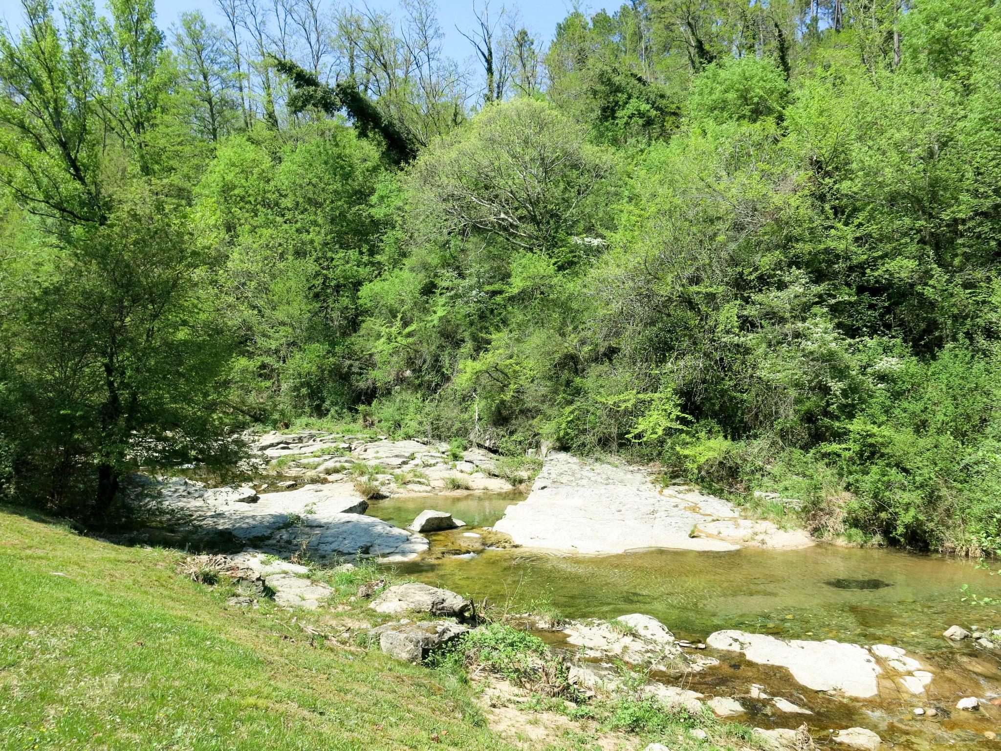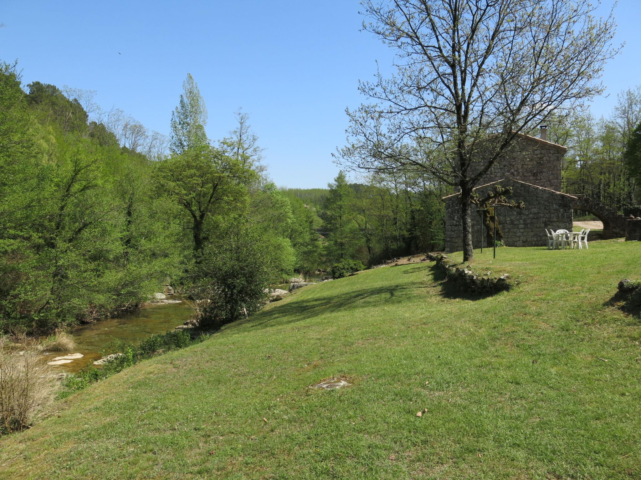 The river can run dry during the hottest periods. Cosy, rustic, historical windmill "Le Moulin", surrounded by trees. 500 m from the centre of St. Genest-de-Beauzon, 3 km from the centre of Lablachère, 25 km from the centre of Vallon Pont d'Arc, in a secluded, sunny position on a slope, in a cul-de-sac, in the woods. Private: property 1 ha (fenced) with trees, meadow, swimming pool heated, fenced (8 x 4 m, depth 140 cm, seasonal availability: 29.Apr. - 15.Oct.) with shutter cover. In the house: storage room for bicycles. Motor access (50 m via unmade road). Parking (for 2 cars) on the premises, single garage. Shop 3 km, supermarket 5 km, bus stop "Lablachère centre" 2 km.