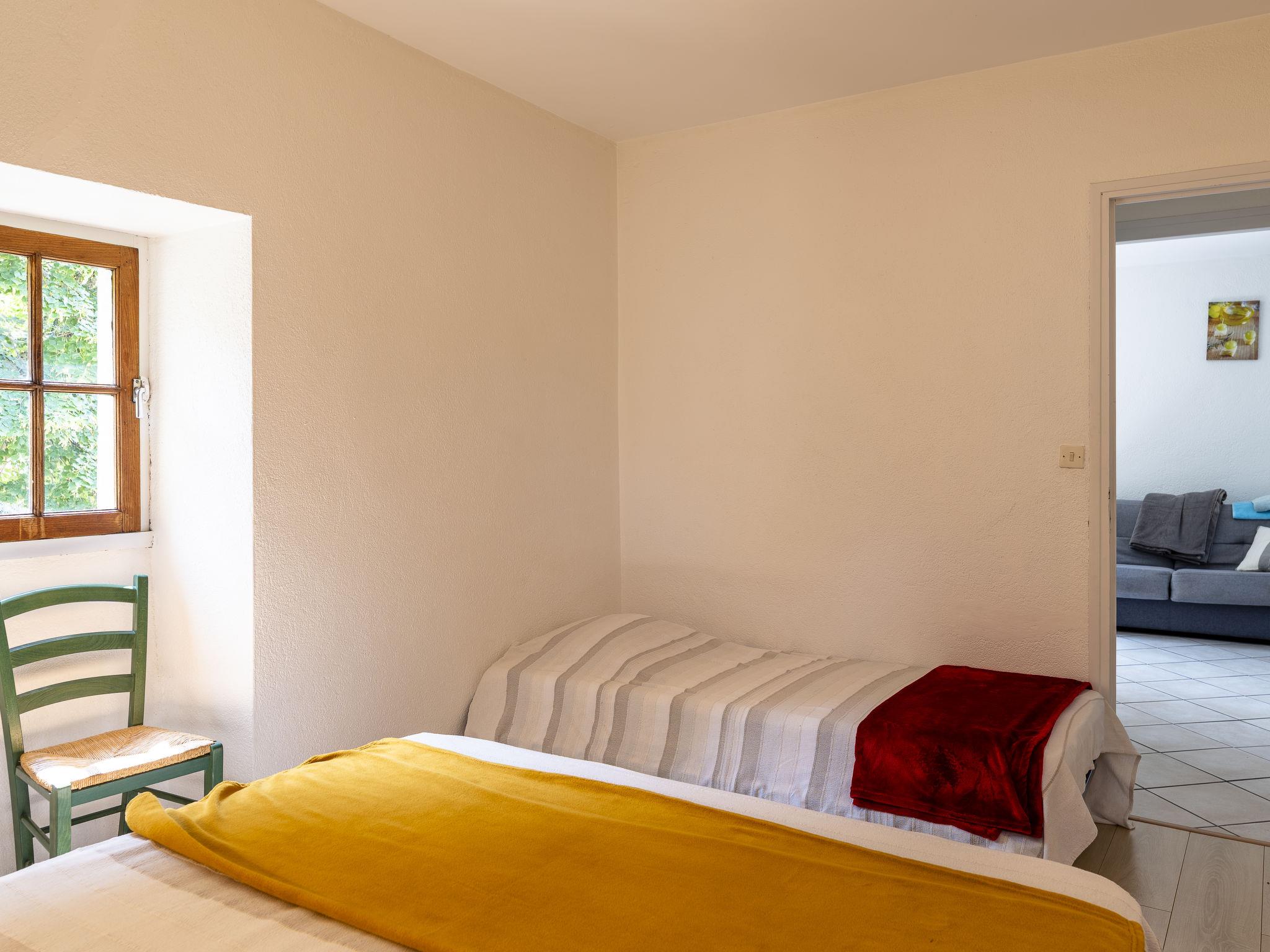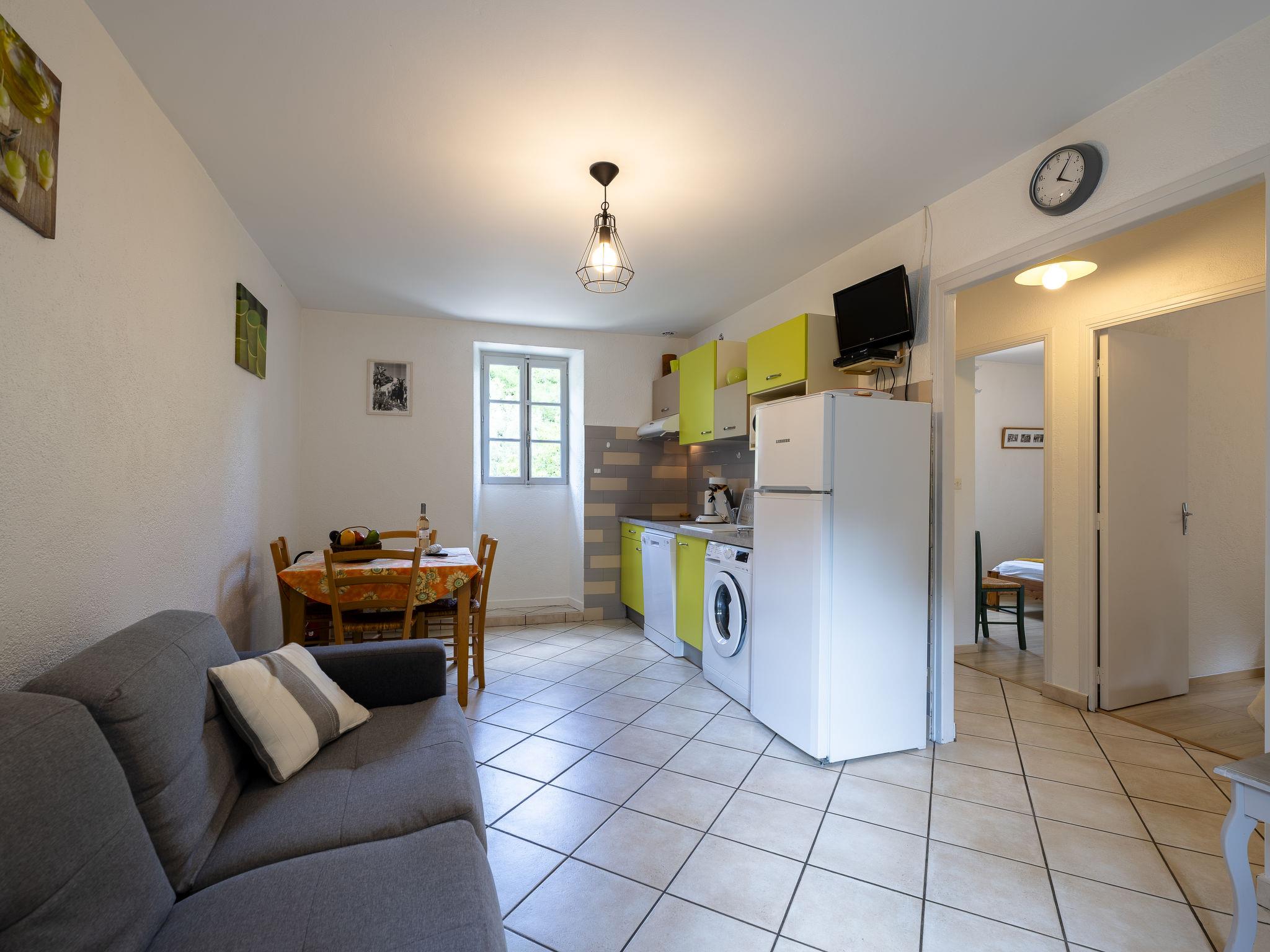 "Le Moulin", 3-room house 50 m2, on the upper ground floor. Object suitable for 2 adults + 3 children. Bright, cosy furnishings: living/dining room with open-hearth fireplace (only for decoration), dining table, satellite TV and fan. 1 room with 1 bed (90 cm, length 190 cm), 1 french bed (160 cm, length 200 cm). 1 room with 1 french bed (1 x 140 cm, length 190 cm). Kitchenette (dishwasher, 3 induction hot plates, toaster, kettle, freezer, electric coffee machine, combination microwave). Shower, sep. WC. Electric heating. Terrace furniture, electric barbecue (portable), deck chairs (5). Facilities: washing machine, iron, children's high chair, baby cot. Internet (WiFi, free). Please note: non-smoking house. Heated swimming pool. Offer by a private individual according to Art. 155, IV of CGI. 07238 000008 6H