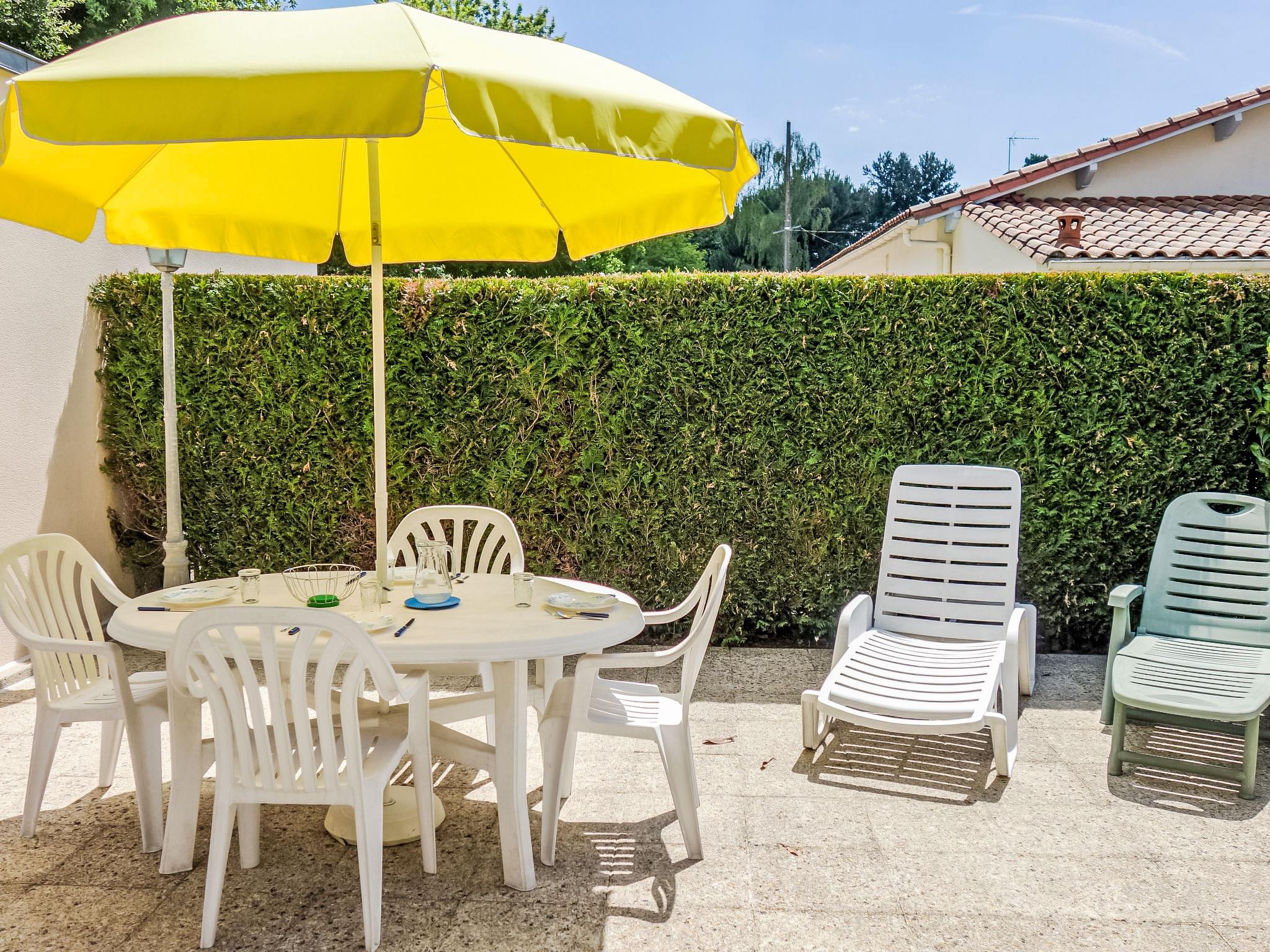 Small terraced house "L'Orée des Bois". Outside the resort, 1 km from the centre of Saint Georges de Didonne, 900 m from the sea, 900 m from the beach, in a cul-de-sac, south-west facing position. Parking on the premises. Grocery 100 m, supermarket 650 m, restaurant 1 km, bus stop "Maréchal Juin" 800 m, railway station "Royan" 2.5 km, sandy beach "Grande Conche" 900 m, park "Luna Park (Juillet-Août)" 20 km, indoor swimming pool 2.5 km, thermal baths "Thalassothérapie Thalazur Royan" 5 km, lake Enlias - St Georges de didonne 650 m. Sports harbour 4 km, golf course (18 hole) 13 km, sailing school 1.8 km, tennis 1 km, minigolf 3.5 km. Nearby attractions: Parc de l'Estuaire 4 km, Embarcadere Royan - Le Verdon 4 km, Zoo de La Palmyre 20 km, Hippodrome - La Palmyre 21 km, Centre aquatique Iléo - Ile d'Oléron 50 km, Fort Boyard - Fouras 60 km. Object suitable for 2 adults + 2 children. Please note: the keys‘ handover takes place by the agency Interhome in Vaux sur Mer, 6 km. The owner lives on the same property.