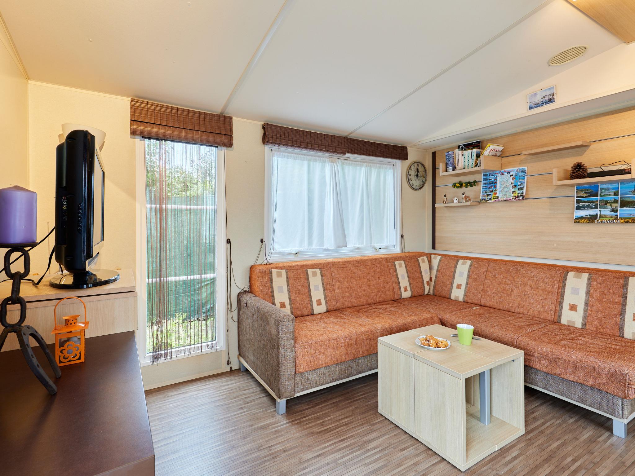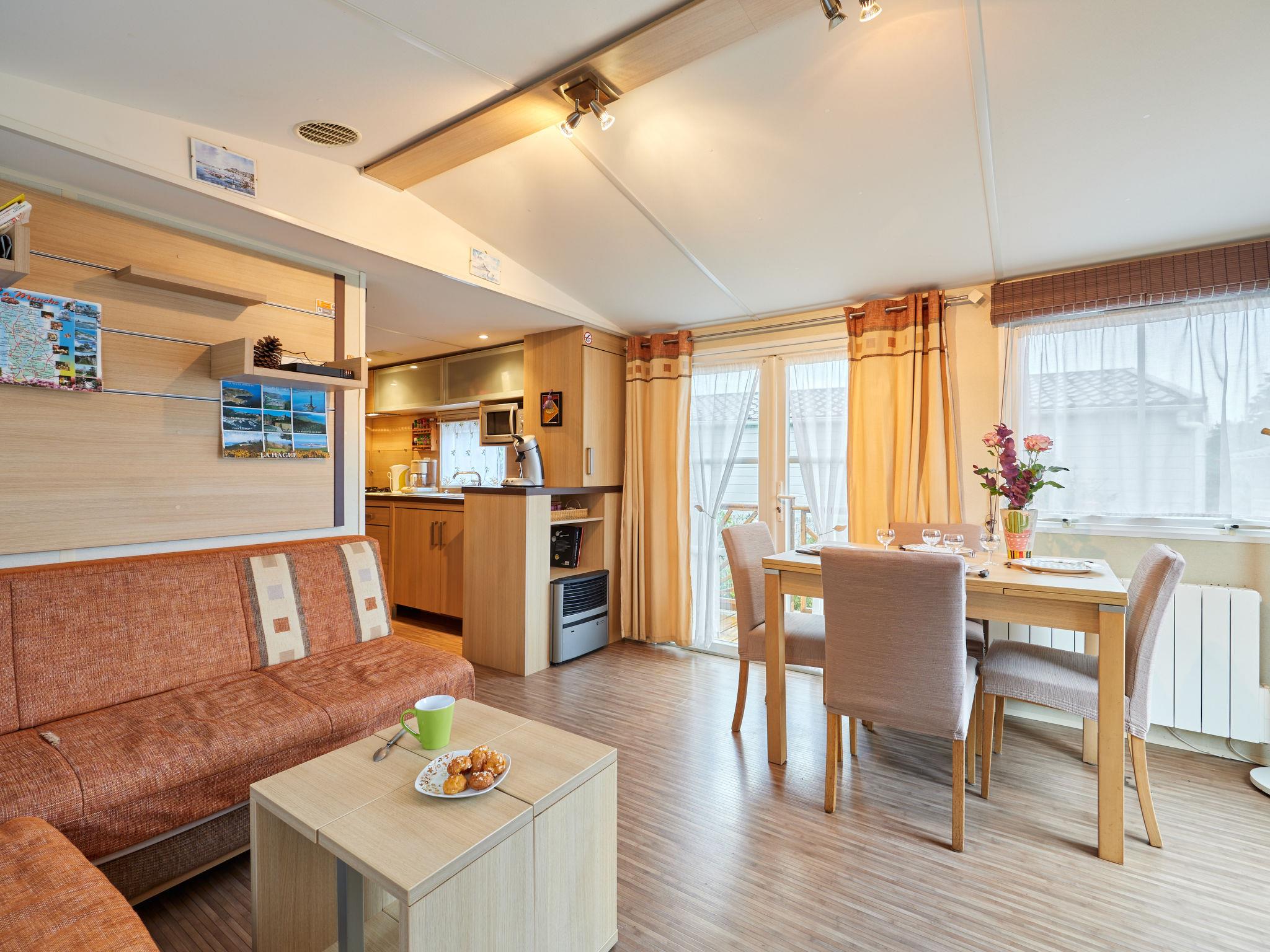 Cosy, comfortable mobile home "Rêves & Sérénité". 1.8 km from the centre, in a quiet, sunny position, 800 m from the sea, 800 m from the beach. Private: property 310 m2 (fenced). Grocery 3 km, shopping centre 2.6 km, bakery 2.6 km, 10 minute walk to the centre, bus stop "Place Saint-Georges" 2 km. Sports harbour 1.8 km, golf course (18 hole) 2 km. Nearby attractions: Barneville Carteret 2.5 km, Golf d'Agon Coutainville 45 km, Cherbourg 40 km, Granville 75 km. Hiking paths: Cap de Carteret 5.5 km, Dunes d'Hatainville 5.5 km.