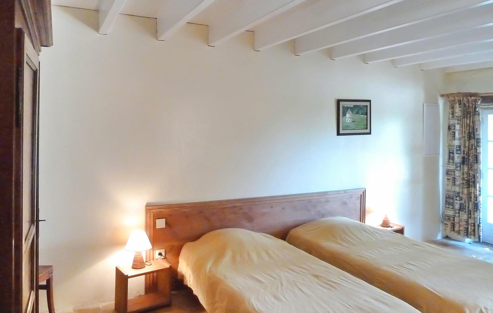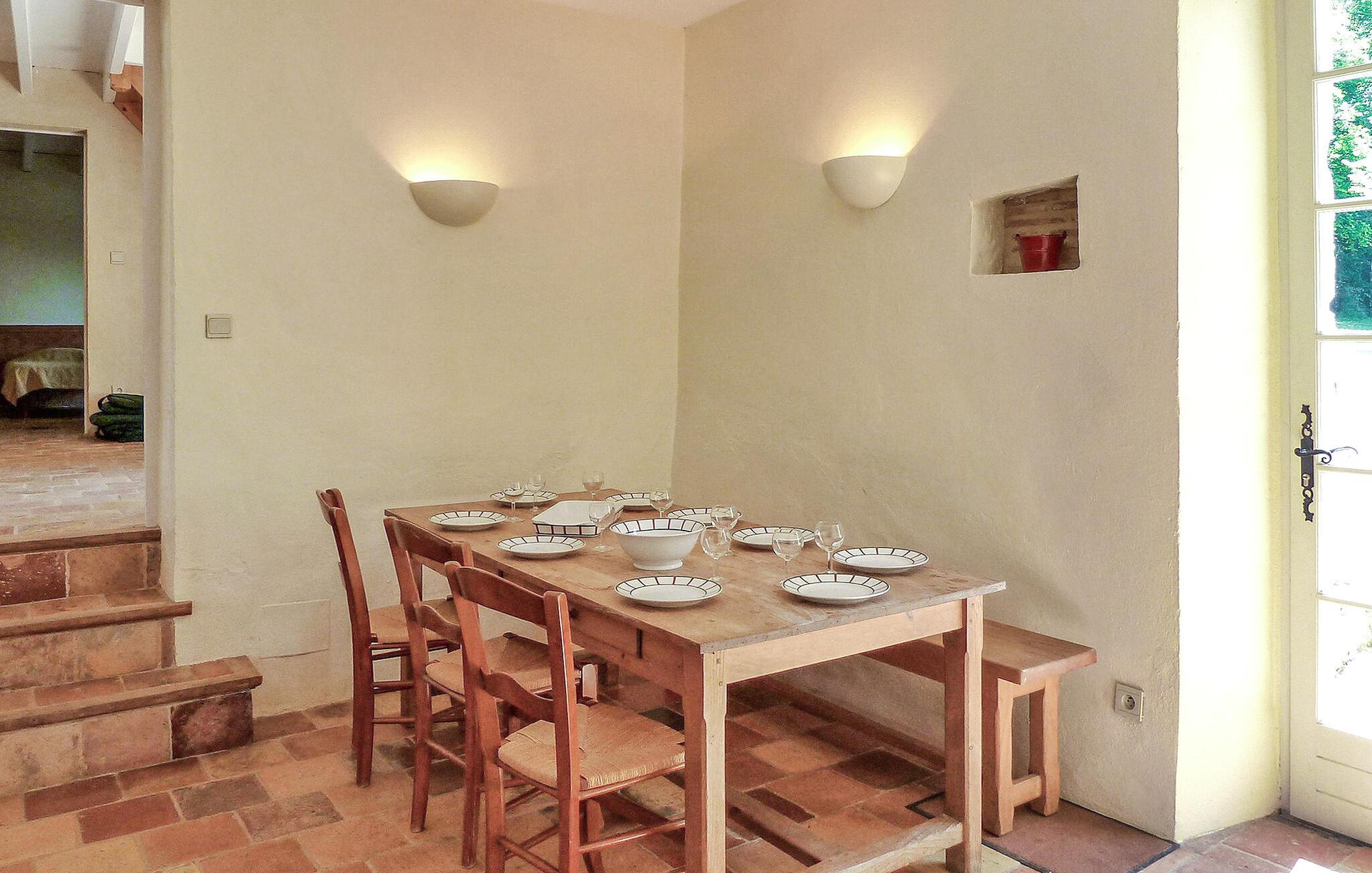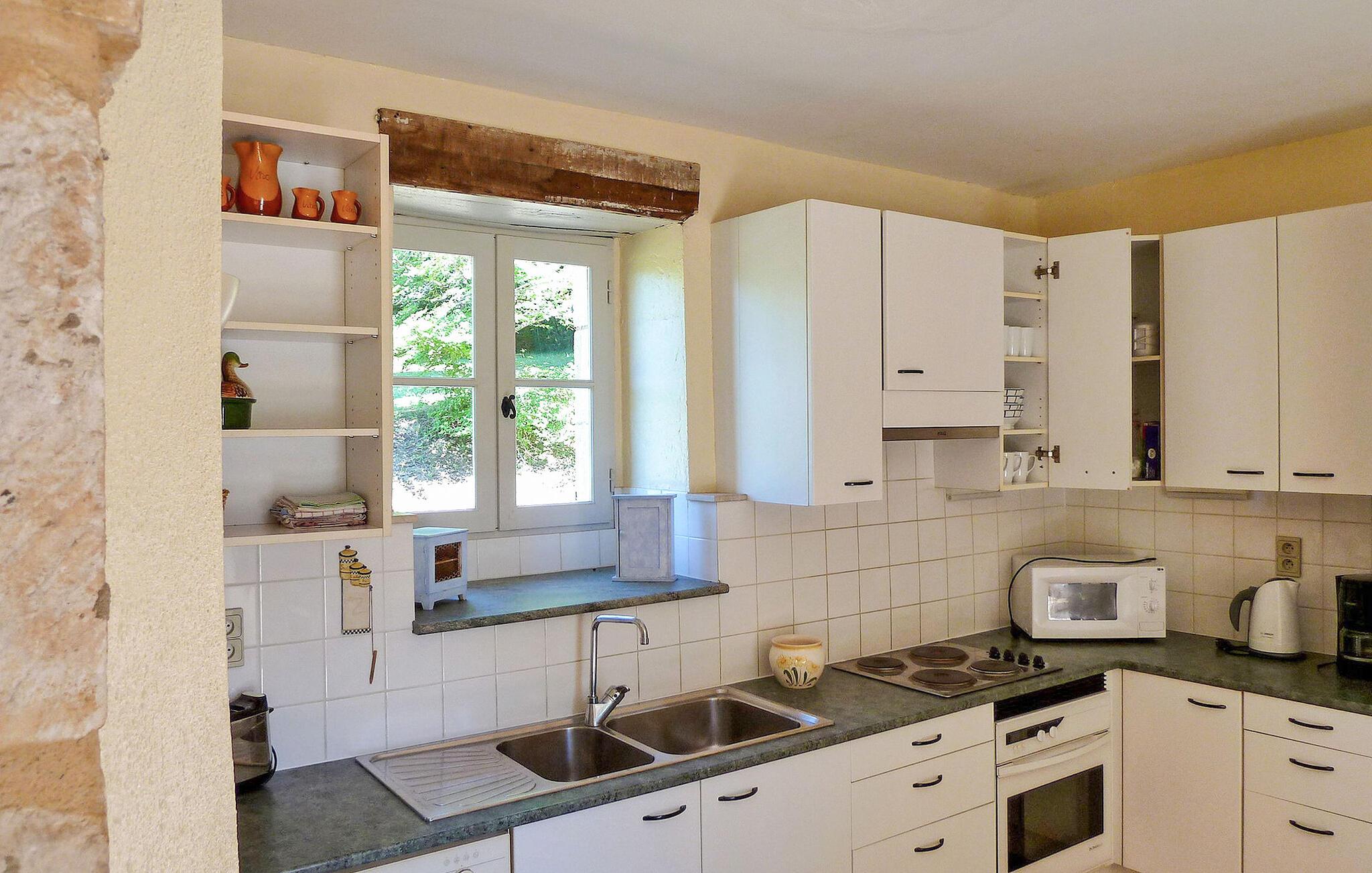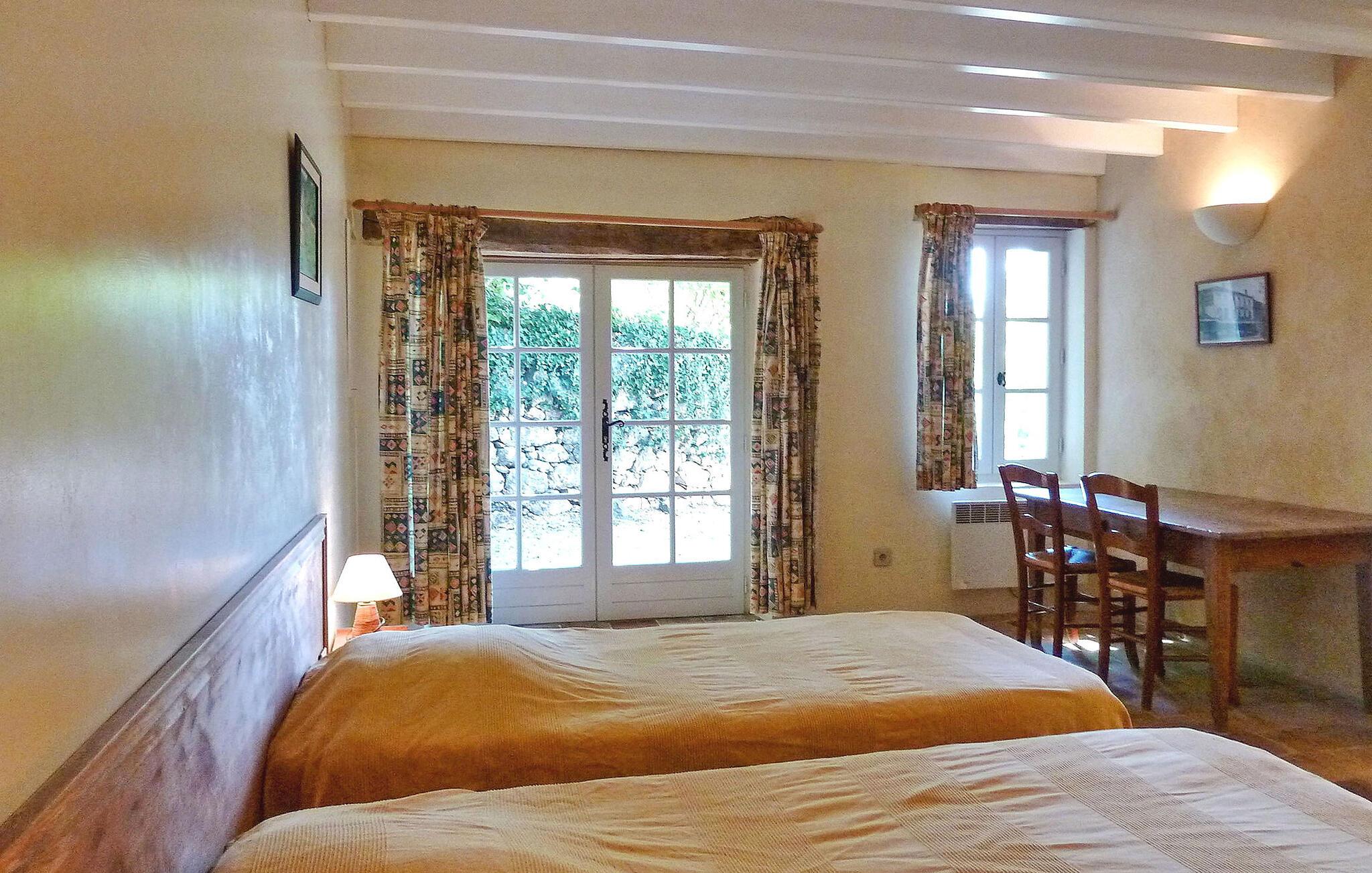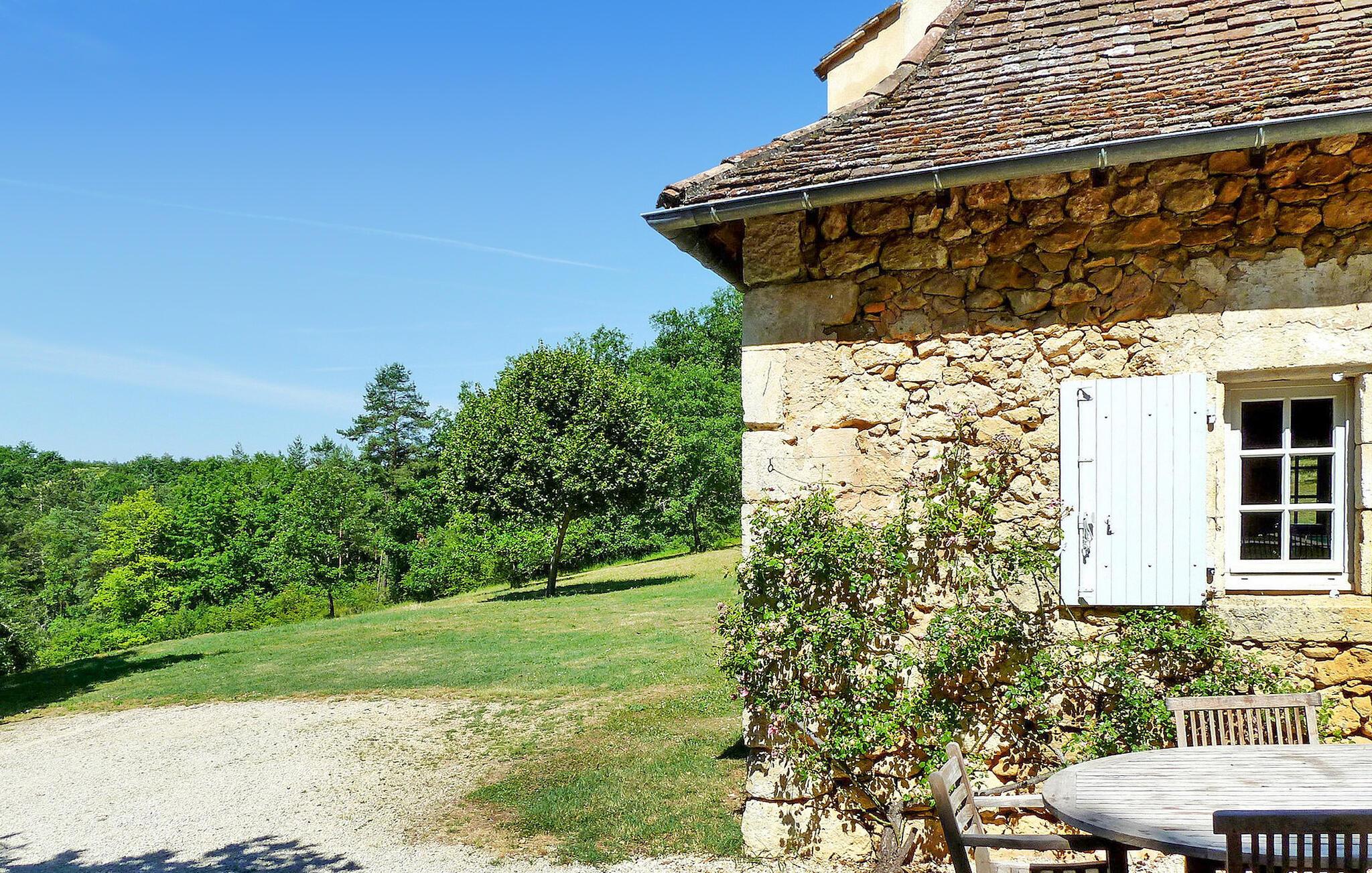 Beliggende i det fredfyldte Perigord-landskab tilbyder dette charmerende stenbondehus et idyllisk feriested. Stuehuset emmer af rustik charme og komfort. Stueetagen byder dig velkommen med et indbydende opholdsrum, et veludstyret køkken og et hyggeligt soveværelse. Ovenpå kan du opdage yderligere tre soveværelser og et åbent soveværelse, alle med komfortable møbler. Udenfor kan du udforske maleriske landområder, herunder en stenterrasse til udendørs spisning og en privat pool indhegnet for sikkerhed. Gæsterne kan nyde en gratis halv stere træ til ovnen om vinteren og afslappede gåture på tværs af 600 hektar skov og damme. Bemærk at tre andre selvstændige huse deler ejendommen. Ekstra tjenester, såsom brunch ved dammene og morgenmad, er tilgængelige mod et ekstra gebyr. Wi-Fi-adgang tilbydes i domænets reception. Stuehuset er beliggende på landet, nærmeste butikker i SAINT GEORGES DE MONTCLAR (2 km). Nyd din ferie i en lade i Dordogne i Quercy - Périgord.