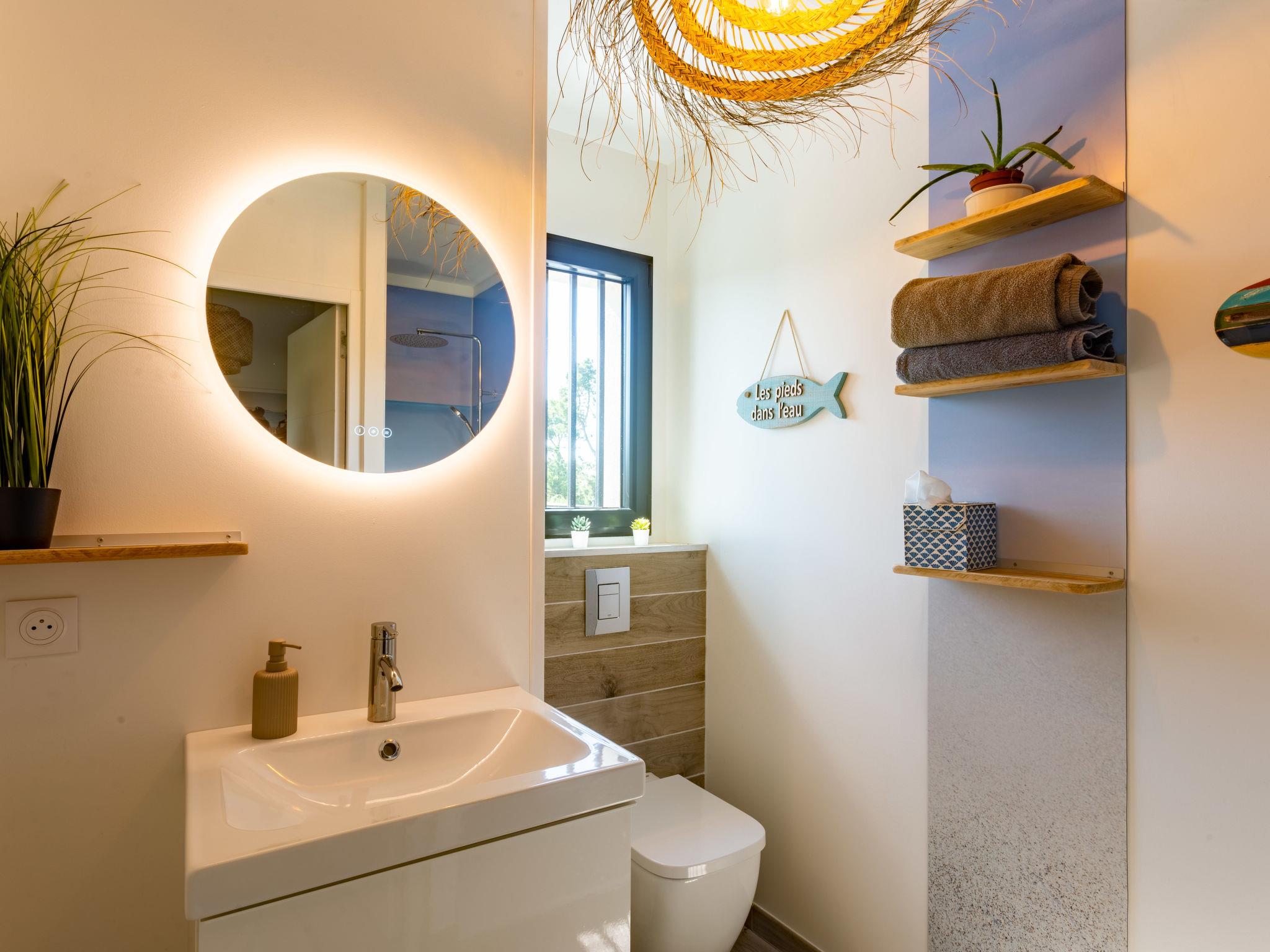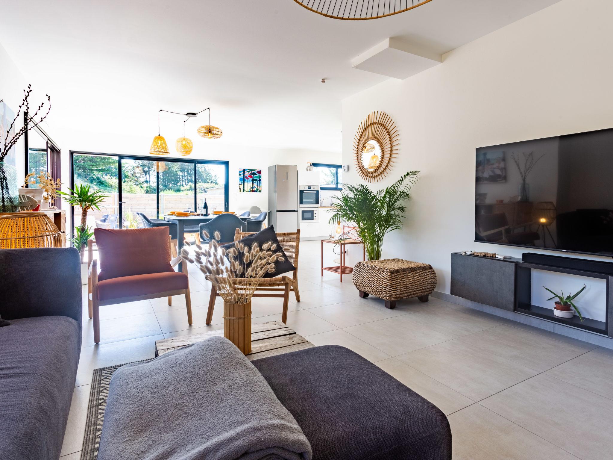 "La Dune", 3-room house 100 m2. Beautiful and modern furnishings: living/dining room. Exit to the garden, to the terrace. Lounge. Open kitchen (oven, dishwasher, 1 induction hot plates, 4 gas rings, toaster, kettle, microwave, electric coffee machine, Capsules for coffee machine (Tassimo)). Sep. WC. Underfloor heating. Upper floor: 1 room with 1 french bed (1 x 140 cm, length 190 cm). 1 room with 1 french bed (160 cm, length 200 cm). Shower/WC. Terrace furniture, barbecue, deck chairs (4). Facilities: washing machine, dryer, baby cot for up to 2 year olds, hair dryer. Internet (WiFi, free). Parking (fenced 2 cars), garage. Please note: smoke alarm. Offer by a private individual according to Art. 155, IV of CGI. FR68770
