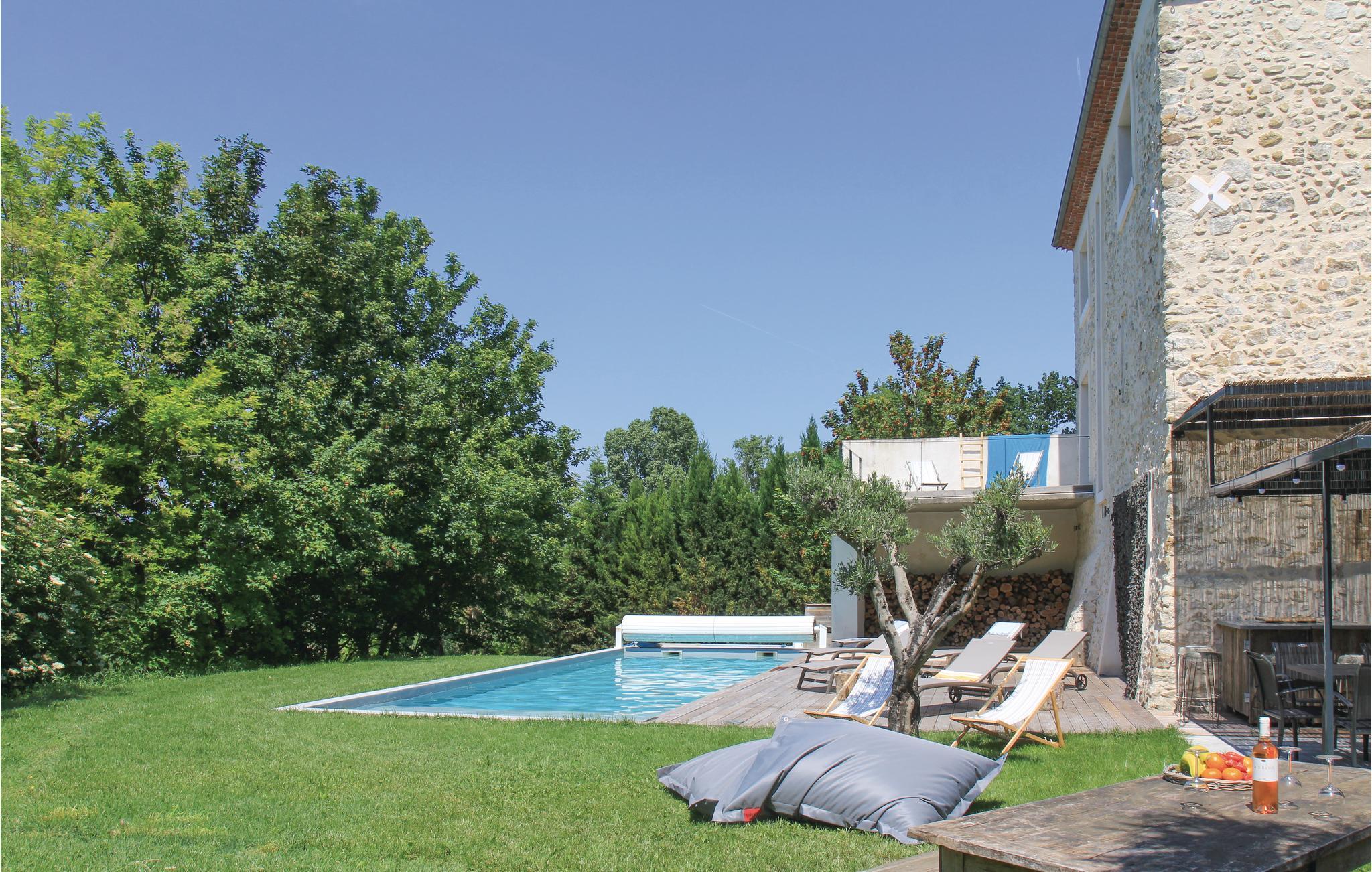 Her er udsigt til masser af badesjov. Det charmerende feriehus bygget i sten er nemlig udstyrret med en afskærmet opvarmet pool. Feriehuset ligger desuden kun 12 km fra Montélimar, og udmærker sig ved en dejlig grøn have og en stor terrasse med grill og 'sommerkøkken' hvor I kan tilberede jeres måltider under åben himmel. Indenfor kan I se frem til en original byggestil og afslappet atmosfære, hvor I nok skal kunne slappe af. For dem der efterspørger privatliv ligger soveværelset nr. 5 separat på den ene side af terrassen. Det har egen badeværelse med WC.