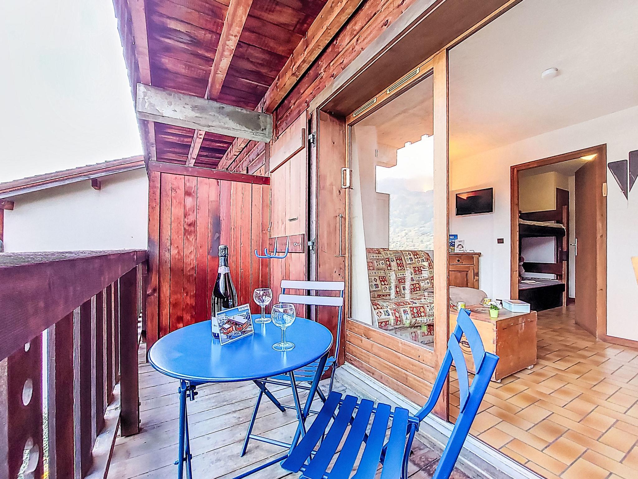 "Les Grets", 1-room studio 27 m2. Entrance hall with 1 x 2 bunk beds (80 cm, length 190 cm). Living/dining room with 1 sofabed (140 cm, length 190 cm), TV (flat screen). Exit to the balcony. Kitchenette (2 hot plates, toaster, kettle, microwave, electric coffee machine, raclette grill, fondue Set (cheese)). Bath/WC. Electric heating. Small balcony 3 m2, east facing position. Balcony furniture. Very beautiful view of the mountains and the swimming pool. Facilities: Internet (WiFi, extra). Please note: maximum 1 small pet/ dog allowed. TV only FR. Smoke alarm, no lift. Offer by a private individual according to Art. 155, IV of CGI.