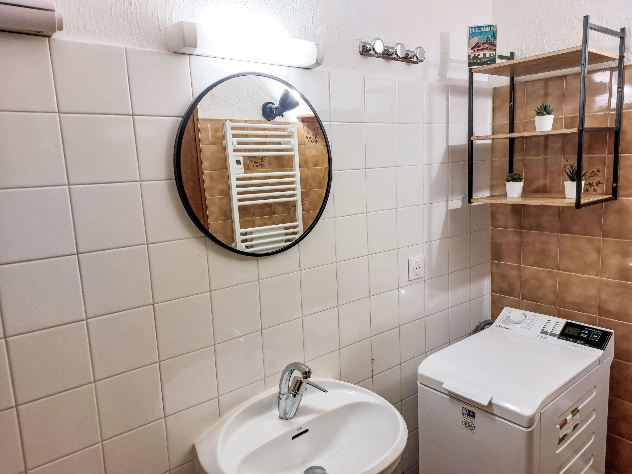 "Les G'rets", 1-room apartment 27 m2, on the ground floor. Entrance hall. Living/dining room with 2 pull-out beds (2 x 80 cm, length 190 cm), TV. Sleeping alcove with 1 x 2 bunk beds (80 cm). Kitchenette (2 hot plates, mini-oven, toaster, kettle, microwave, electric coffee machine, Capsules for coffee machine (Senseo) extra, raclette grill, fondue Set (cheese)). Bath/WC. Electric heating. Small patio. Terrace furniture. Facilities: washing machine. Internet (WiFi, extra). Parking. Please note: non-smokers only. TV only FR. Smoke alarm. Instead of an enclosed bedroom, some sleeping areas are located in an open-plan area (gallery, alcove, etc.). Offer by a private individual according to Art. 155, IV of CGI.
