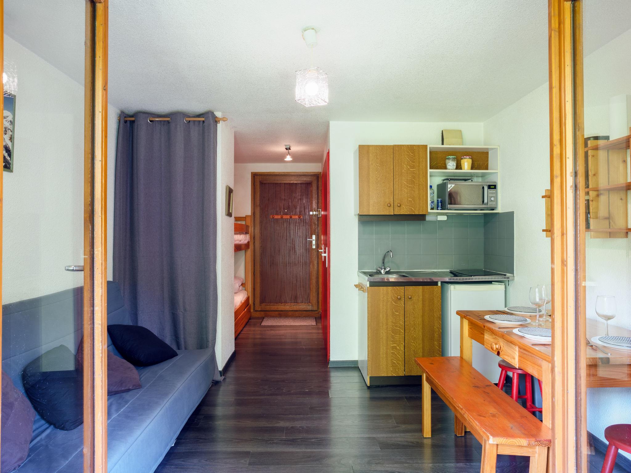 "La Piste B71", 1-room studio 20 m2 on 2nd floor. Entrance hall with 1 x 2 bunk beds (80 cm, length 190 cm). Living/dining room with 1 double sofabed (140 cm, length 190 cm), TV (flat screen). Exit to the balcony. Kitchenette (2 ceramic glass hob hotplates, toaster, kettle, electric coffee machine, raclette grill, combination microwave). Bathroom, sep. WC. Electric heating. Small balcony 4 m2, south-east facing position. Beautiful view of the mountains and the forest. Facilities: Internet (WiFi, extra). Parking at 150 m. Please note: TV only FR. Smoke alarm, no lift. Offer by a private individual according to Art. 155, IV of CGI.