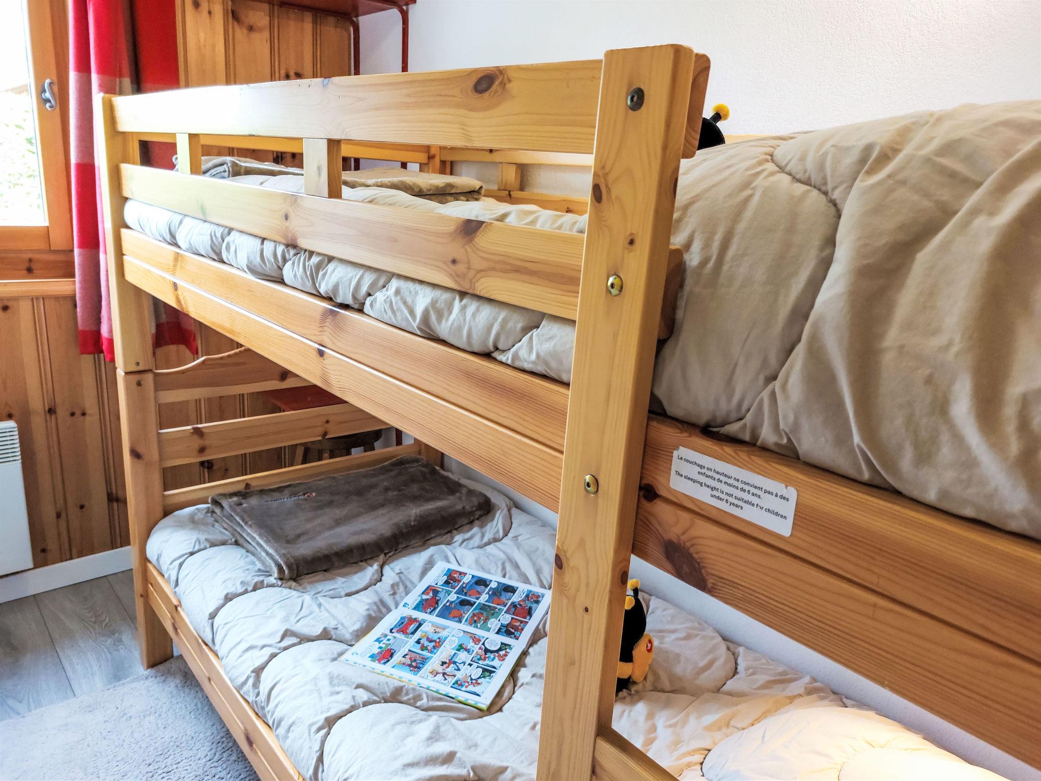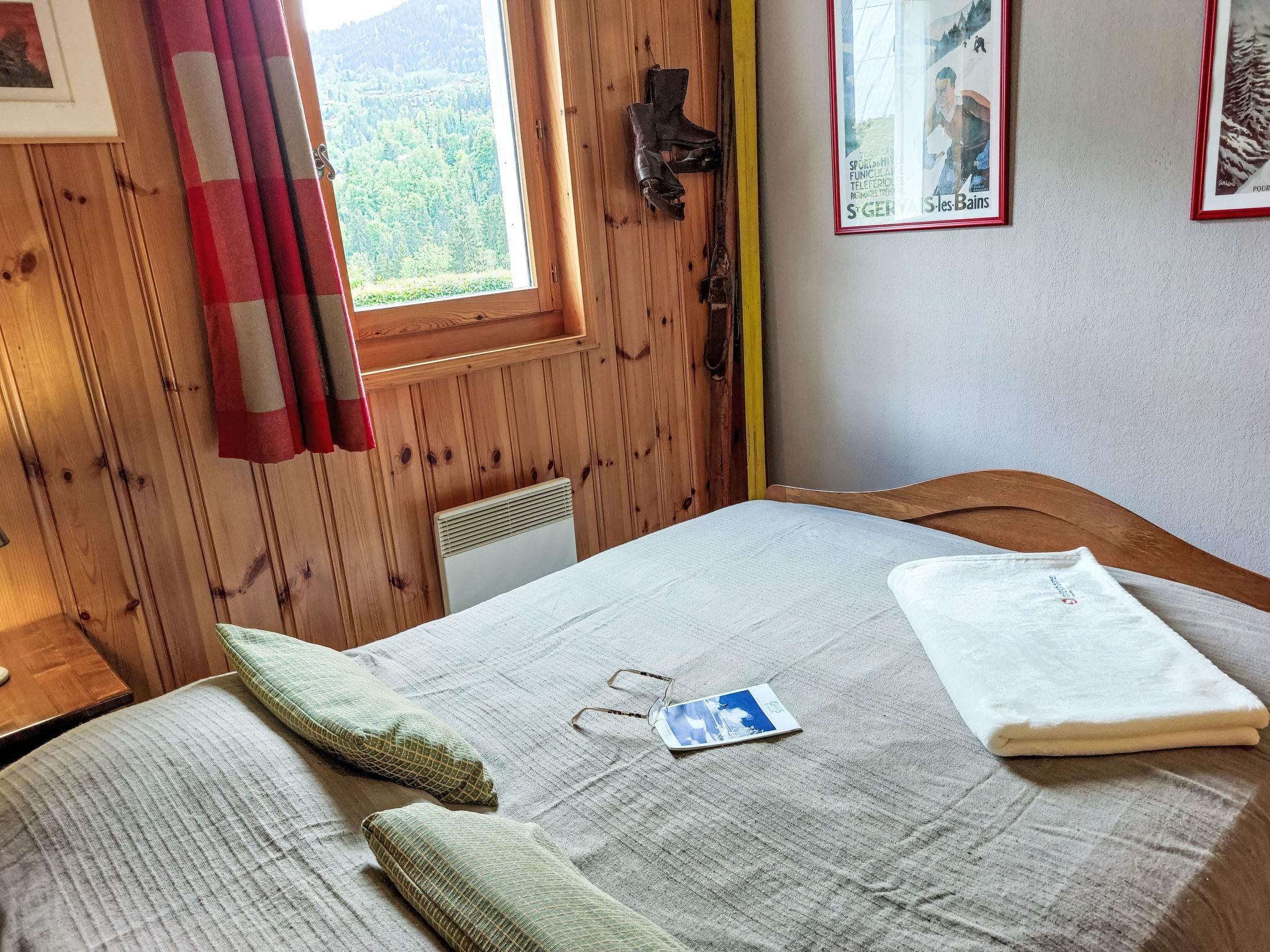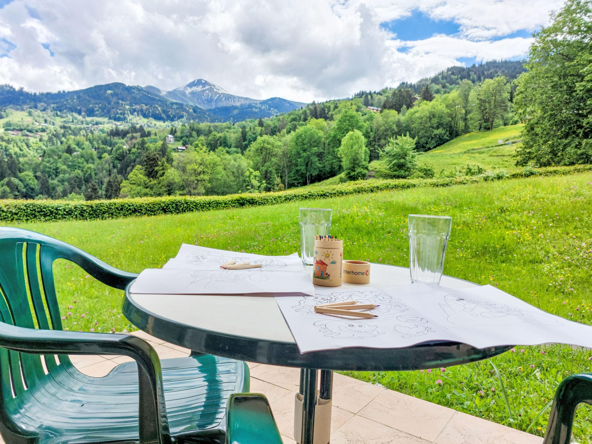"Le Parc du Mont Joly", 4-room apartment 54 m2, on the ground floor. Living/dining room with TV, flat screen and DVD. Exit to the terrace. 2 rooms, each room with 1 french bed (140 cm). 1 small room with 1 x 2 bunk beds (80 cm). Open kitchen (oven, dishwasher, 4 ceramic glass hob hotplates, toaster, kettle, electric coffee machine, Capsules for coffee machine (Nespresso) extra). Shower, sep. WC. Electric heating. Large terrace, south-east facing position. Beautiful view of the mountains. Facilities: Internet (WiFi, free). Blu-ray player. Parking. Please note: suitable for families. Fridge without freezer. TV only FR. Smoke alarm.