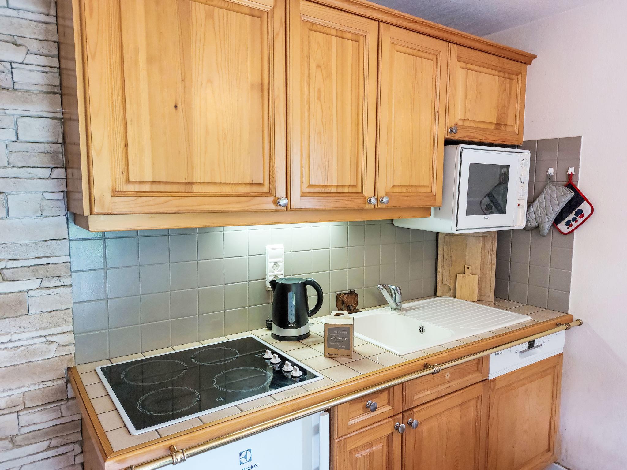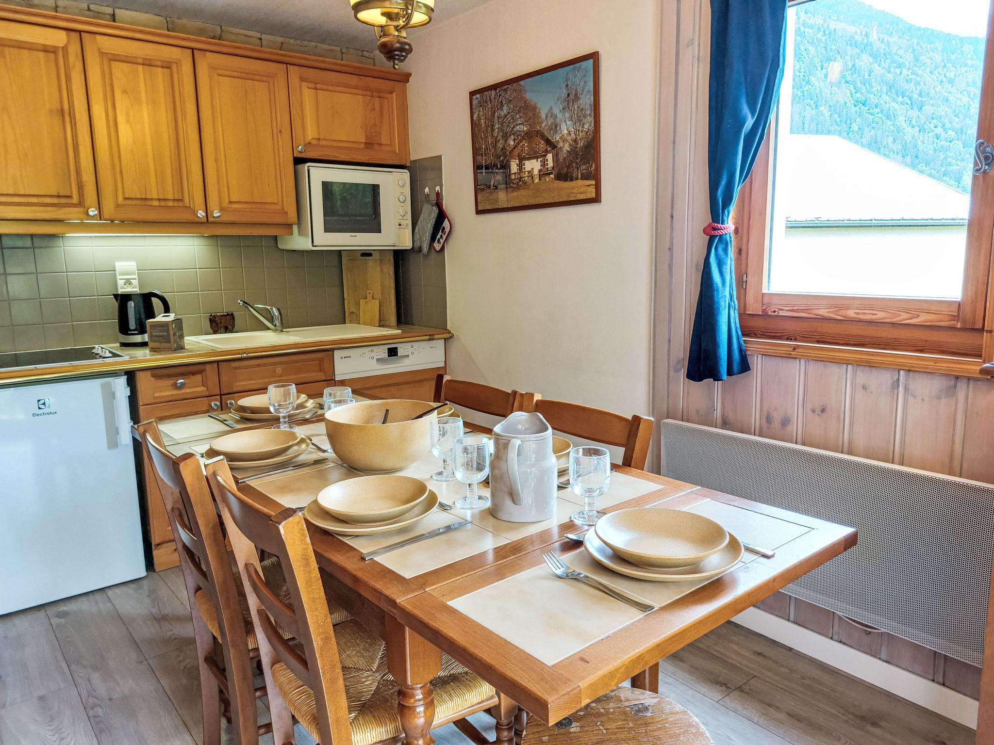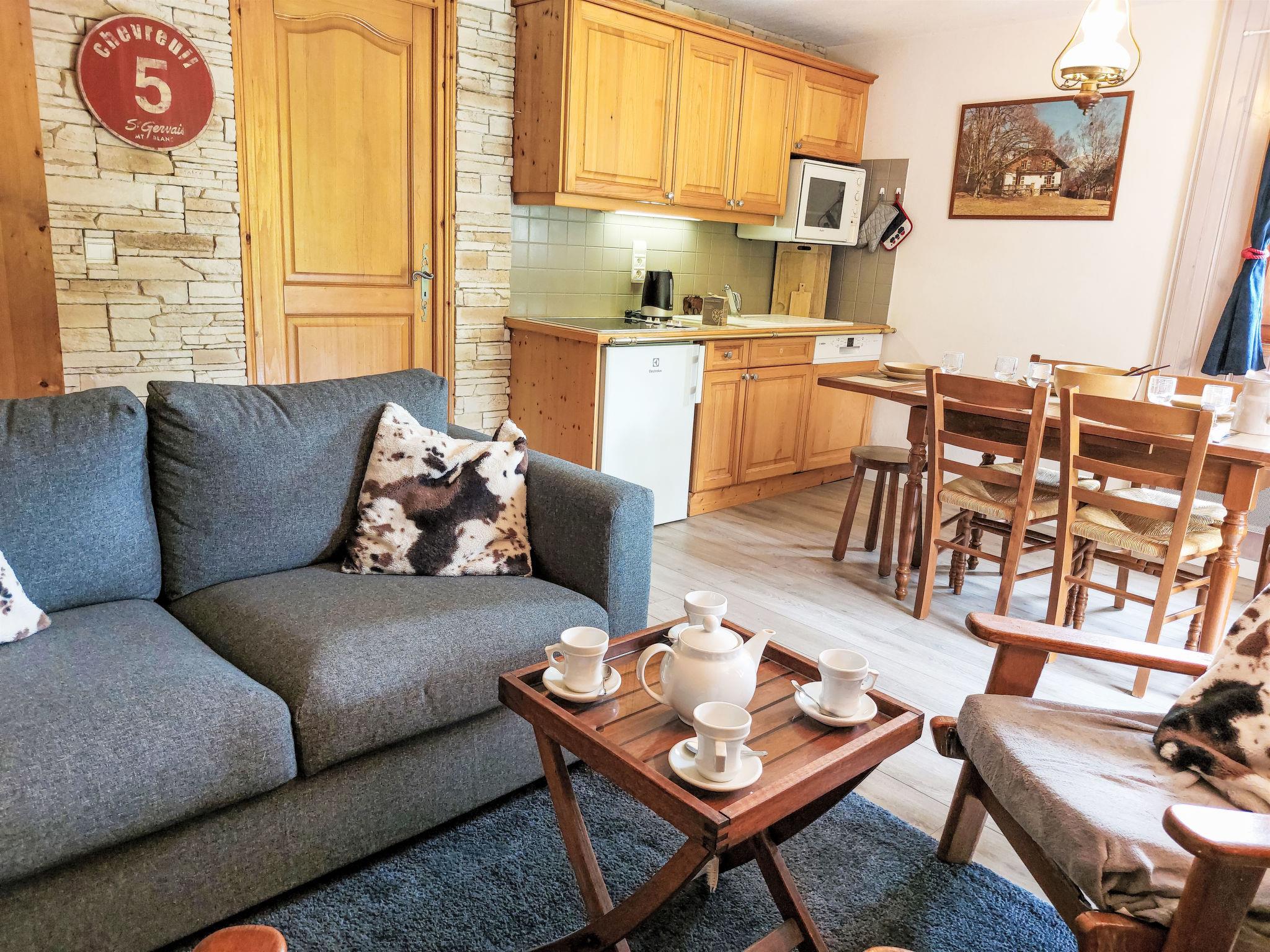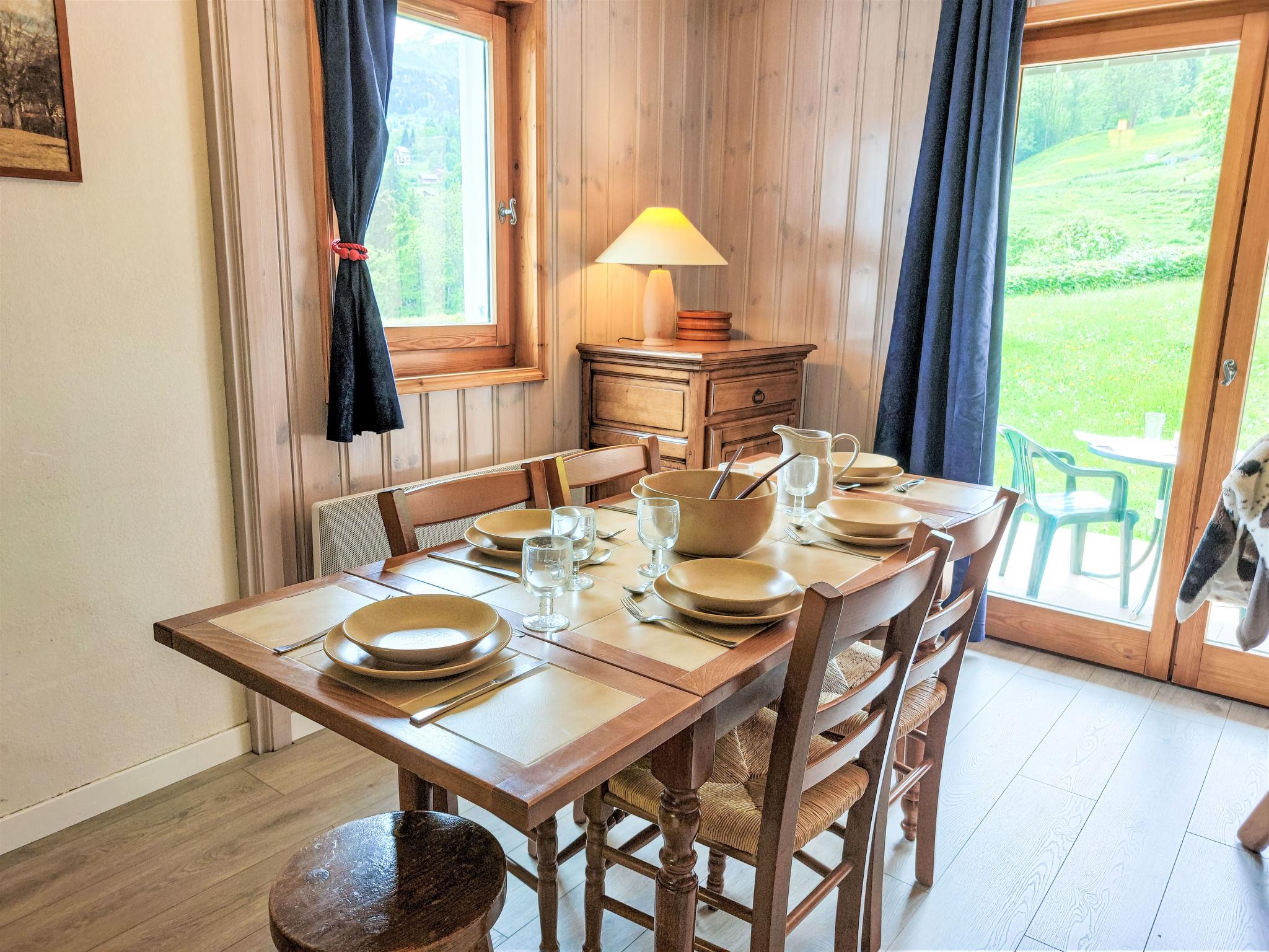 "Le Parc du Mont Joly", 4-room apartment 54 m2, on the ground floor. Living/dining room with TV, flat screen and DVD. Exit to the terrace. 2 rooms, each room with 1 french bed (140 cm). 1 small room with 1 x 2 bunk beds (80 cm). Open kitchen (oven, dishwasher, 4 ceramic glass hob hotplates, toaster, kettle, electric coffee machine, Capsules for coffee machine (Nespresso) extra). Shower, sep. WC. Electric heating. Large terrace, south-east facing position. Beautiful view of the mountains. Facilities: Internet (WiFi, free). Blu-ray player. Parking. Please note: suitable for families. Fridge without freezer. TV only FR. Smoke alarm.