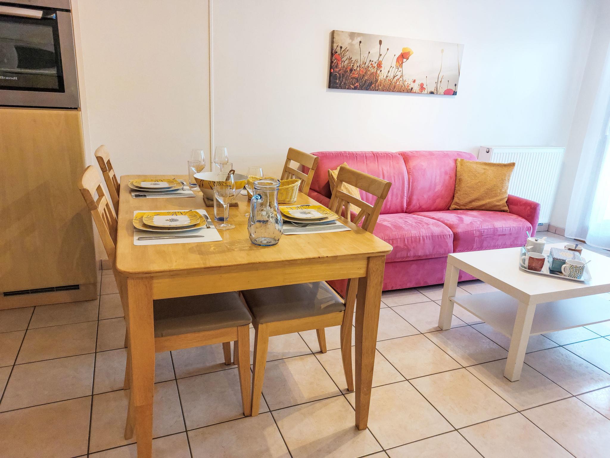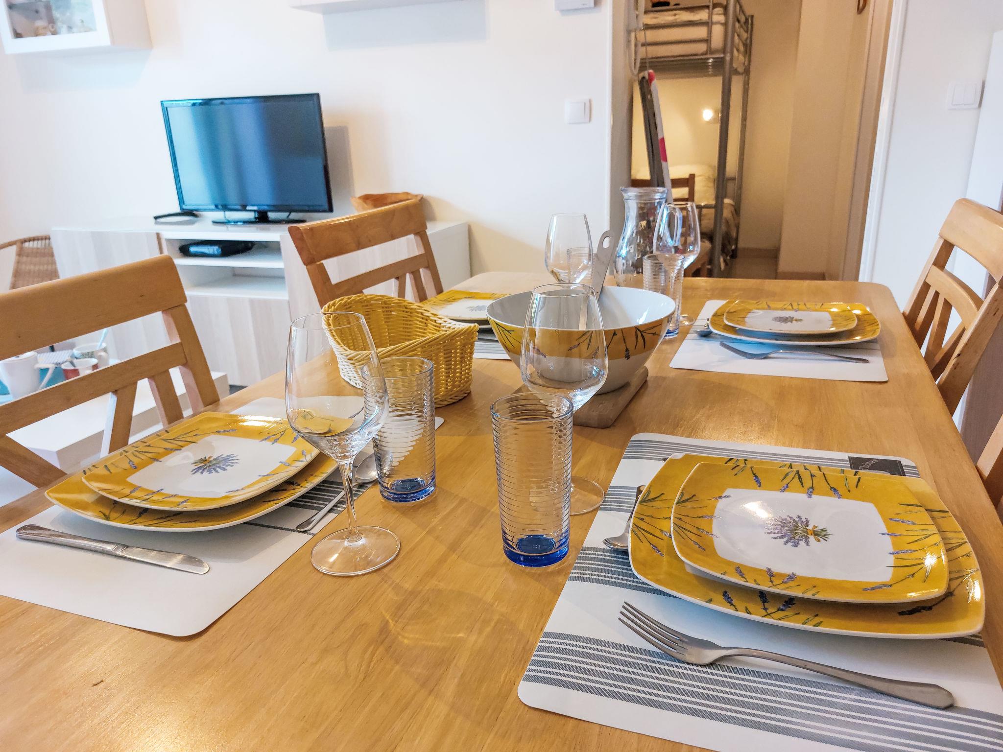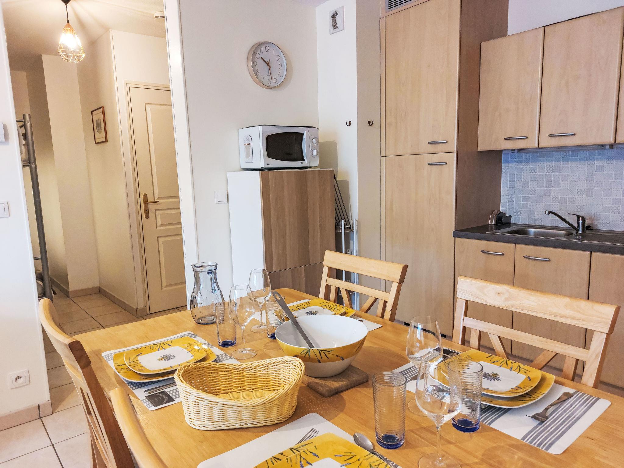 "Crespin", 2-room apartment 41 m2, on the ground floor. Object suitable for 2 adults + 2 children. Spacious: living/dining room with TV and flat screen. Exit to the terrace. Entrance hall with 1 x 2 bunk beds (90 cm). 1 room with 1 french bed (140 cm). Open kitchen (4 hot plates, oven, dishwasher, toaster, kettle, electric coffee machine, combination microwave) with dining table. Shower/WC. Electric heating. Terrace, south-west facing position, small patio. Terrace furniture. View of the mountains. Facilities: washing machine, dryer. Internet (WiFi, free). Please note: apartment carpark side. Non-smokers only. TV only FR. Smoke alarm.