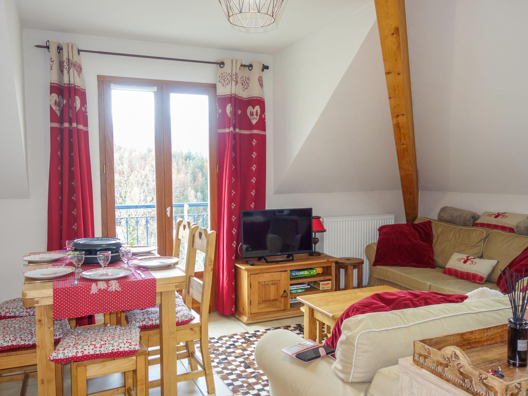 "Le Domaine de Crespin", 3-room apartment 54 m2 on 4th floor. Object suitable for 4 adults + 2 children. Alcove with 1 x 2 bunk beds (80 cm, length 190 cm). Living/dining room with dining table and TV (flat screen). Exit to the balcony. 1 room with 2 beds (90 cm, length 190 cm), TV (flat screen). 1 room with 1 french bed (140 cm, length 190 cm), bath/WC and double hand-basin. Open kitchen (oven, 4 ceramic glass hob hotplates, toaster, kettle, electric coffee machine, Capsules for coffee machine (nespresso) extra, raclette grill, combination microwave). Shower/WC. Electric heating. Small balcony 4 m2, west facing position. Very beautiful panoramic view of the mountains and the valley. Facilities: washing machine, dryer. Internet (WiFi, extra). Garage. Please note: TV only FR. Smoke alarm. Instead of an enclosed bedroom, some sleeping areas are located in an open-plan area (gallery, alcove, etc.). Offer by a private individual according to Art. 155, IV of CGI.
