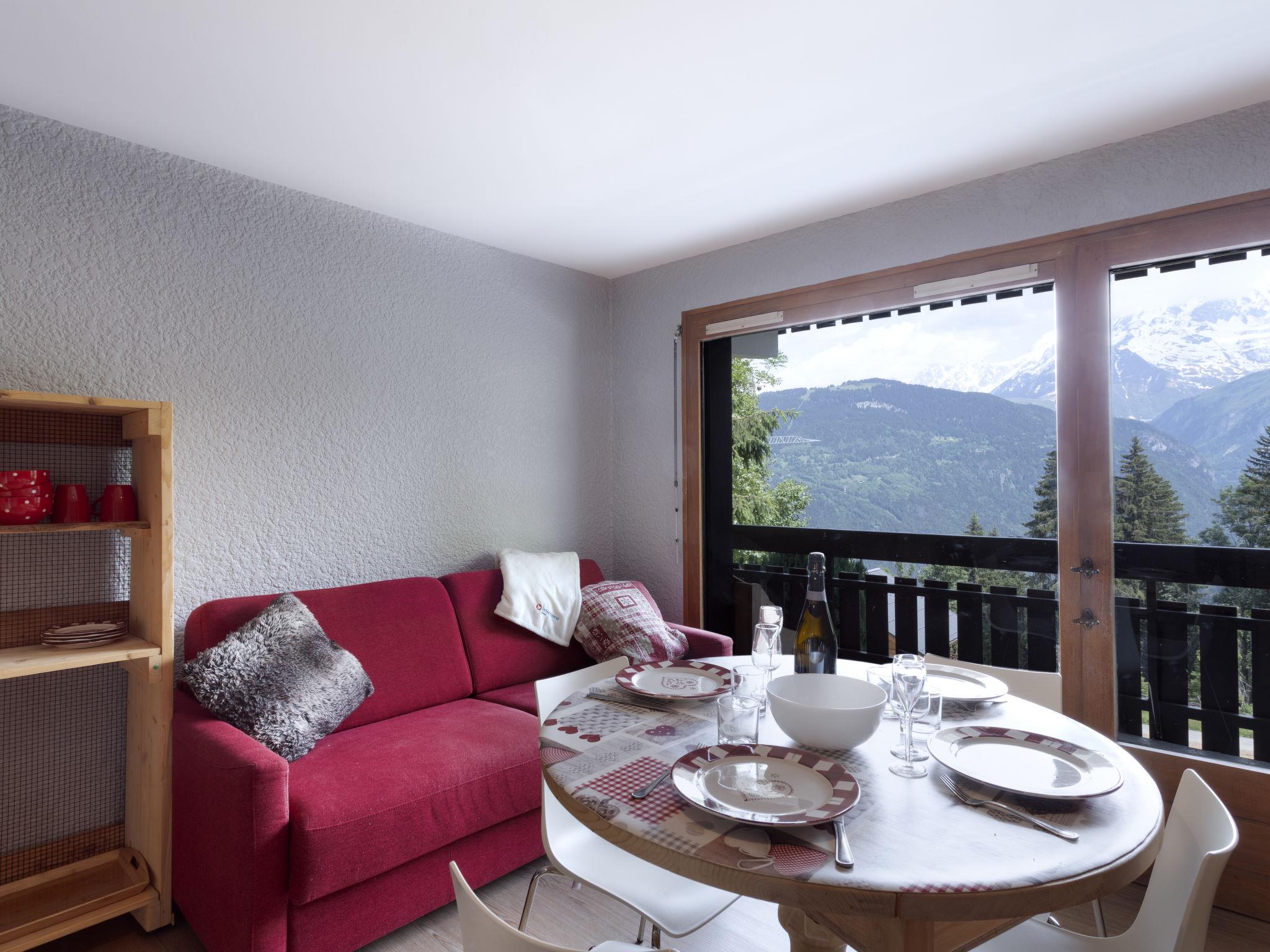 "Les Tétras", 1-room studio 27 m2 on 1st floor. Object suitable for 2 adults + 2 children. Beautiful furnishings: living/dining room with 1 double sofabed (160 cm, length 200 cm), TV (flat screen). Exit to the balcony. Sleeping alcove with 1 x 2 bunk beds (90 cm, length 190 cm). Open kitchen (oven, 4 ceramic glass hob hotplates, toaster, kettle, electric coffee machine, combination microwave). Bathroom, sep. WC. Electric heating. Balcony 6 m2, south-east facing position. Balcony furniture. Beautiful view of the mountains. Facilities: Internet (WiFi, extra). Parking (1 car). Please note: non-smokers only. TV only FR. Smoke alarm. Instead of an enclosed bedroom, some sleeping areas are located in an open-plan area (gallery, alcove, etc.). Offer by a private individual according to Art. 155, IV of CGI.