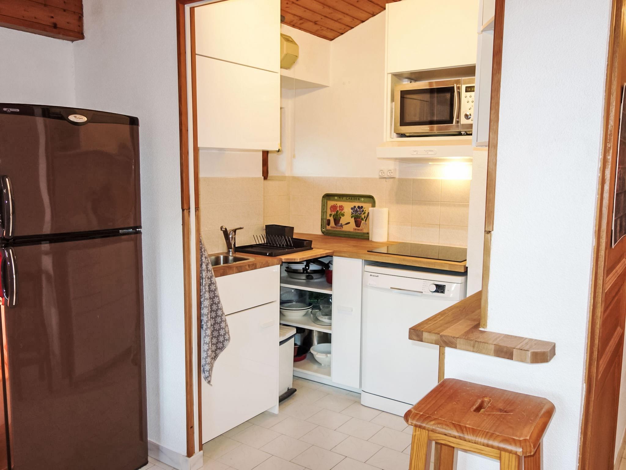 "Martagon", 4-room maisonette 80 m2 on 2nd floor. Comfortable furnishings: living/dining room with TV, flat screen and DVD. Exit to the balcony. 1 room with 1 french bed (140 cm). 1 room with 1 x 2 bunk beds (90 cm). Open kitchen (4 hot plates, mini-oven, dishwasher, toaster, kettle, electric coffee machine, raclette grill, fondue Set (cheese)). Bathroom, shower/WC, sep. WC. Electric heating. Upper floor: gallery with sloping ceilings, - 180 cm with 2 beds (90 cm). 1 room with 1 french bed (140 cm, length 180 cm). Large balcony 10 m2. Deck chairs (2). Beautiful view of the mountains. Facilities: washing machine. Internet (WiFi, free). Please note: non-smokers only. TV only FR. Smoke alarm. Area of 20 m2 has a ceiling height of under 1.80 m. Instead of an enclosed bedroom, some sleeping areas are located in an open-plan area (gallery, alcove, etc.). ?