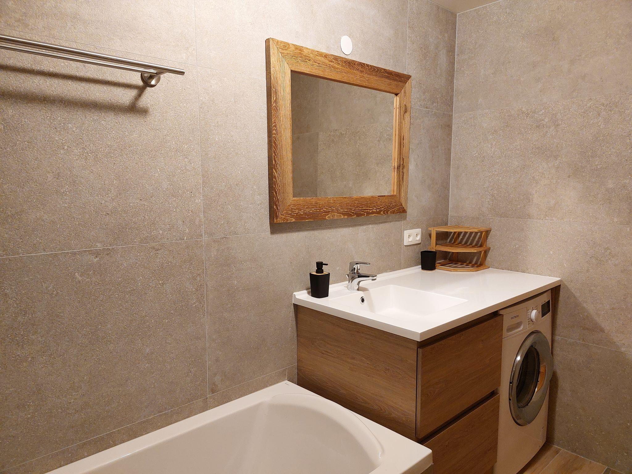 "Conseil 1", 3-room maisonette 60 m2 on 1st floor. Entrance hall. Living/dining room with TV and flat screen. Exit to the terrace. Kitchen (oven, dishwasher, 4 ceramic glass hob hotplates, toaster, kettle, electric coffee machine). Sep. WC. Upper floor: 1 room with 1 french bed (140 cm, length 190 cm). 1 room with 1 double sofabed (140 cm, length 190 cm), shower. Hip bath/WC. Electric heating. Terrace, south facing position. Facilities: washing machine, iron. Internet (WiFi, extra). Garage, height 200 cm, width 290 cm. Please note: non-smokers only. TV only FR. Smoke alarm.