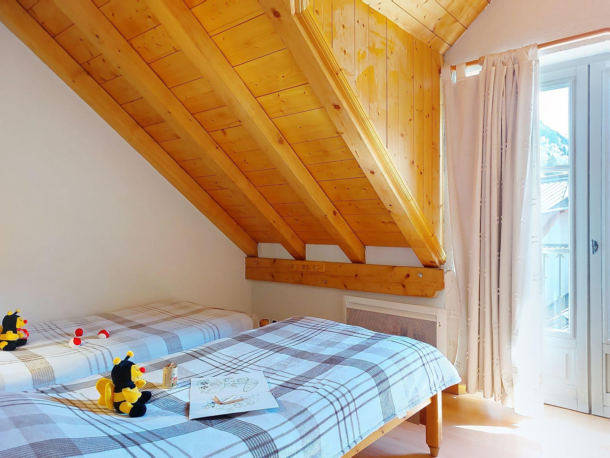 "Conseil 3", 3-room maisonette 55 m2 on 3rd floor. Comfortable furnishings: living/dining room with 1 double sofabed (120 cm, length 190 cm), TV, flat screen and DVD. Exit to the balcony. Open kitchen (oven, dishwasher, 4 ceramic glass hob hotplates, toaster, kettle, microwave, electric coffee machine). Sep. WC. Electric heating. Upper floor: 1 room with 1 french bed (1 x 140 cm, length 190 cm), shower. 1 room with 2 beds (90 cm, length 190 cm). Bath/WC. 2 small balconies, south facing position and, east facing position. Facilities: Internet (WiFi, free). Garage, height 200 cm, width 290 cm. Please note: non-smokers only. TV only FR. Smoke alarm. FR7450.420.3