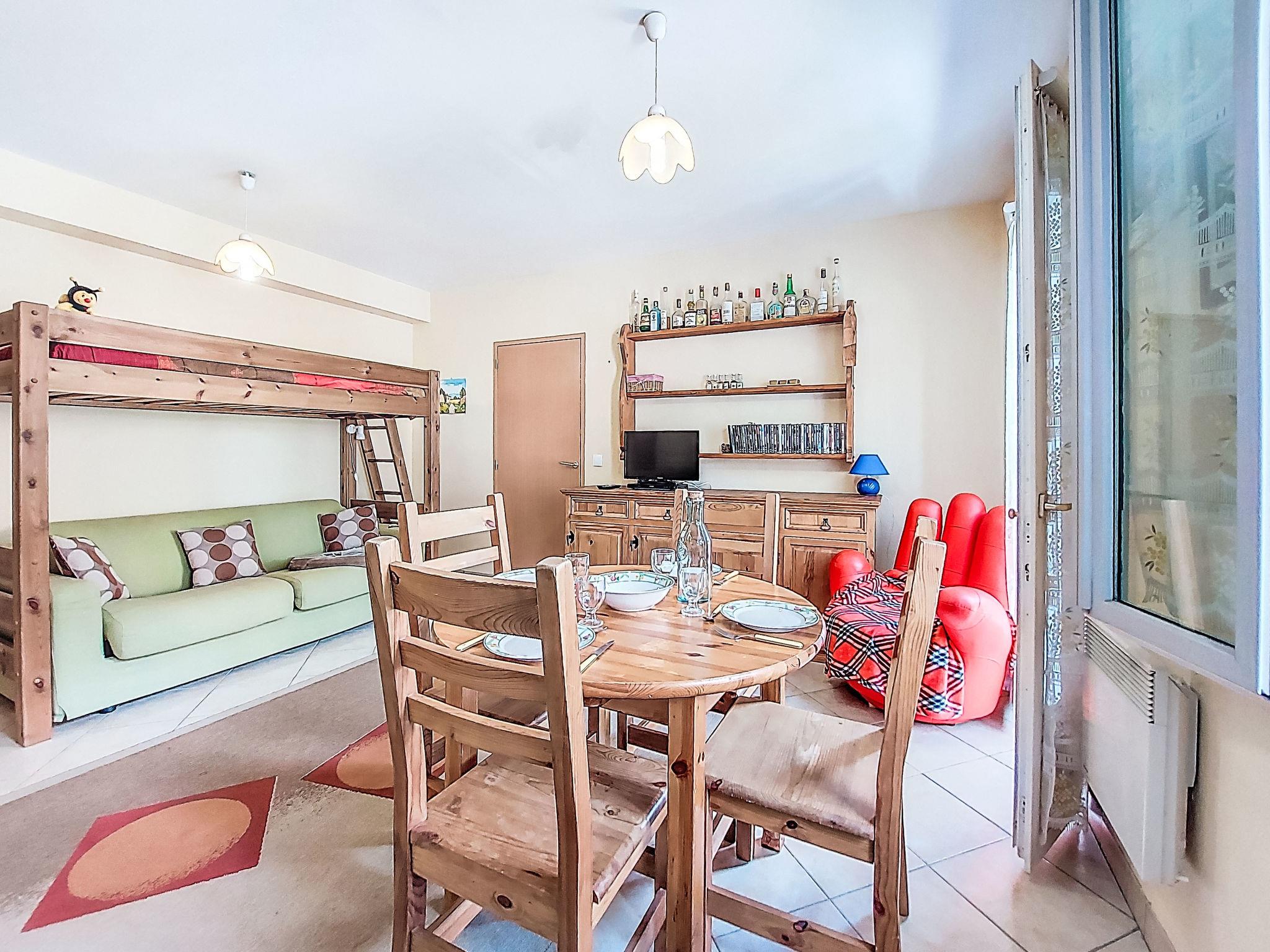 "Central résidence 3", 2-room apartment 35 m2 on 2nd floor. Practical furnishings: living/dining room with 1 double sofabed (140 cm, length 190 cm), TV, flat screen and DVD. Exit to the balcony. 1 room with 1 french bed (140 cm, length 190 cm). Kitchenette (2 hot plates, toaster, kettle, microwave, electric coffee machine). Shower/WC. Electric heating, boiler. Balcony, east facing position. View of the resort. Facilities: Internet (WiFi, extra). Please note: non-smokers only. TV only FR. Smoke alarm. The balcony faces the main square.