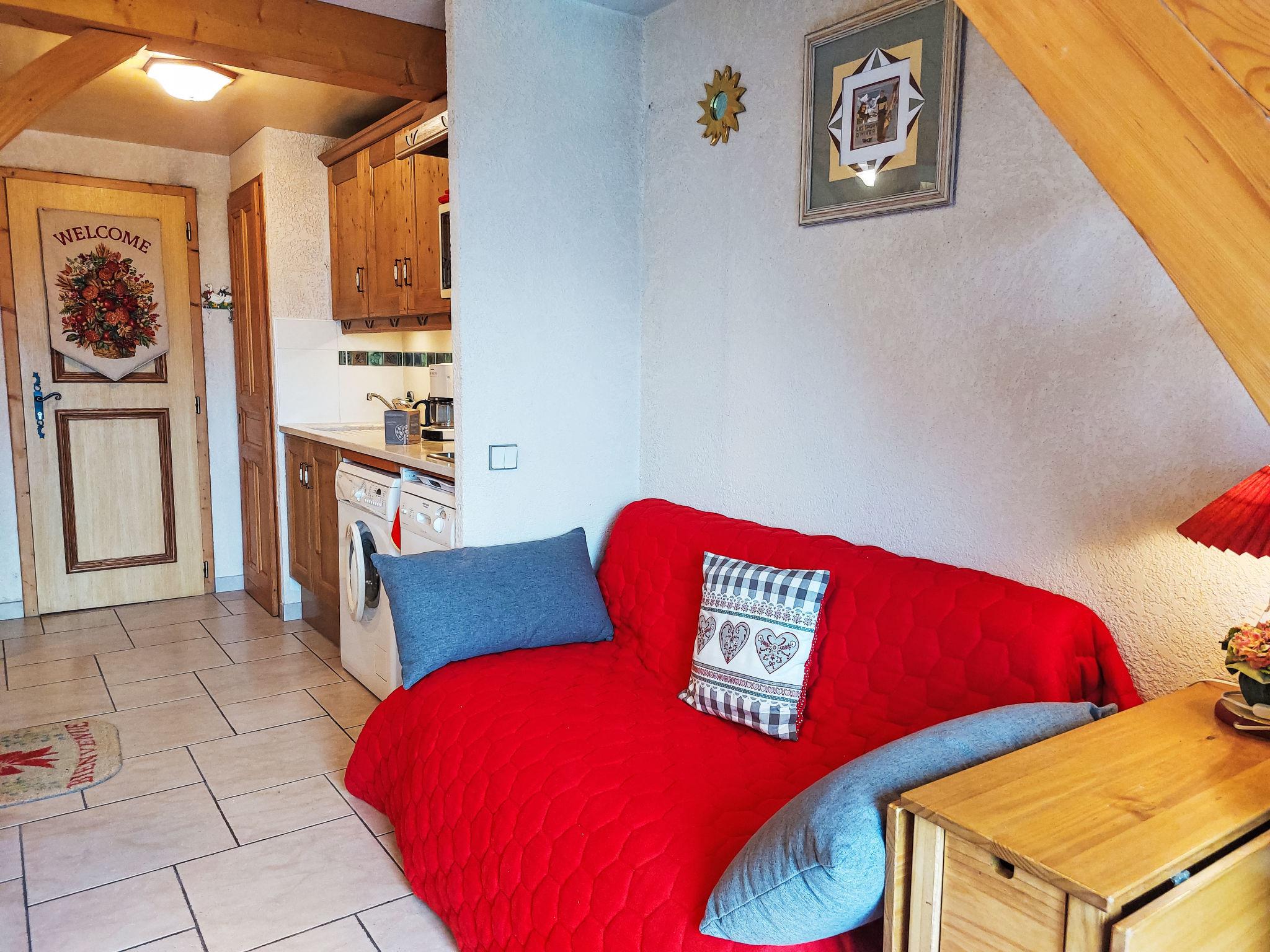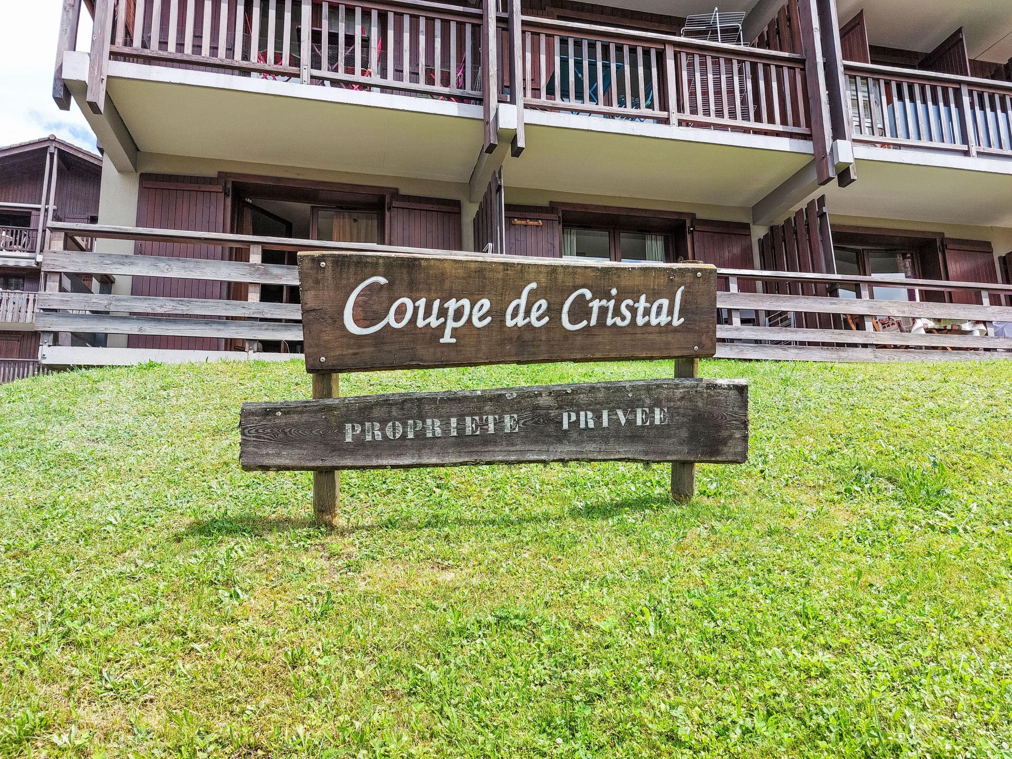 "La Coupe de Cristal", 3-room apartment 32 m2 on 2 levels on 3rd floor. Living/dining room with TV (flat screen). Exit to the balcony. Kitchenette (2 hot plates, dishwasher, toaster, kettle, electric coffee machine). Sep. WC. Upper floor: (steep stair), 1 room with sloping ceilings with 1 french bed (140 cm, length 190 cm). 1 small room with sloping ceilings with 2 pull-out beds (2 x 80 cm, length 190 cm). Bath/shower/WC. Electric heating. Balcony 6 m2, west facing position. Balcony furniture. Very beautiful view of the mountains. Facilities: washing machine. Internet (WiFi, extra). Parking (1 car). Please note: TV only FR. Smoke alarm, no lift. Offer by a private individual according to Art. 155, IV of CGI.