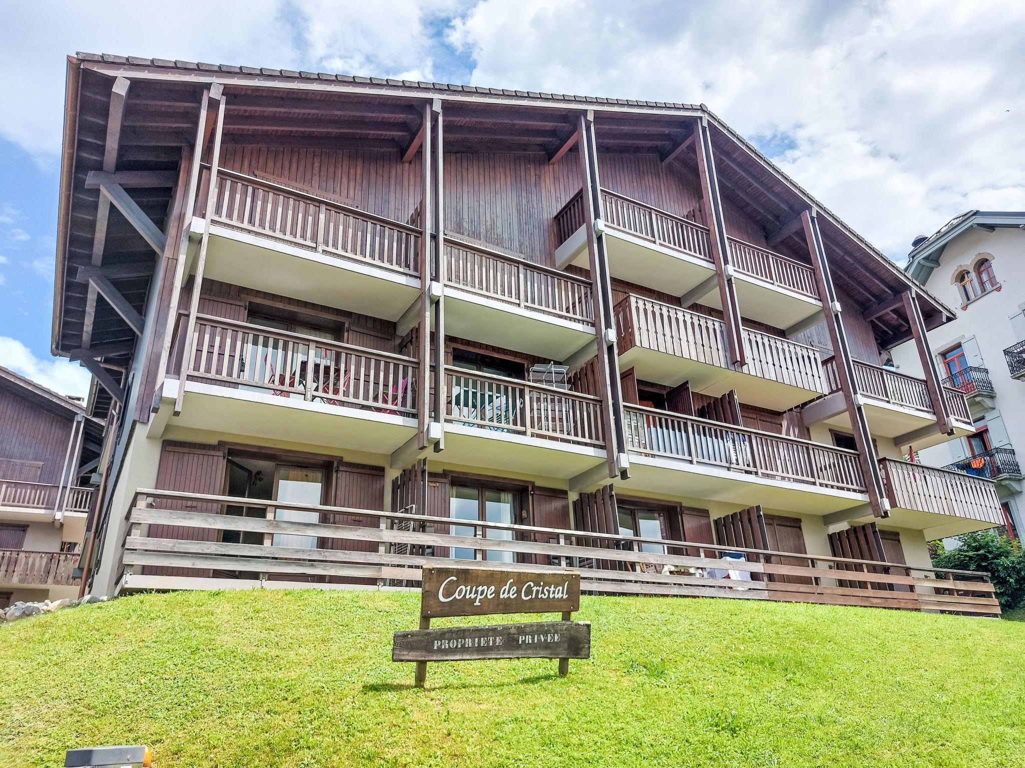 Residence "La Coupe de Cristal". In Winter: please take snow chains. Parking (limited number of spaces). Shop 500 m, restaurant 100 m, tram "du mont blanc" 30 m, bus stop "Le Pont" 450 m, railway station "Saint Gervais- Le Fayet" 4.3 km, outdoor swimming pool 1.9 km. Tennis 1.9 km, minigolf 1.9 km, sports centre 1.6 km, skisport facilities 1.8 km, ski bus stop 30 m, ice rink 1.5 km. Nearby attractions: Thermes de St Gervais (en voiture) 4.8 km, Thermes de St Gervais (à pied-ascenseur) 600 m. Well-known ski regions can easily be reached: Evasion Mont Blanc. Please note: ski bus (free of charge).
